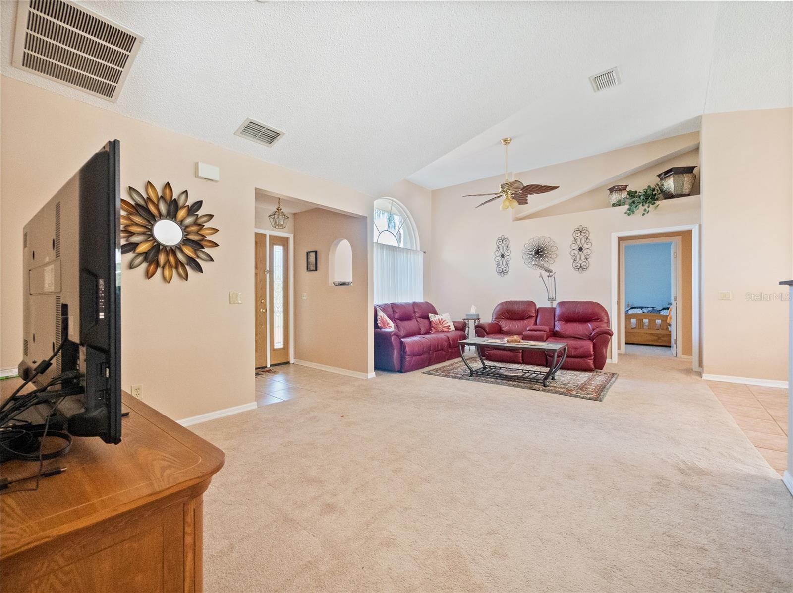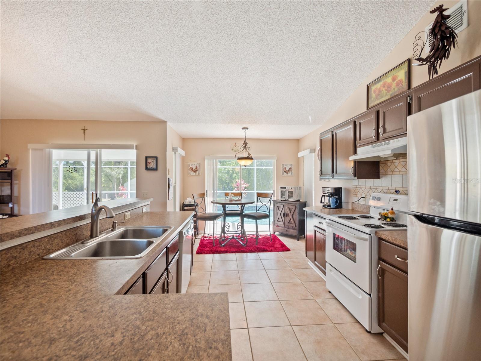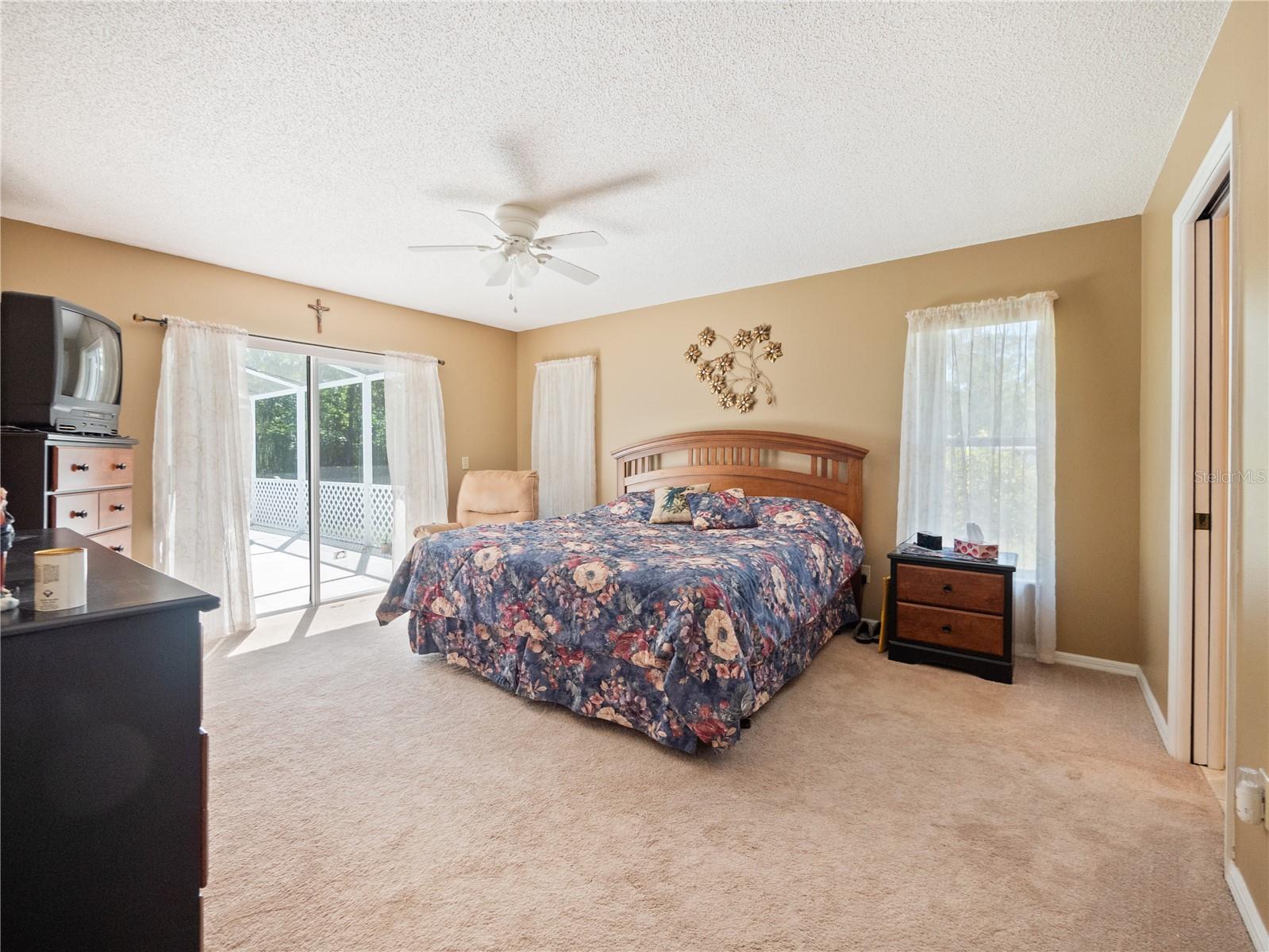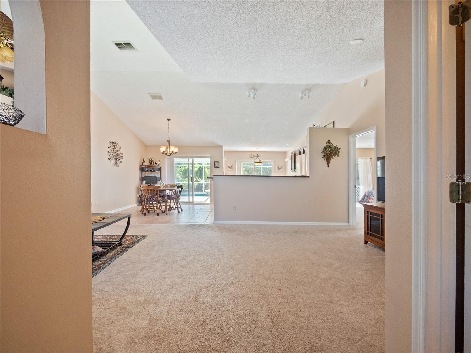 BE SURE TO TAKE A LOOK AT VIRTUAL TOUR LINK 1 FOR YOUR PERSONAL WALKTHRU OF THE PROPERTY. A large, peaceful property, located at the end of a quiet cul-de-sac in the Wilderness. This cute 3 bedroom, 2 bathroom home offers privacy and space as there are no neighbors behind the property. The vault ceilings with an open concept floor plan allows you to feel connected with others in the home while being able to see the beautiful backyard from all central areas. Two of the bedrooms have sliding doors that lead to the solar heated pool as well as a pool bath. The screened in area at the pool has a large deck with sunny or shady places to sit while relaxing and overlooking the backyard. Two bedrooms and a bathroom can be separated from the rest of the house with a sliding pocket door. The spacious master bedroom has a walk-in closet and an en suite bathroom with two sinks, a shower, and a corner tub. The long driveway is wide enough to easily fit several. The air conditioner is a new unit (2024) and most of the appliances were replaced in 2023. The roof is only 8 years old. As a member of The Wilderness HOA, homeowners can take advantage of tennis/pickleball courts, a lovely screened in pavilion, beach volleyball, a little park area and a public pool. Located near shopping, restaurants, schools, churches and the Lynx bus stop. Whether you’re looking for a nice neighborhood to raise a family or a quiet place to retire in, this home has everything you need.