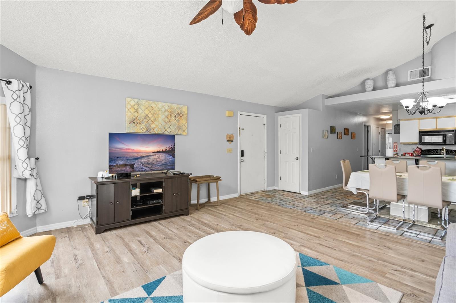 **This property qualifies for a closing cost credit up to $1,900 and a 1 year Home Warranty through the Seller’s preferred lender.**Look no further than this amazing 3-bedroom, 2-bathroom second floor condo with water views in the Sweetwater Club community that is fully furnished. With the ability to be used as a primary residence, long-term rental, or short-term rental, this 1,200 sqft condo is the perfect space to call yours! Make your way in the front door to the spacious open concept space that is flooded with natural light from the oversized windows with arched detailing overlooking the front of the community. High ceilings elevate the space leading from the living room into the dining room and kitchen with built in shelving up top. The hallway begins with the laundry closet up front and leads you back to the bedrooms and bathrooms. The primary bedroom provides direct access out to the balcony with serene views of the community pond with fountain feature. Sweetwater Club includes amenities such as a clubhouse, tennis courts, basketball courts, a fitness center, and a covered BBQ area with the perfect community pool to take a dip in anytime! The monthly HOA includes your sewer, trash and water bills as well as maintaining the grounds. This location provides easy access to shopping centers, grocery stores, restaurants, and retail outlets. Schedule your private showing today!