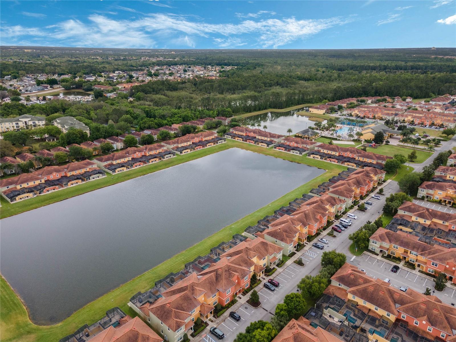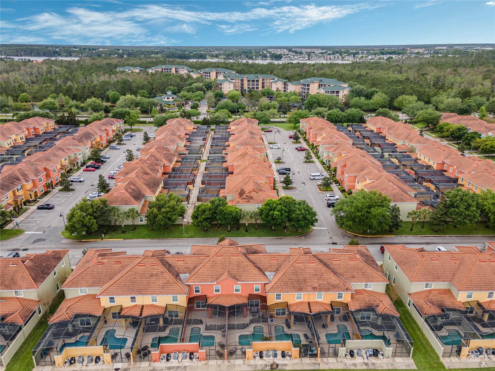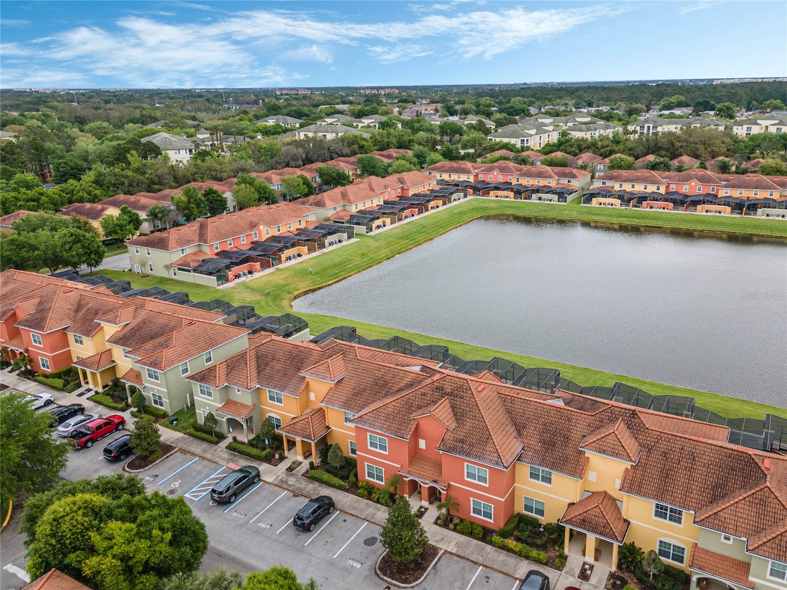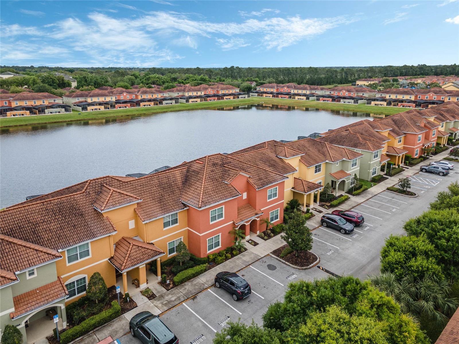 Welcome to your resort-style oasis! Just minutes from Disney Parks, attractions, restaurants, shopping, and more. This busy short term rental property is perfect for your personal enjoyment and a successful cash flowing rental. As you enter the gated resort community of Paradise Palms you will be captivated by the beautifully maintained tropical atmosphere with amazing amenities to match. Enjoy the large clubhouse featuring a cinema, arcade, convenience store, spa, fitness center, sauna, tennis, and basketball courts. Step out to the beautiful lagoon style pool, tiki bar, jacuzzi, water slides, splash pad and cabanas! Head over to the beautifully maintained and fully furnished townhome where you will find a 4 bedroom 3 bath home fully equipped with all conveniences for yours and your guests stay. Upon entering 3065 Beach Palm Avenue, you will find an open concept layout with newer furnishings and new paint throughout. In the nicely sized kitchen you will see stainless steel appliances, granite countertops, cypress shaker cabinetry. The floor-plan flows into the dining area seating for 6 and effortlessly flows into the cozy living area with coastal decor. Also on the first floor you will find a bedroom, king bed and full bathroom for accommodation and convenience. You will love all of the natural light this home brings in from the screened in lanai featuring a beautiful pool overlooking the pond, tasteful outdoor seating, an installed baby gate for safety, and plenty of space for entertainment! No rear neighbors which makes for extra privacy and close walking distance to amenities. Make your way upstairs where you will first find another primary suite with a king sized bed and spacious en-suite with double sinks and a shower/tub combo for convenience. Down the hall you will find the laundry closet equipped with full size washer and dryer, two more bedrooms with twin beds and a queen bed tastefully themed and overlooking the pond. Another full bathroom across the hall and an owners closet for extra storage. You will love this home and everything it has to offer! Schedule a showing today!