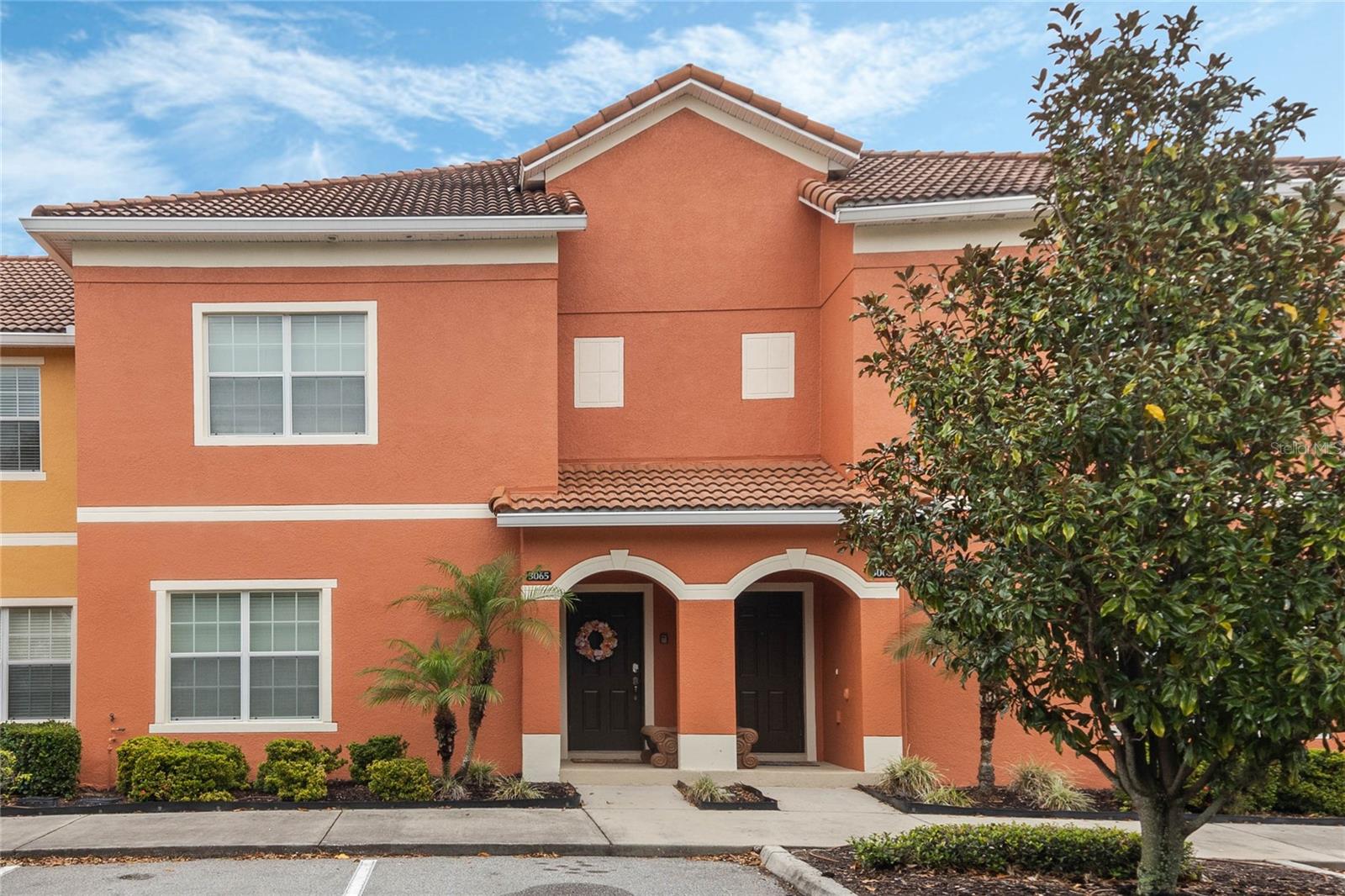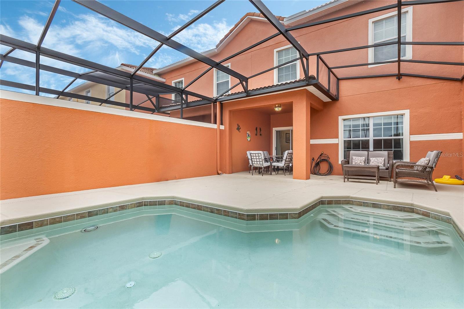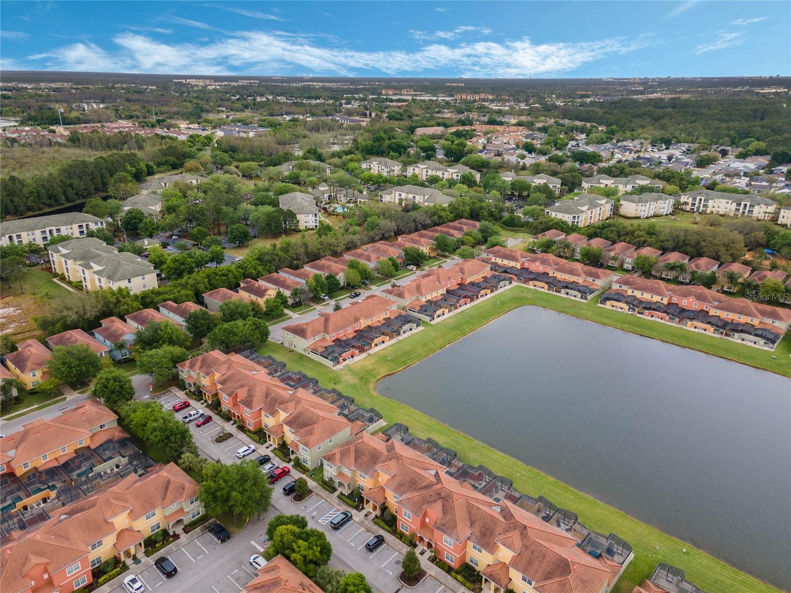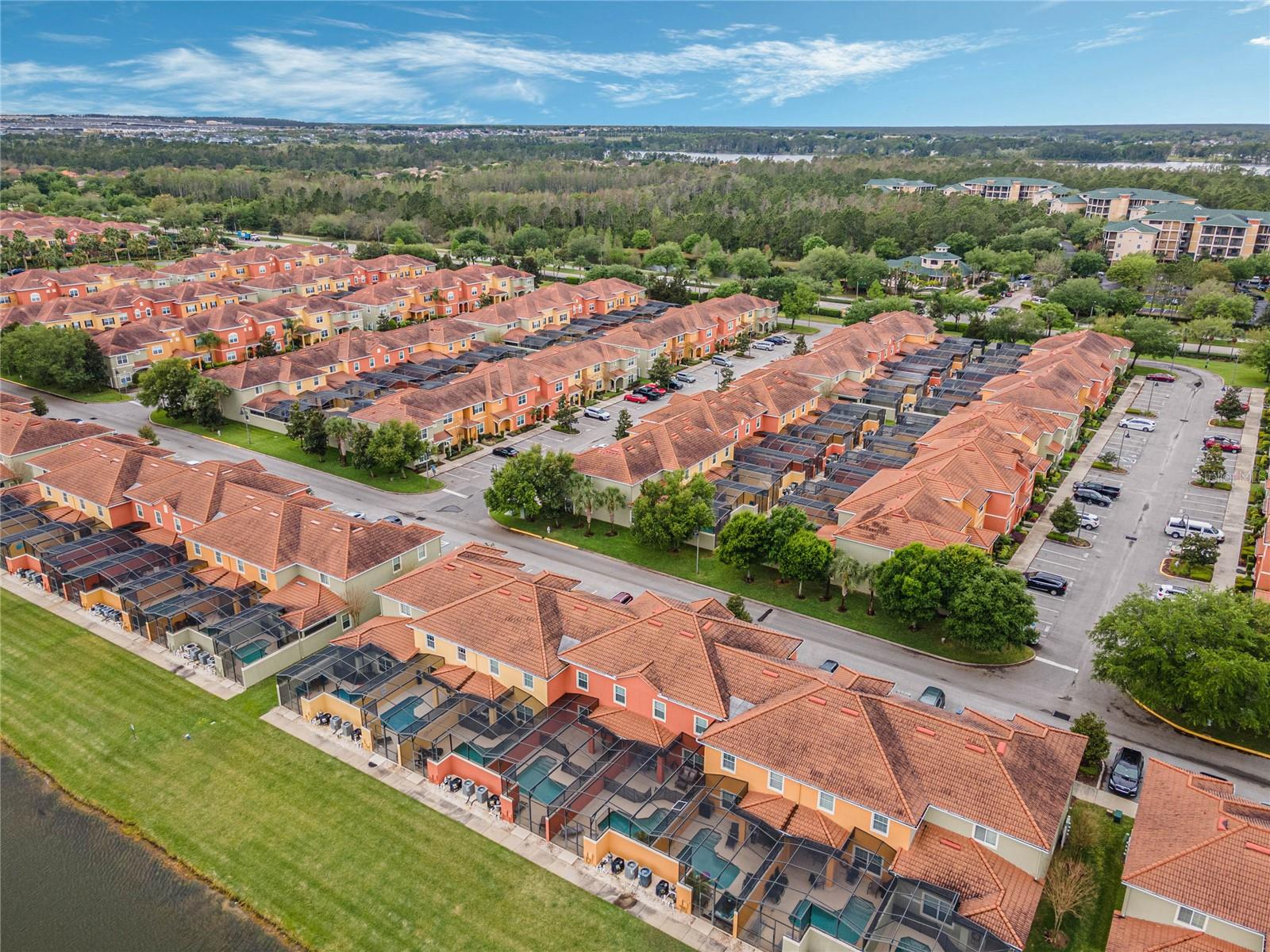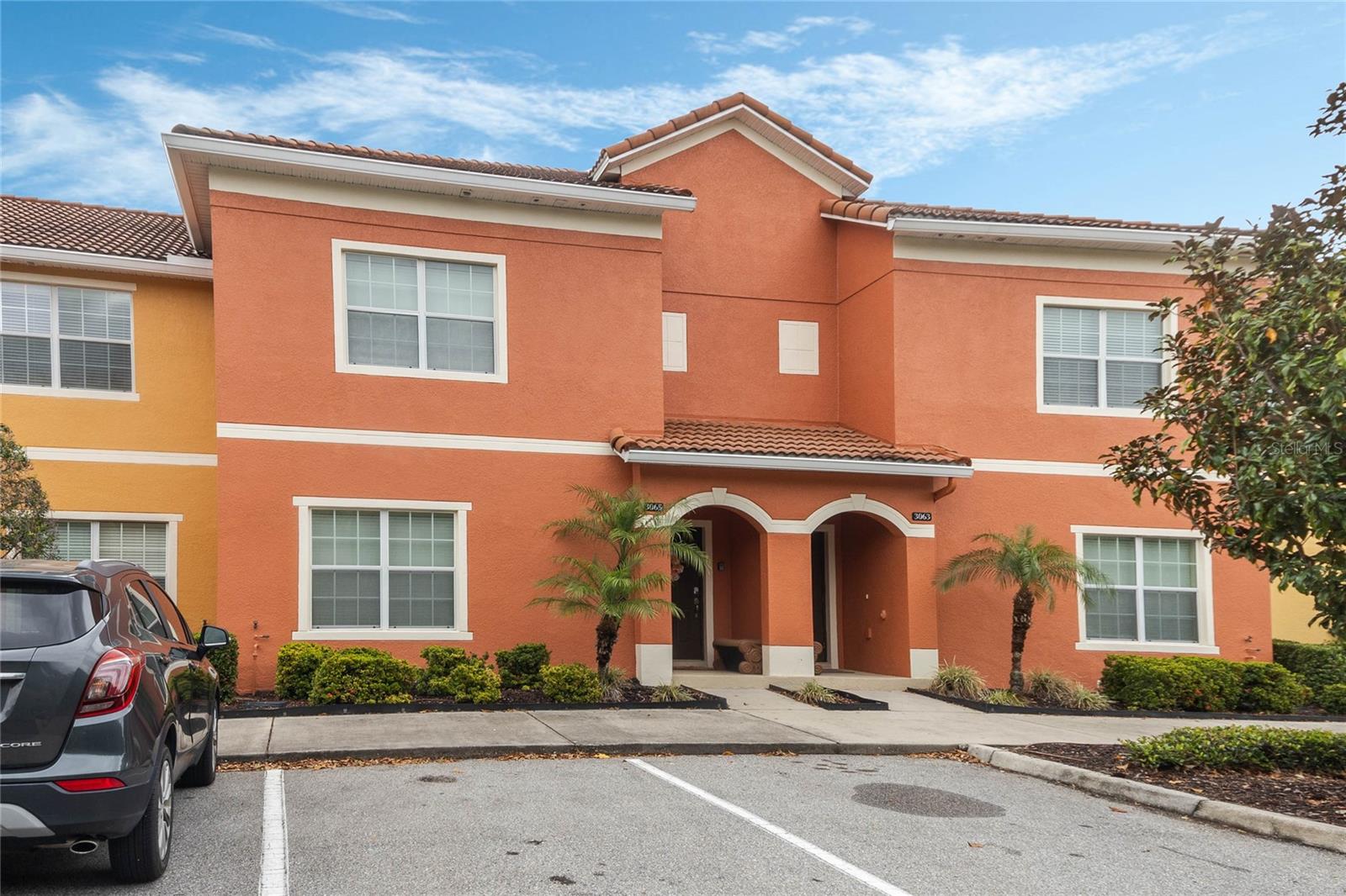Welcome to your resort-style oasis! Just minutes from Disney Parks, attractions, restaurants, shopping, and more. This busy short term rental property is perfect for your personal enjoyment and a successful cash flowing rental. As you enter the gated resort community of Paradise Palms you will be captivated by the beautifully maintained tropical atmosphere with amazing amenities to match. Enjoy the large clubhouse featuring a cinema, arcade, convenience store, spa, fitness center, sauna, tennis, and basketball courts. Step out to the beautiful lagoon style pool, tiki bar, jacuzzi, water slides, splash pad and cabanas! Head over to the beautifully maintained and fully furnished townhome where you will find a 4 bedroom 3 bath home fully equipped with all conveniences for yours and your guests stay. Upon entering 3065 Beach Palm Avenue, you will find an open concept layout with newer furnishings and new paint throughout. In the nicely sized kitchen you will see stainless steel appliances, granite countertops, cypress shaker cabinetry. The floor-plan flows into the dining area seating for 6 and effortlessly flows into the cozy living area with coastal decor. Also on the first floor you will find a bedroom, king bed and full bathroom for accommodation and convenience. You will love all of the natural light this home brings in from the screened in lanai featuring a beautiful pool overlooking the pond, tasteful outdoor seating, an installed baby gate for safety, and plenty of space for entertainment! No rear neighbors which makes for extra privacy and close walking distance to amenities. Make your way upstairs where you will first find another primary suite with a king sized bed and spacious en-suite with double sinks and a shower/tub combo for convenience. Down the hall you will find the laundry closet equipped with full size washer and dryer, two more bedrooms with twin beds and a queen bed tastefully themed and overlooking the pond. Another full bathroom across the hall and an owners closet for extra storage. You will love this home and everything it has to offer! Schedule a showing today!