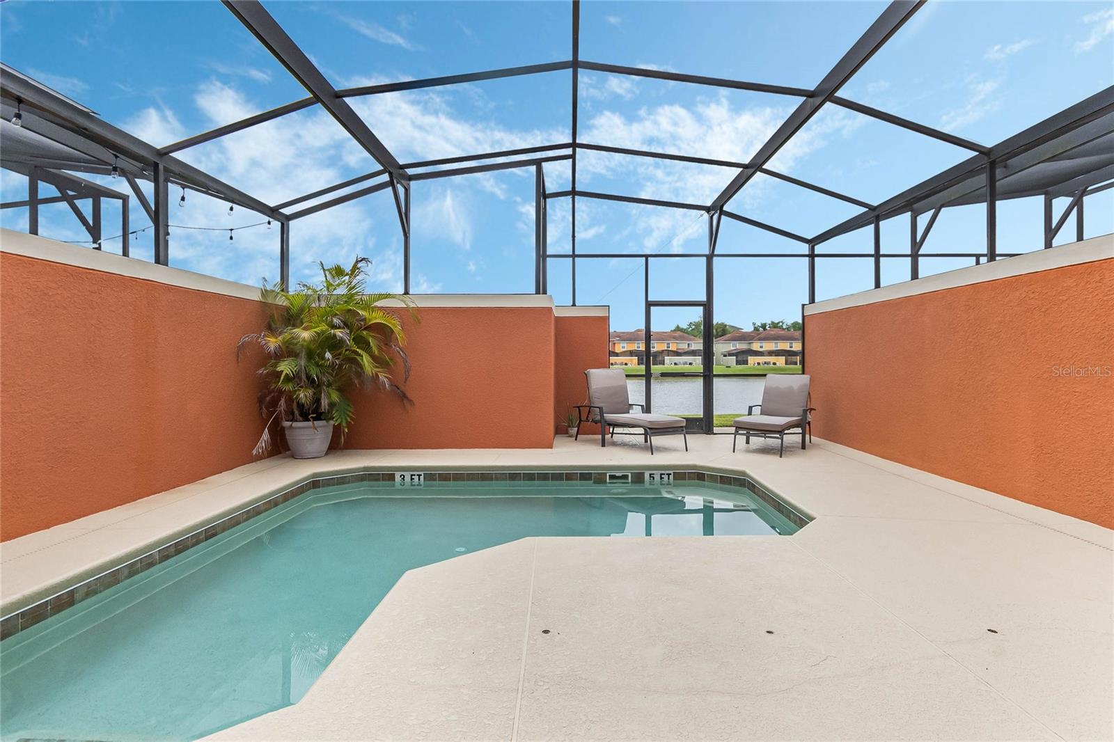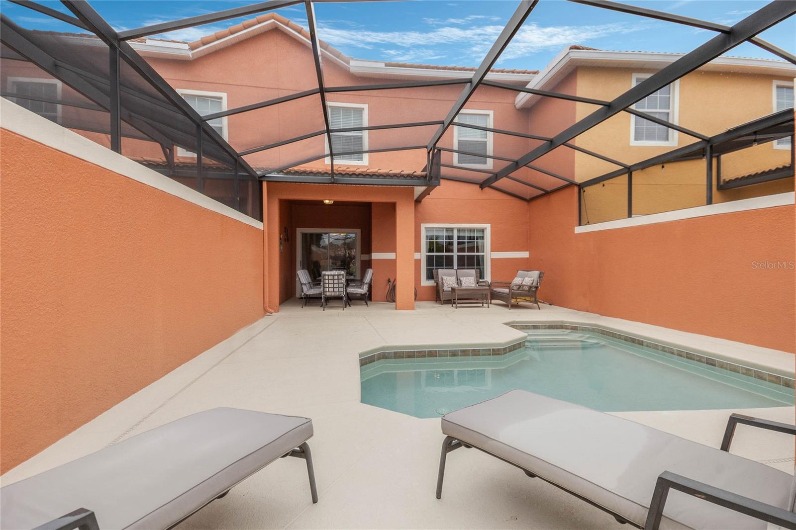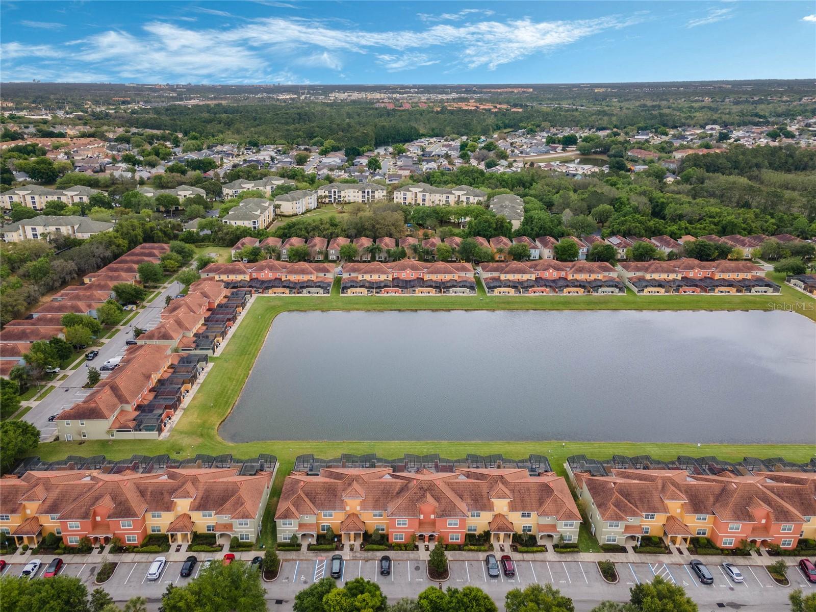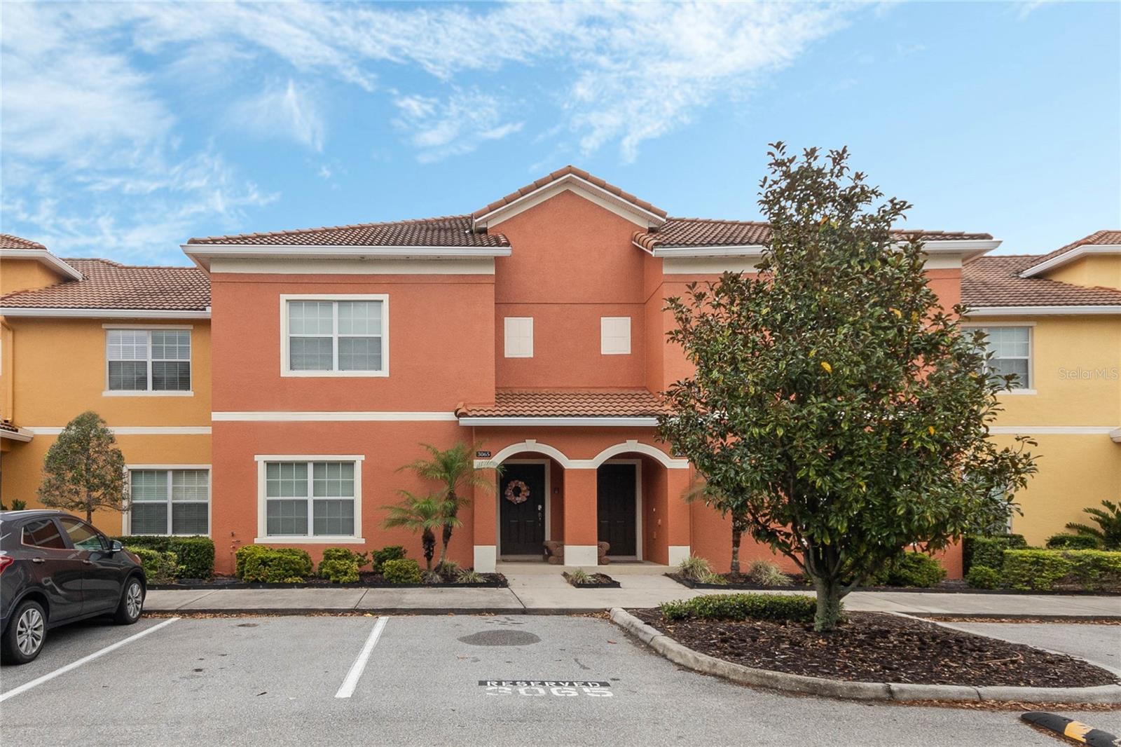 Welcome to your resort-style oasis! Just minutes from Disney Parks, attractions, restaurants, shopping, and more. This busy short term rental property is perfect for your personal enjoyment and a successful cash flowing rental. As you enter the gated resort community of Paradise Palms you will be captivated by the beautifully maintained tropical atmosphere with amazing amenities to match. Enjoy the large clubhouse featuring a cinema, arcade, convenience store, spa, fitness center, sauna, tennis, and basketball courts. Step out to the beautiful lagoon style pool, tiki bar, jacuzzi, water slides, splash pad and cabanas! Head over to the beautifully maintained and fully furnished townhome where you will find a 4 bedroom 3 bath home fully equipped with all conveniences for yours and your guests stay. Upon entering 3065 Beach Palm Avenue, you will find an open concept layout with newer furnishings and new paint throughout. In the nicely sized kitchen you will see stainless steel appliances, granite countertops, cypress shaker cabinetry. The floor-plan flows into the dining area seating for 6 and effortlessly flows into the cozy living area with coastal decor. Also on the first floor you will find a bedroom, king bed and full bathroom for accommodation and convenience. You will love all of the natural light this home brings in from the screened in lanai featuring a beautiful pool overlooking the pond, tasteful outdoor seating, an installed baby gate for safety, and plenty of space for entertainment! No rear neighbors which makes for extra privacy and close walking distance to amenities. Make your way upstairs where you will first find another primary suite with a king sized bed and spacious en-suite with double sinks and a shower/tub combo for convenience. Down the hall you will find the laundry closet equipped with full size washer and dryer, two more bedrooms with twin beds and a queen bed tastefully themed and overlooking the pond. Another full bathroom across the hall and an owners closet for extra storage. You will love this home and everything it has to offer! Schedule a showing today!