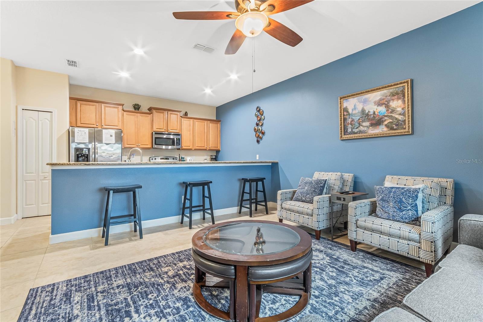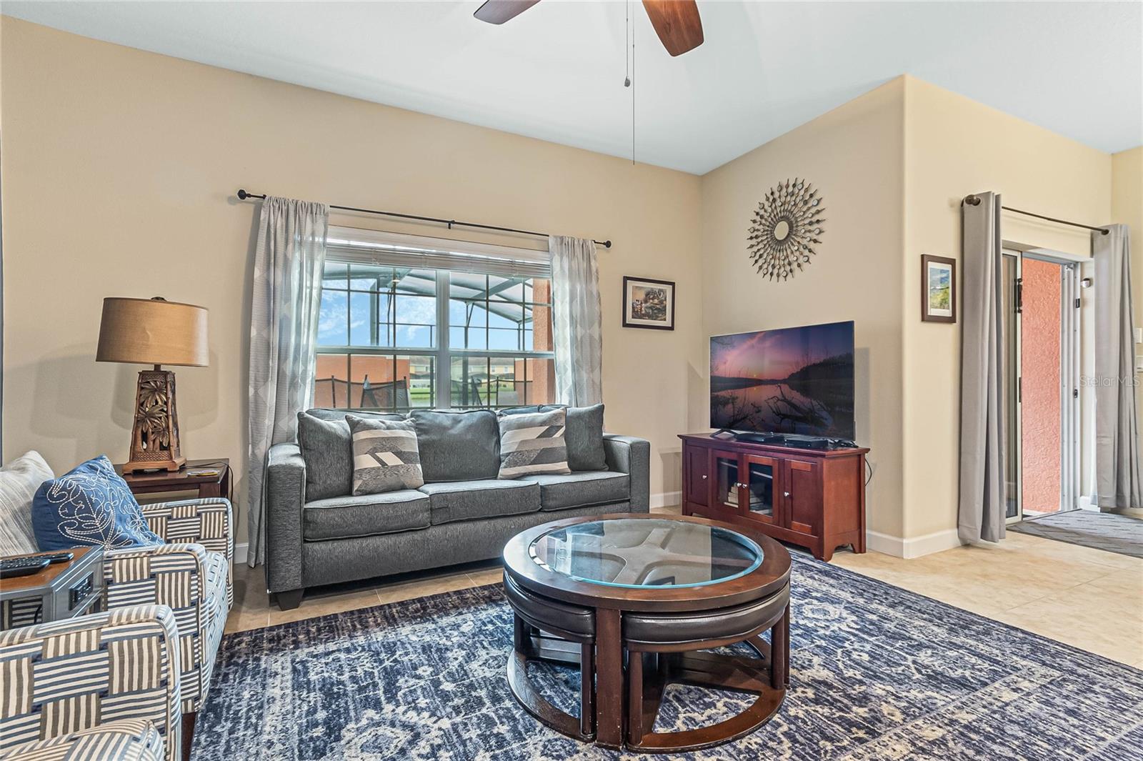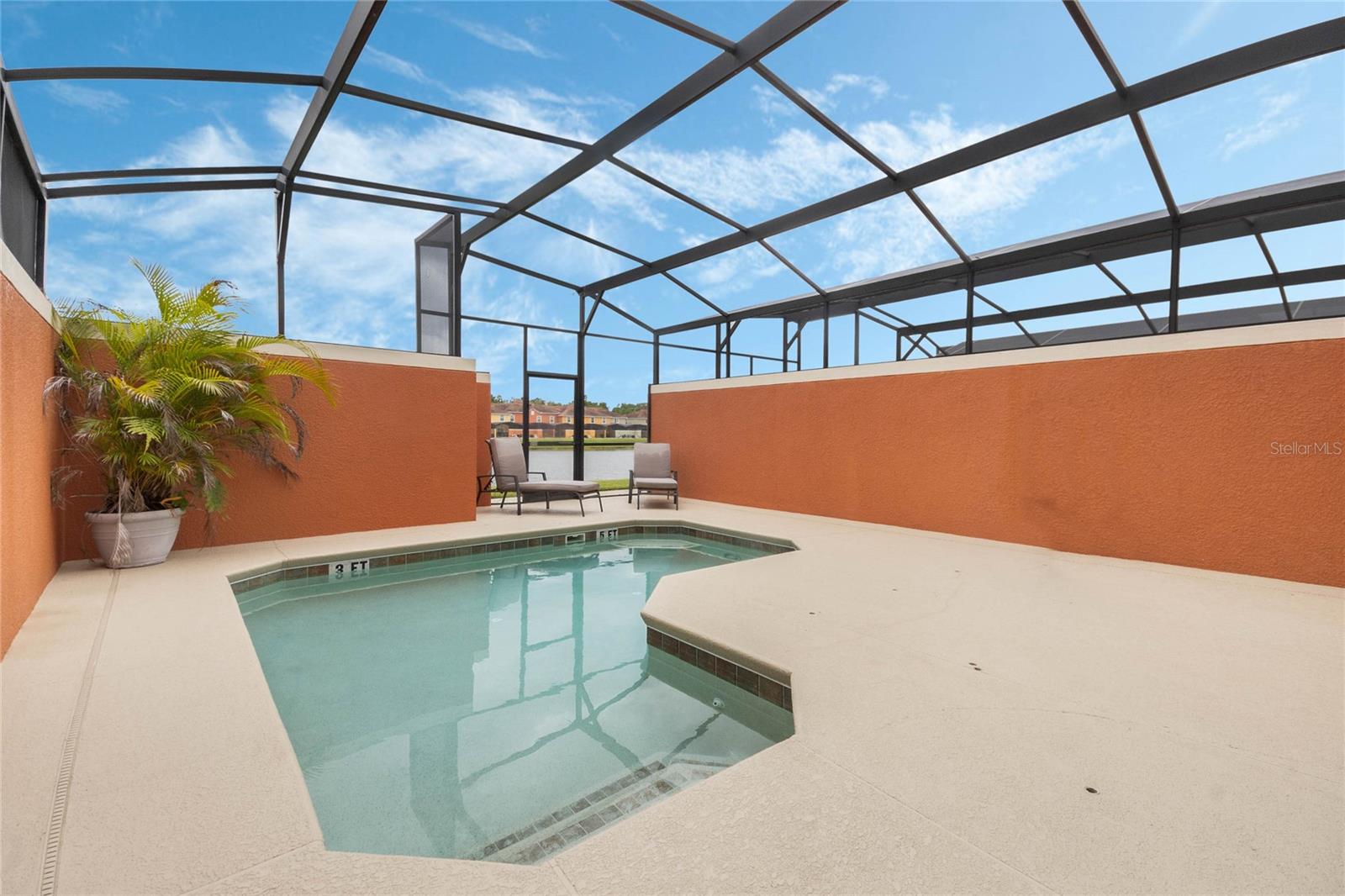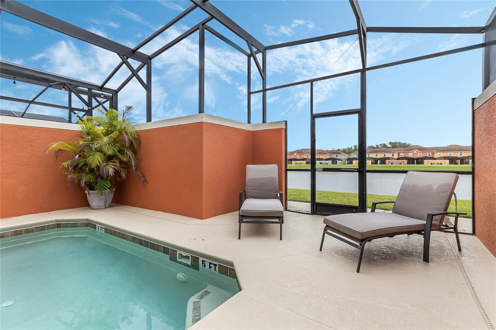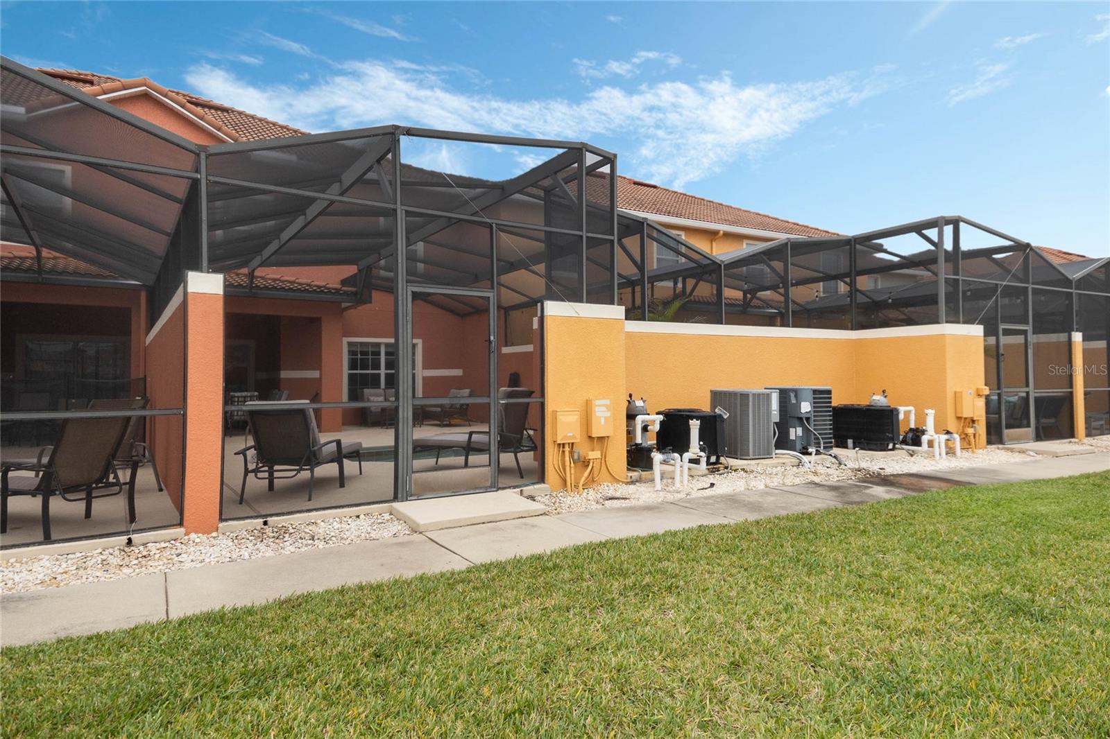 Welcome to your resort-style oasis! Just minutes from Disney Parks, attractions, restaurants, shopping, and more. This busy short term rental property is perfect for your personal enjoyment and a successful cash flowing rental. As you enter the gated resort community of Paradise Palms you will be captivated by the beautifully maintained tropical atmosphere with amazing amenities to match. Enjoy the large clubhouse featuring a cinema, arcade, convenience store, spa, fitness center, sauna, tennis, and basketball courts. Step out to the beautiful lagoon style pool, tiki bar, jacuzzi, water slides, splash pad and cabanas! Head over to the beautifully maintained and fully furnished townhome where you will find a 4 bedroom 3 bath home fully equipped with all conveniences for yours and your guests stay. Upon entering 3065 Beach Palm Avenue, you will find an open concept layout with newer furnishings and new paint throughout. In the nicely sized kitchen you will see stainless steel appliances, granite countertops, cypress shaker cabinetry. The floor-plan flows into the dining area seating for 6 and effortlessly flows into the cozy living area with coastal decor. Also on the first floor you will find a bedroom, king bed and full bathroom for accommodation and convenience. You will love all of the natural light this home brings in from the screened in lanai featuring a beautiful pool overlooking the pond, tasteful outdoor seating, an installed baby gate for safety, and plenty of space for entertainment! No rear neighbors which makes for extra privacy and close walking distance to amenities. Make your way upstairs where you will first find another primary suite with a king sized bed and spacious en-suite with double sinks and a shower/tub combo for convenience. Down the hall you will find the laundry closet equipped with full size washer and dryer, two more bedrooms with twin beds and a queen bed tastefully themed and overlooking the pond. Another full bathroom across the hall and an owners closet for extra storage. You will love this home and everything it has to offer! Schedule a showing today!