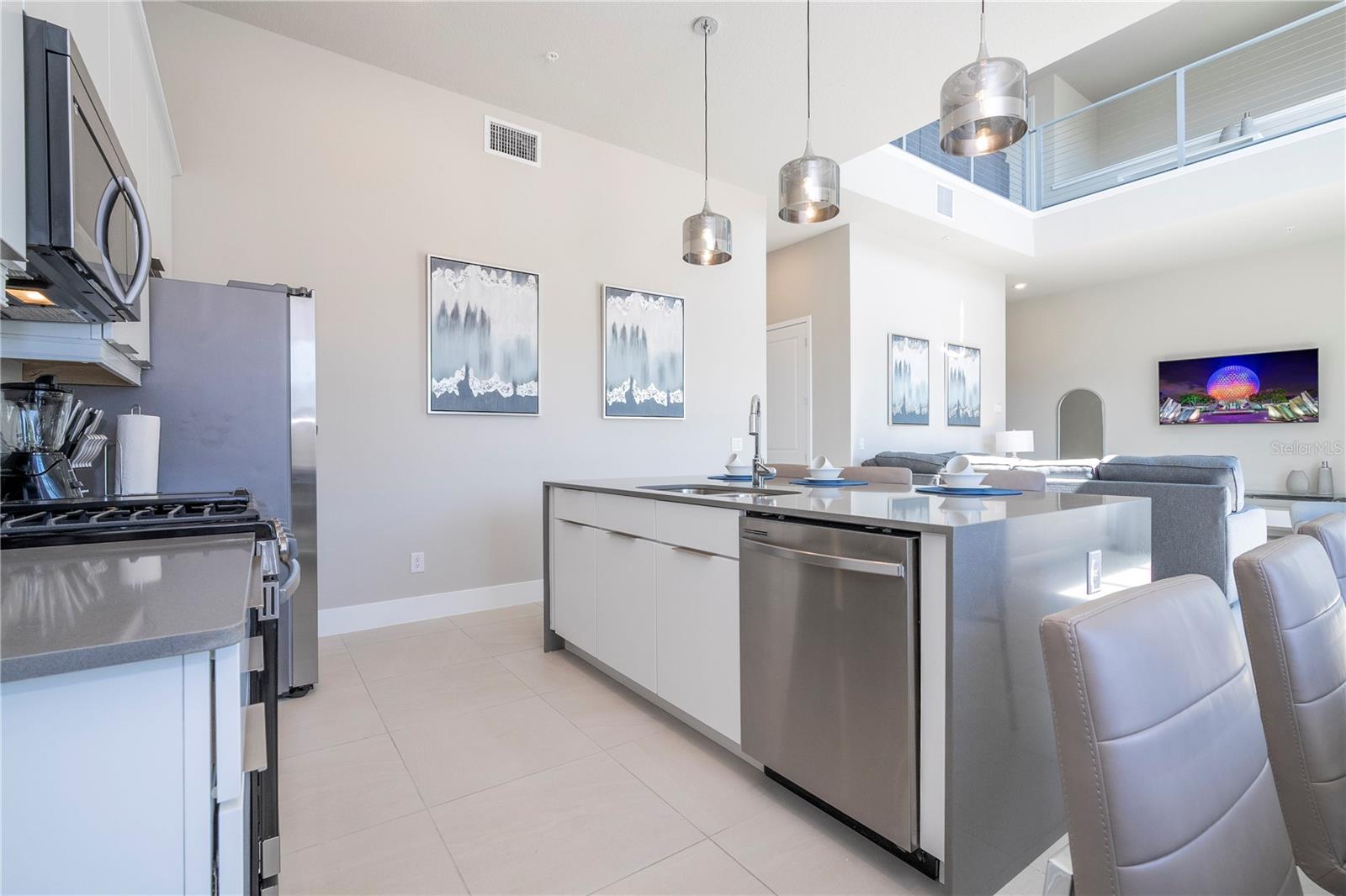 Welcome to SPECUTRUM AT REUNION! A Luxury Resort Style & PGA Championship Golf Community! Your awesome and move-in ready, fully furnished, modern condo with lots of upgrades waits for you. This 2-story apartment with no carpet, great location and a beautiful community full of activities for you to enjoy: Golf, tennis, several pools and lots more!!! This is a MUST-SEE Property, and you won't regret it! Enjoy a beautiful living room with a spacious kitchen that features an abundance of the highest level upgraded 42" cabinets and quarts countertops, a stylish backsplash, large center island. The bright open living space has plenty of natural light which opens into a beautiful gathering area. Upstairs leading into a great game room, with an extra room with a full bathroom and family room. Beautiful pool table, gorgeous views for outdoor enjoyment with a nice grill and small refrigerator. This property is full of upgrades, everywhere you look! The Community has a massive Water Park as well. Residents at SPECTRUM AT REUNION enjoy an exclusive resort style clubhouse offering a luxury facility with an impressive pool, fireplace, pool cabana area, gathering room, activity room and gym. Also, as Reunion residents can enjoy three PGA Championship Golf courses and many other wonderful activities. Bring your Offers!!