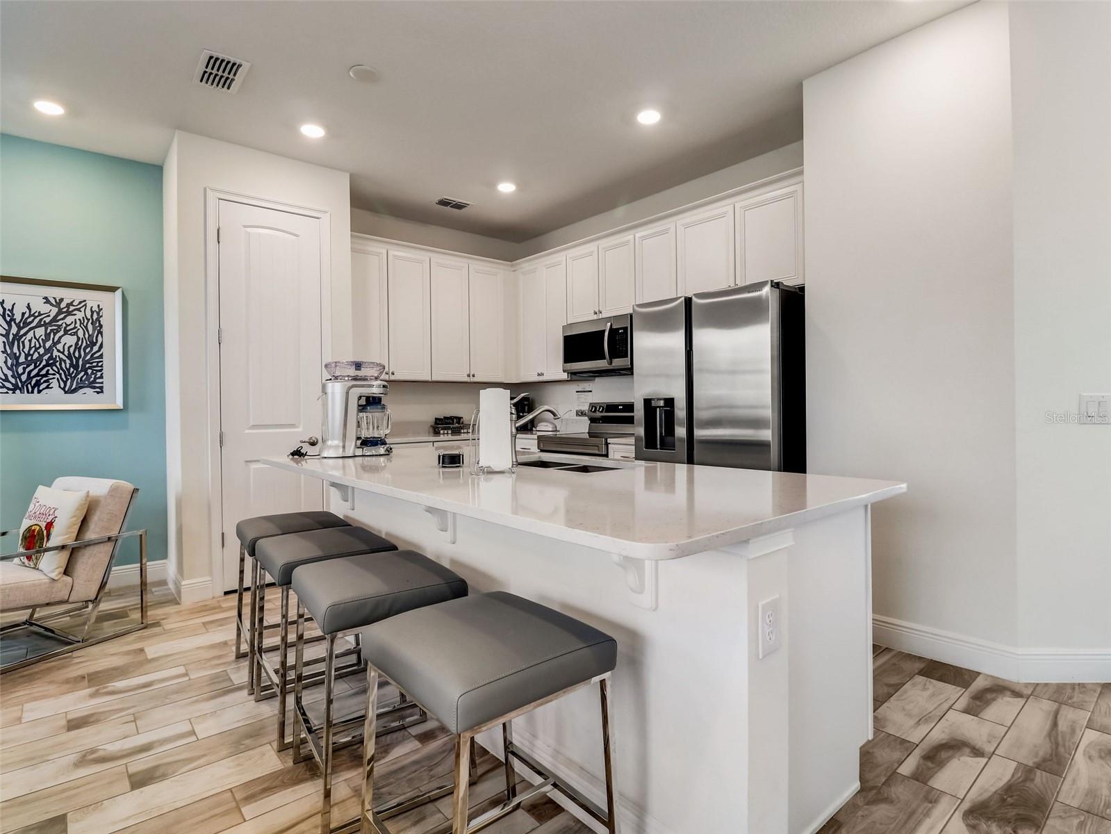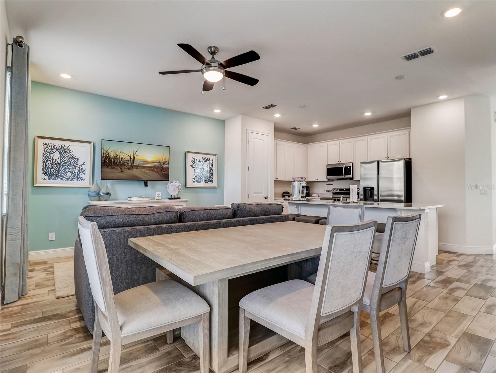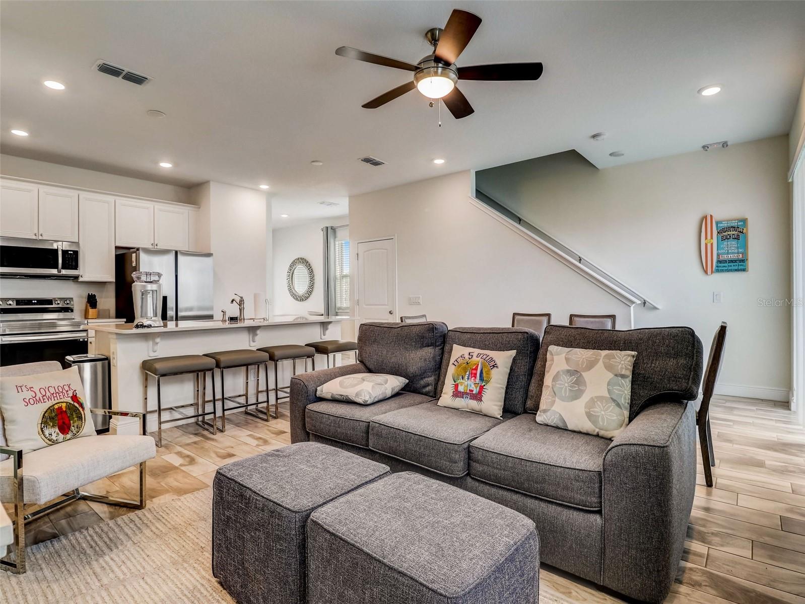 MUST SEE! Key West 4-bedroom, 3-bathroom Villa nestled in the heart of Margaritaville, where luxury meets comfort. This meticulously maintained home offers an open floor plan that seamlessly integrates the living, dining, and kitchen areas, providing an ideal setting for gatherings and entertainment. First floor bedroom with ensuite. 3 bedrooms and 2 more bathrooms upstairs. Outside is a private patio, offering views of the lake. Being offered fully furnished with top-of-the-line Samsung appliances, including a washer and dryer. Margaritaville offers resort amenities, including three expansive pools, hot tub, live entertainment, a luxurious spa, and a fully-equipped fitness center. With multiple dining options and complimentary shuttles at your disposal, convenience is always within reach. Strategically positioned close to everything Orlando has to offer from world class theme parks, golf, restaurants to shopping and more. Easy access to highways for a quick trip to the beach. Whether you're seeking a permanent residence or a lucrative investment opportunity for short-term rentals, don't let this stunning Villa slip through your fingers. Check out the 3D tour online and schedule a private viewing today!