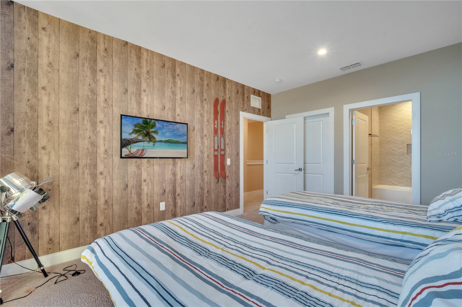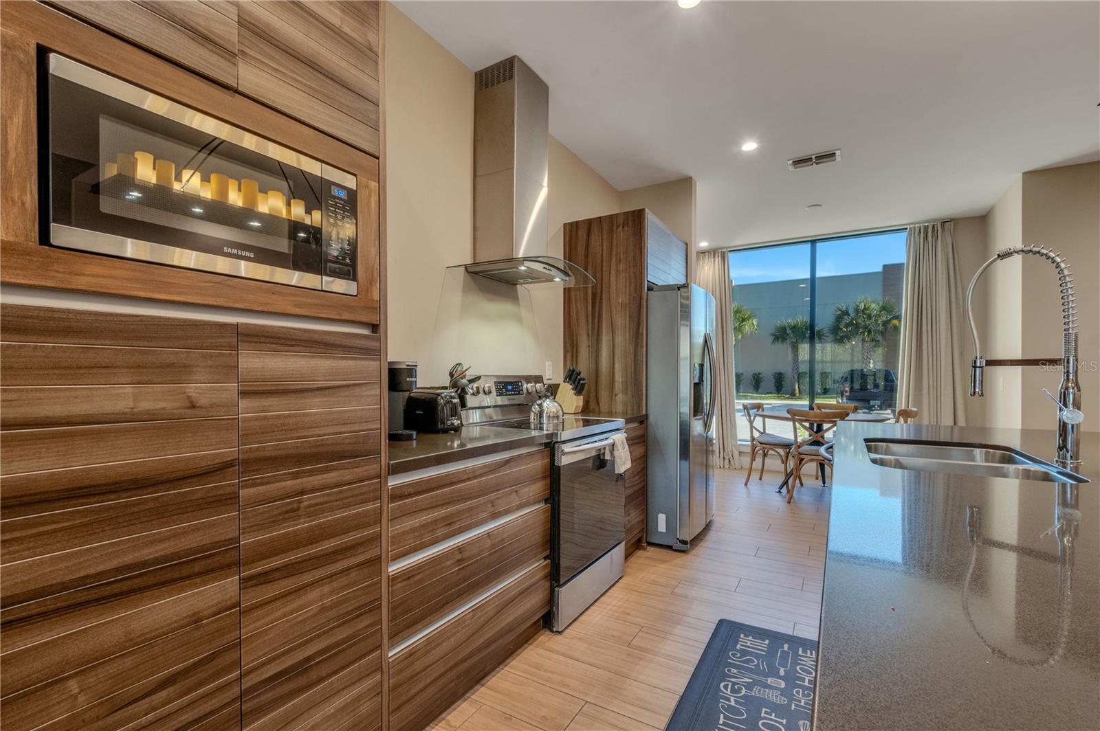 Bring your buyers! Amazing vacation home with an excellent rental history, FULLY FURNISHED AND PROFESSIONALLY DECORATED. Prime location for investors and vacationers within a few miles of the Walt Disney World main gate and in the middle of the tourist hub with shops, dining, and attractions all within close proximity. MUST SEE modern, luxurious, corner lot townhouse, featuring a direct view of the Disney Animal Kingdom/fireworks is within 5-6 miles from all Disney parks and will provide an excellent opportunity for you to MAKE INCOME! Located in the prestige short term rental community - Magic Village - this private corner lot unit comes fully furnished with a modern flair, an open concept kitchen/living room greets you upon entering. The kitchen has sleek stainless steel appliances, elegant finishes, granite counter tops and counter height bar with seating for 6 and a quaint breakfast nook. Double Master Suites! One on ground level and one upstairs. Master suite upstairs also has a private seating area. Two more bedrooms are upstairs both with twin beds and ensuite baths. All rooms are beautifully designed in a contemporary style. Unit has upgraded private lanai with outdoor kitchen, dining table/chairs and seating group. Magic Village has fabulous resort style amenities! Minutes to Sunset Walk entertainment/dining, 20 miles from Orlando Airport. Come see it today!