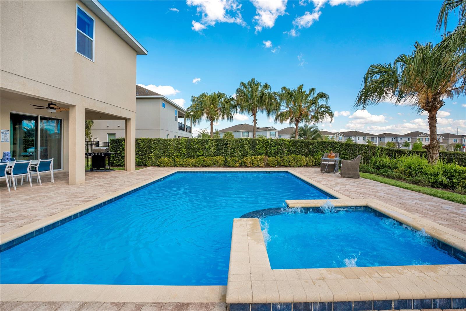 Nestled in the world renowned Reunion West, this fully-furnished, turnkey 9-bedroom, 8.5-bathroom residence is a masterpiece of design and comfort, complete with 24-hour gated security. From the moment you step inside, you're greeted by a home that is both elegantly appointed and welcoming. The fully-furnished interiors speak volumes of a ready-to-live-in sanctuary, with each piece of furniture thoughtfully selected to enhance the home's charm. The heart of this home is a fully equipped kitchen featuring an expansive breakfast bar that invites guests to gather, while the stainless steel appliances, complete with two refrigerators, ensure that hosting is a breeze. Three sumptuous primary suites offer private havens of luxury, each with ensuites featuring dual vanities, inviting soaking tubs, and separate showers for the ultimate relaxation. As you ascend to the upper level, a loft area with a pool table unfolds into a communal hub of entertainment, while a dedicated theater space promises endless hours of movie magic. Step outside to the fully fenced oasis, where a heated pool and spa are set against a backdrop of Florida’s sunny skies, ready for you to make splash! Encore Reunion is not just a community; it's a world-class resort experience near Disney, redefining the standard for vacation rentals by blending the best of hotels and peer-to-peer lodging. Enjoy the privacy and convenience of a vacation home while receiving the personalized service and top-notch amenities of a luxury resort. With a plethora of on-site activities and amenities, you'll never need to leave. From the private water park and sports facilities to the on-site restaurants, customized spa treatments, in-home chefs, and top-notch Concierge Services—your every desire is met. This property is perfect for income-generating short-term rental vacationers seeking world-class, resort-style accommodations or those who wish to live every day like it's a vacation by making it their primary residence. With HOA covering everything from lawn and landscape irrigation to trash pickup, digital cable TV, and high-speed internet, not to mention optional pool maintenance, every need is anticipated and every comfort provided. This home is more than a living space; it's a lifestyle offering, situated in a community where every day feels like a luxury retreat. Welcome to your dream home in Reunion West, where life's finer things are not just an addition, but a standard, so schedule your private showing today! Your dream vacation home awaits!*Buyer incentive of $6,000 towards lender credits if Seller's Preferred Lender is used.*