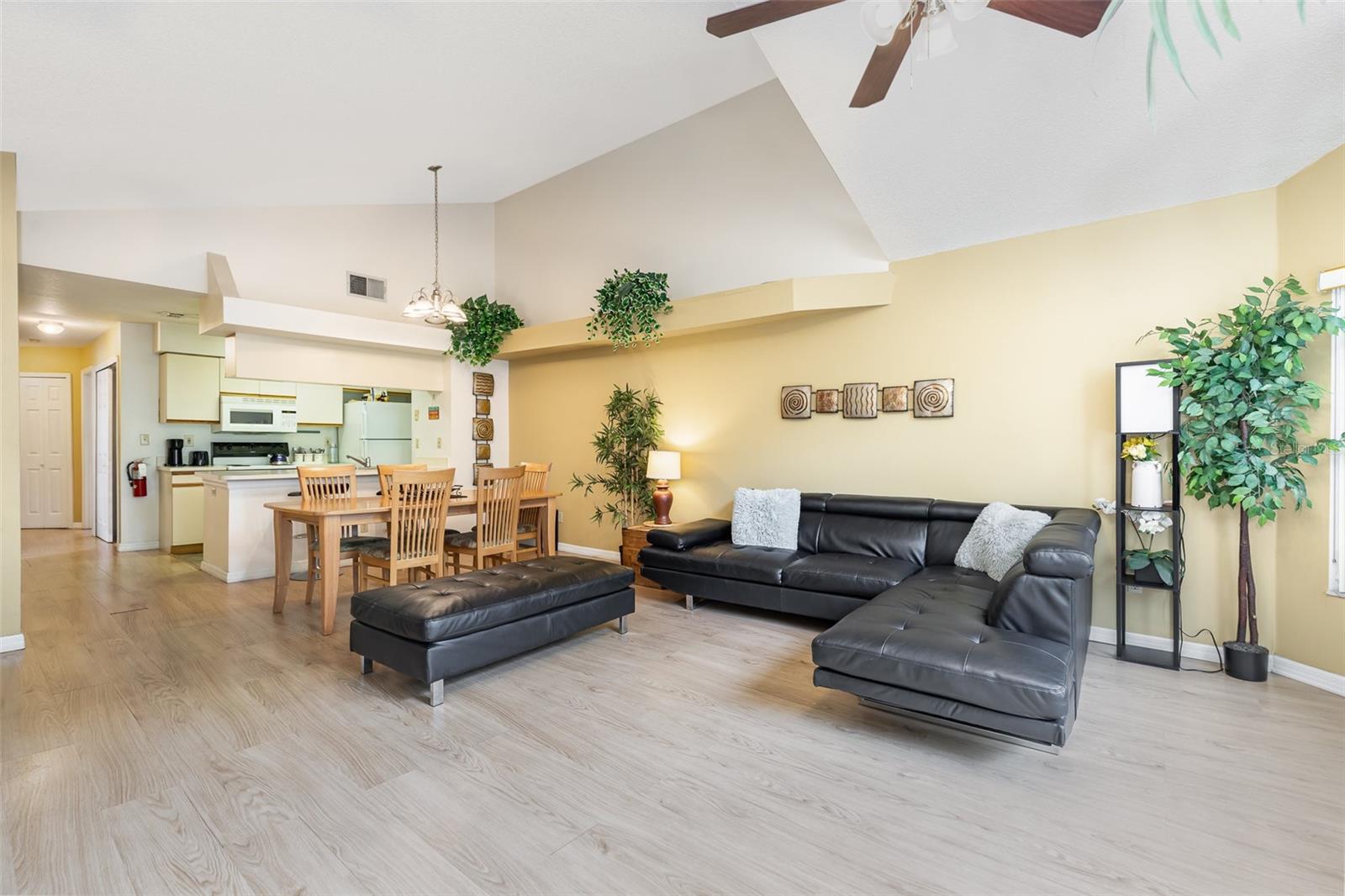 Fully furnished property with positive cash flow potential. Ideal for use as a primary residence, second home, or investment opportunity. This home boasts an open floor plan with vaulted ceilings, a spacious primary bedroom, and two guest bathrooms. Updated HVAC system installed in 2023. Enjoy a plethora of community amenities, including a pool, sauna, fitness center, tennis court, and clubhouse. Conveniently situated near popular theme parks (just 13 minutes from Disney World, 20 minutes from Universal Studios, and 15 minutes from Sea World), as well as transportation, dining, and shopping options.