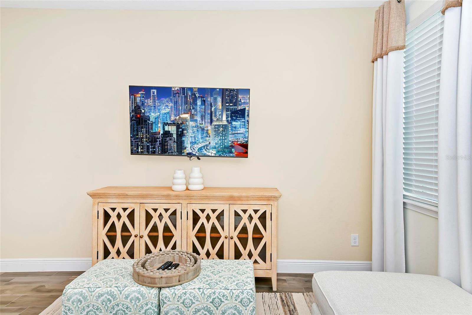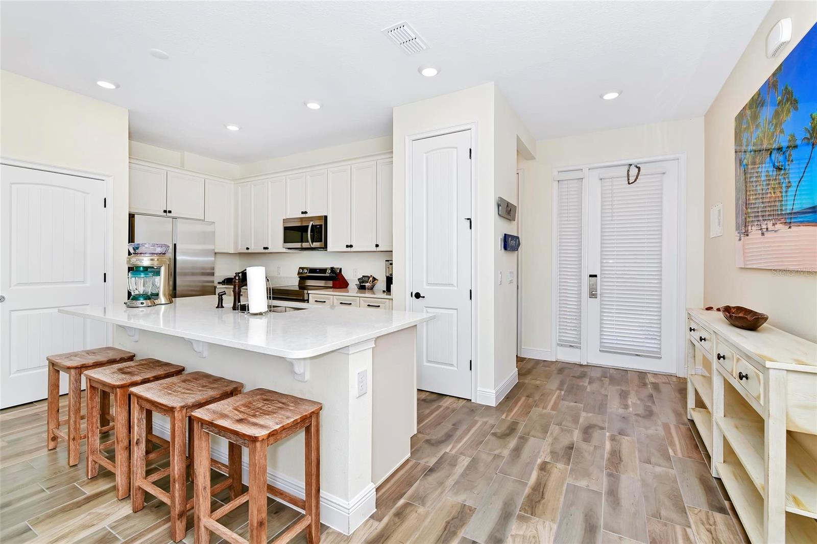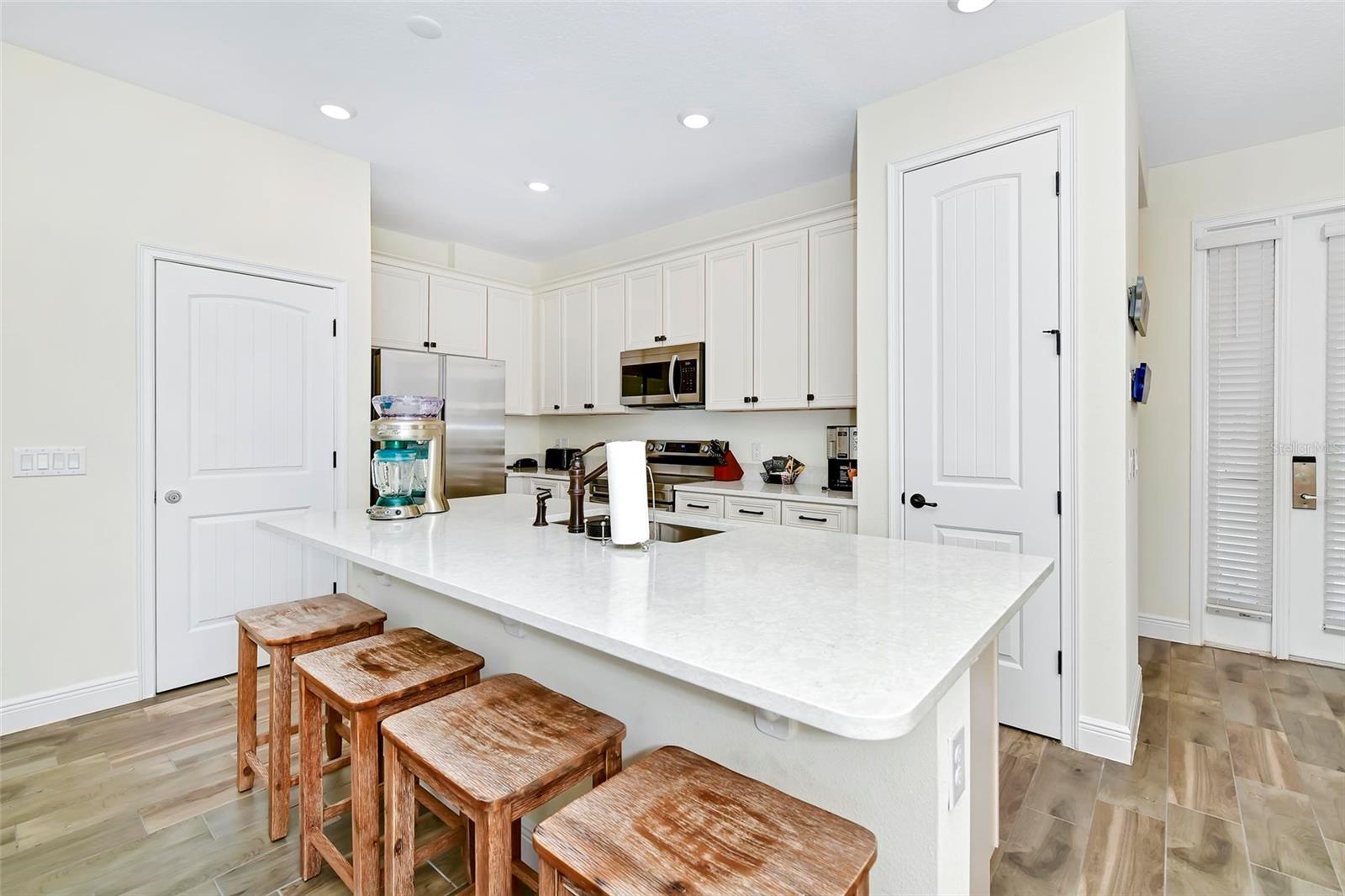 Welcome to Paradise! This Beautifully Furnished VILLA in Margaritaville Resort has 2 bedrooms, 2 and a half baths PLUS an ADDITIONAL BONUS ROOM! Furniture Package is INCLUDED in List Price! This Stunning Property also Boasts a Scenic View of the Serene Community Pool. Nestled on a Quiet Palm Tree-Lined Street puts Resort-Style Living within Reach. This is a Wonderful Community to Live in Full Time, Own a Second Home or Invest in a Vacation Rental Property! Step Inside the Light-Filled Living Room Showcasing "WOOD" Tile Floors and Ceiling Fans Throughout, with Ample Space for Relaxing or Entertaining. The Kitchen Features High-end Stainless Steel Appliances, Sleek Quartz Countertops with a Breakfast Bar and Seating That Invites Conversation and Culinary Creativity. Furniture Package Includes Blinds, Drapes, TVs, Artwork, Kitchen Necessities, Dishware, Linens, and so MUCH MORE! Primary Bedroom has an En suite Bathroom Offering a Particularly Luxurious Escape. Second Bathroom with Shower and Tub Combo. Bonus Room has a Twin Bed. Stepping Outside, Swaying Palms Frame the Backyard Oasis Enveloping the Paved Patio and Professionally Landscaped Grounds. This Unique First of its Kind Resort has Multiple Pools, Gym, On-Site Water Park, Sunset Walk Restaurants, Bars, Live Music, Retail and More! LOCATED MINUTES FROM DISNEY PARKS!, All While Being Conveniently Close to The Best Shopping, Dining, And Entertainment Options in Florida. This Home Is Not Just a Residence; It's A Lifestyle Choice for Those Who Want to Experience the Best of Florida Living, Where Every Day Feels Like a Vacation.