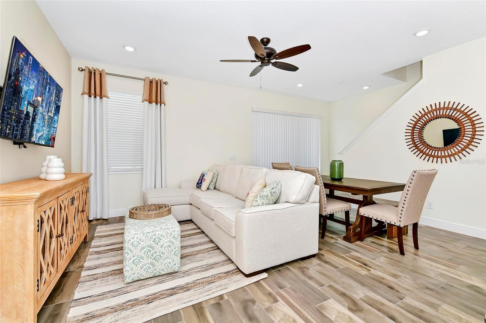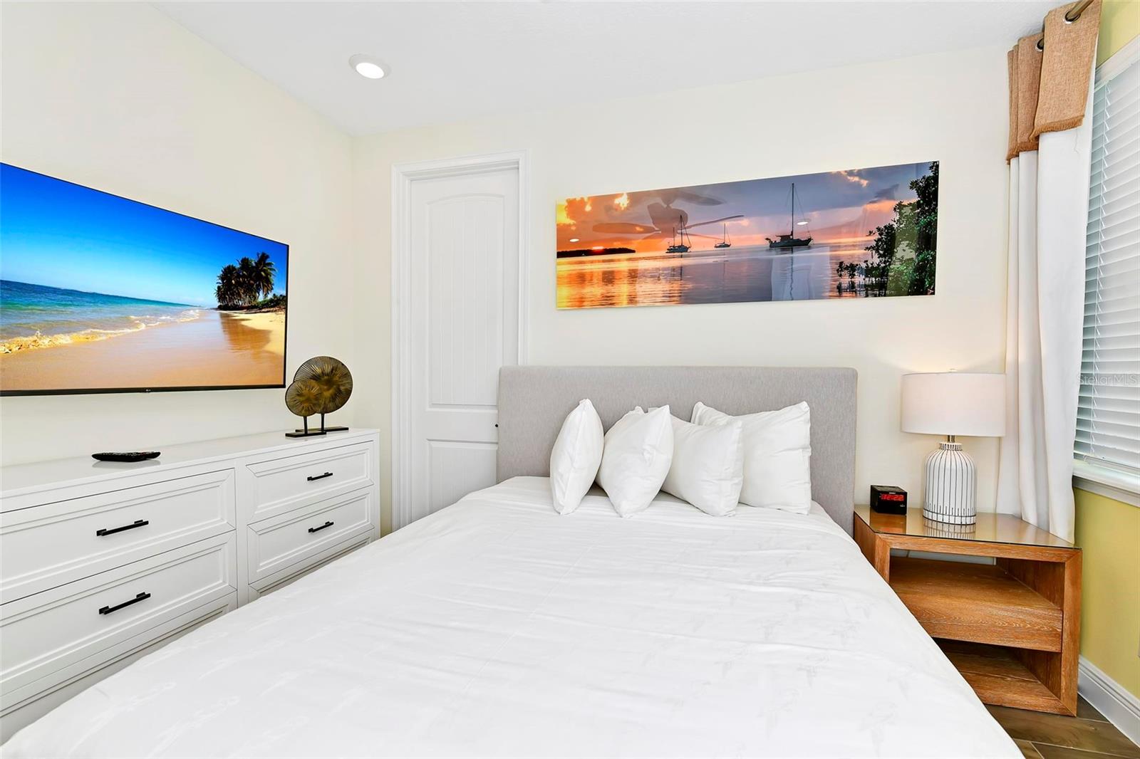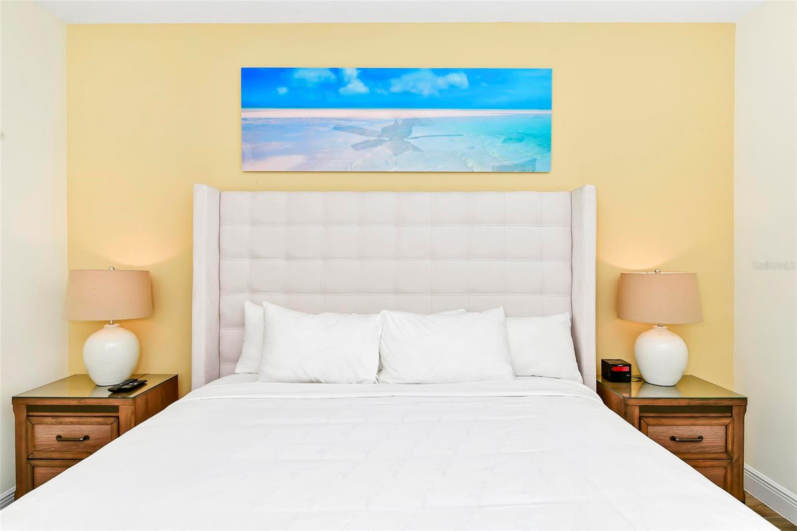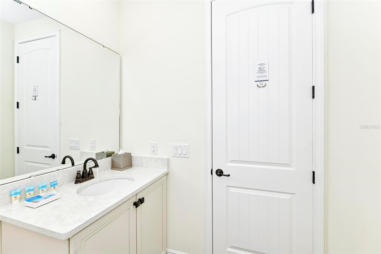 Welcome to Paradise! This Beautifully Furnished VILLA in Margaritaville Resort has 2 bedrooms, 2 and a half baths PLUS an ADDITIONAL BONUS ROOM! Furniture Package is INCLUDED in List Price! This Stunning Property also Boasts a Scenic View of the Serene Community Pool. Nestled on a Quiet Palm Tree-Lined Street puts Resort-Style Living within Reach. This is a Wonderful Community to Live in Full Time, Own a Second Home or Invest in a Vacation Rental Property! Step Inside the Light-Filled Living Room Showcasing "WOOD" Tile Floors and Ceiling Fans Throughout, with Ample Space for Relaxing or Entertaining. The Kitchen Features High-end Stainless Steel Appliances, Sleek Quartz Countertops with a Breakfast Bar and Seating That Invites Conversation and Culinary Creativity. Furniture Package Includes Blinds, Drapes, TVs, Artwork, Kitchen Necessities, Dishware, Linens, and so MUCH MORE! Primary Bedroom has an En suite Bathroom Offering a Particularly Luxurious Escape. Second Bathroom with Shower and Tub Combo. Bonus Room has a Twin Bed. Stepping Outside, Swaying Palms Frame the Backyard Oasis Enveloping the Paved Patio and Professionally Landscaped Grounds. This Unique First of its Kind Resort has Multiple Pools, Gym, On-Site Water Park, Sunset Walk Restaurants, Bars, Live Music, Retail and More! LOCATED MINUTES FROM DISNEY PARKS!, All While Being Conveniently Close to The Best Shopping, Dining, And Entertainment Options in Florida. This Home Is Not Just a Residence; It's A Lifestyle Choice for Those Who Want to Experience the Best of Florida Living, Where Every Day Feels Like a Vacation.