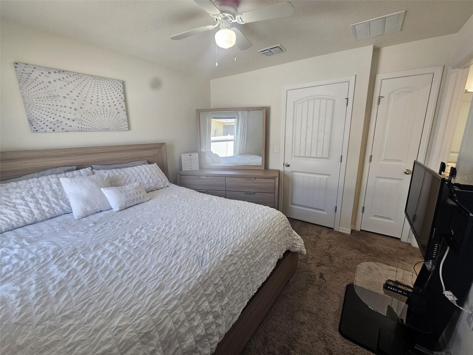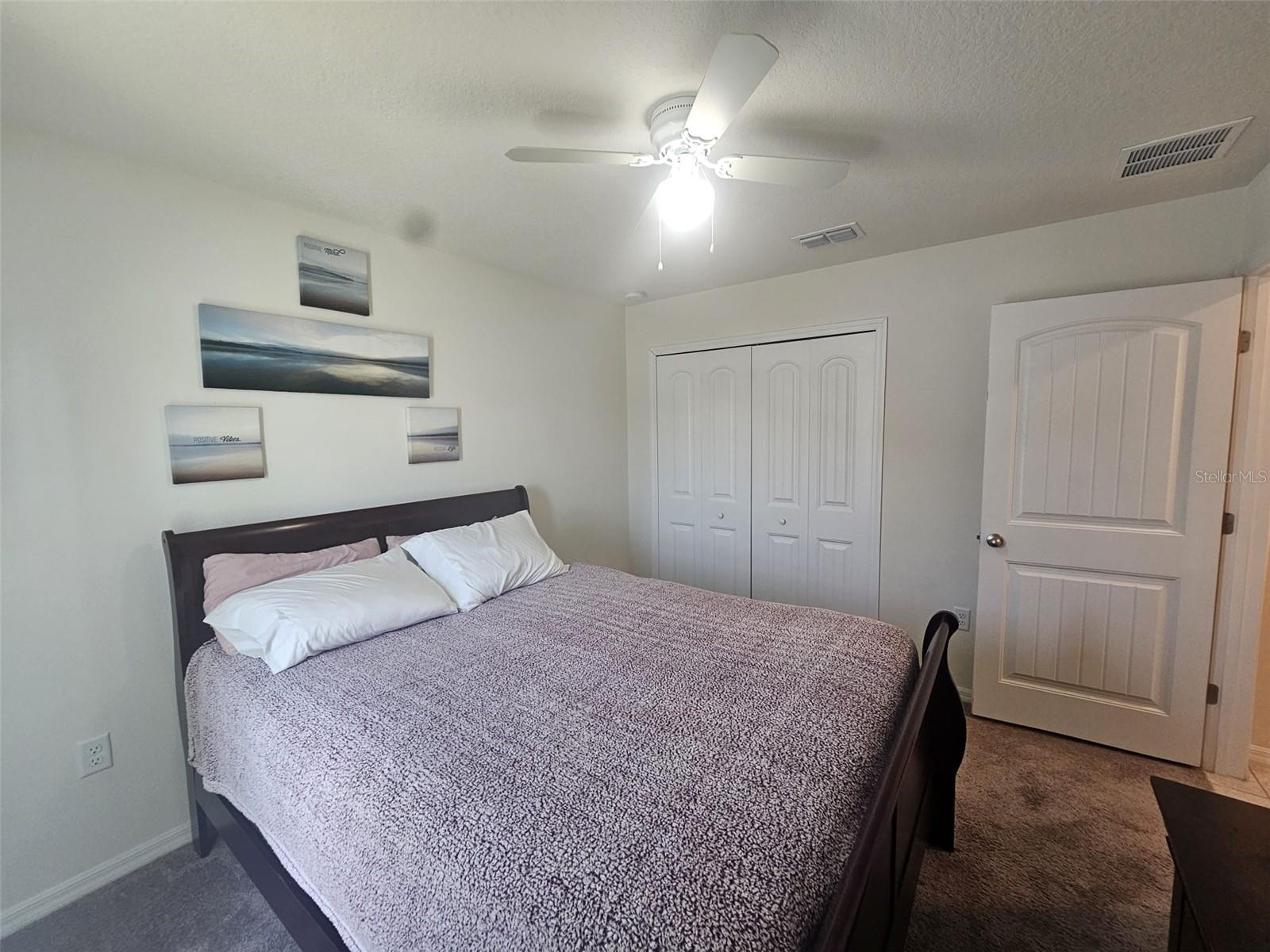 PRICE REDUCED. ASSUMABLE LOAN WITH LOW INTEREST RATE. NO CDD. NO MONEY DOWN PROGRAM AVAILABLE. Get More for your money. MOVE-IN READY HOME has so many extras that you will feel right at home. This home is located in a LARGE lot so you can plant or create your oasis. This 4-bedroom and 3-bathroom home has a MASTER SUITE WITH TWO WALKING CLOSETS and TWO SINKS in the BATH. ANOTHER SUITE with bathroom and walk-in closet for the big family or guests. TILE FLOORING AND CARPET. SMART LOCK on the Front door. Water Softener stays with the home. Solar Panels will be paid off at closing allowing you to save even more. Relax and enjoy coffee and friends on SCREENDED PORCH. The Association is very affordable including Spectrum Cable and Internet. You will find Hospitals, Publix, Walmart Supermarkets, Fitness Centers, and Malls near your home. You have easy access to the I-4 and SUNRAIL Station for your commute. Have fun in the community Parks, many trails in Disney's Wilderness Preserve, and more species than you can count. There is an Aquatic Center only miles away. This is the perfect home for a big family or First-time buyers looking for rooms and a huge backyard.