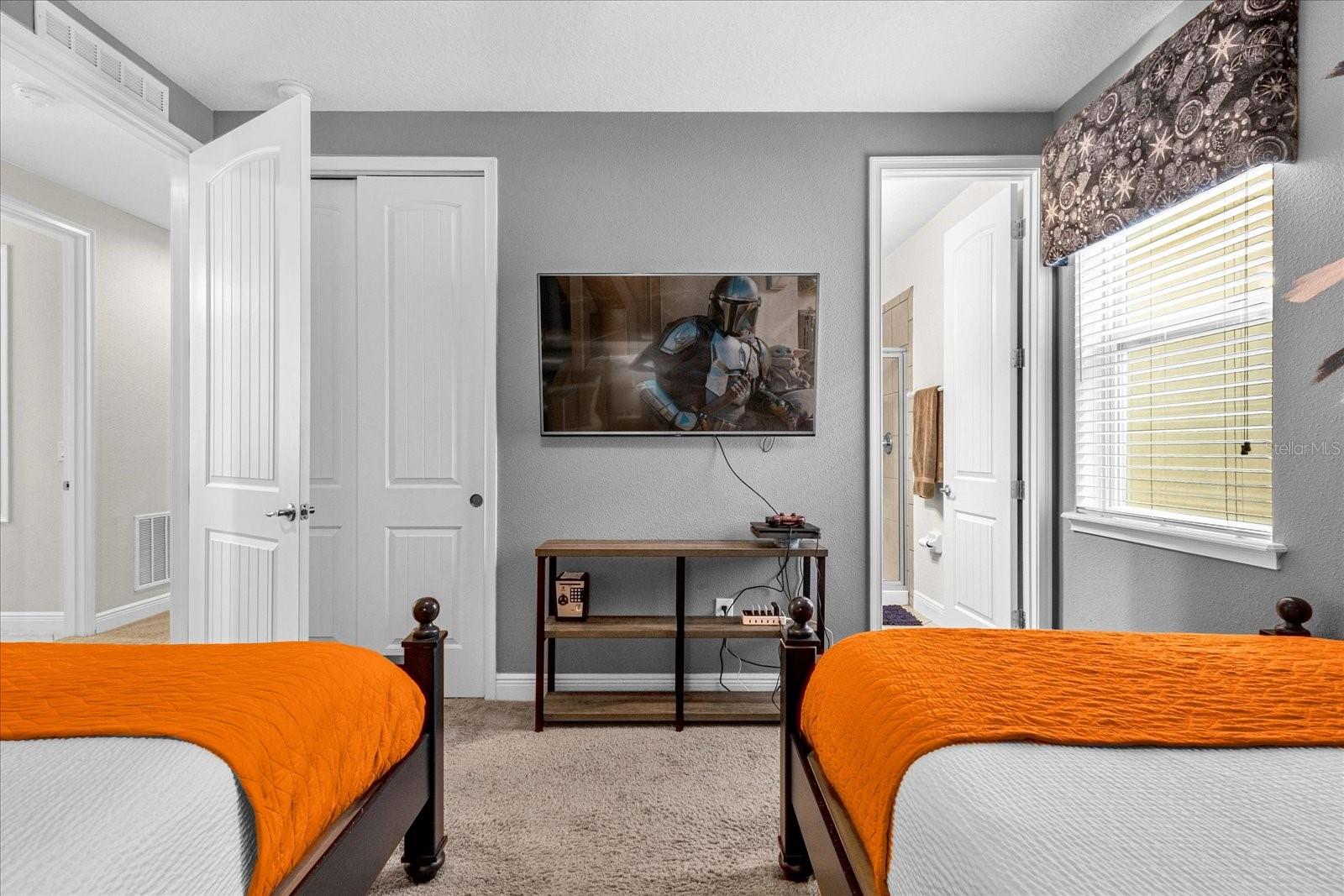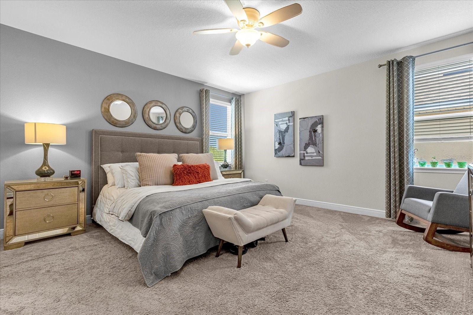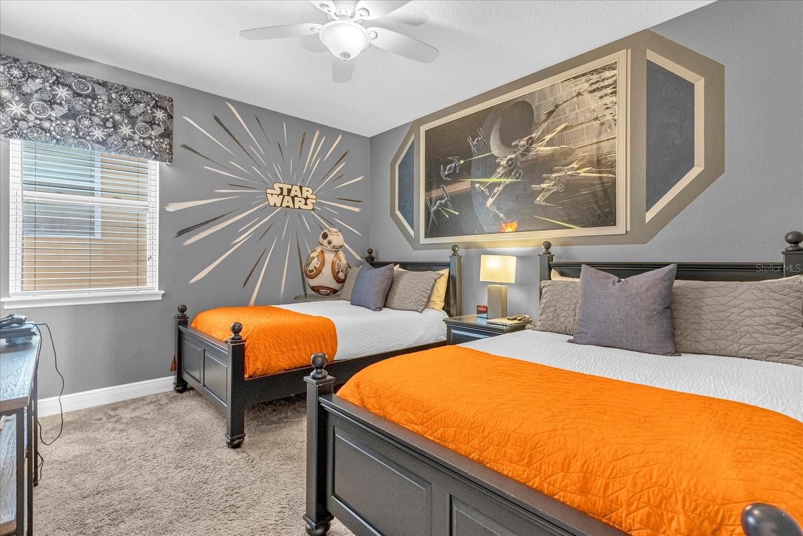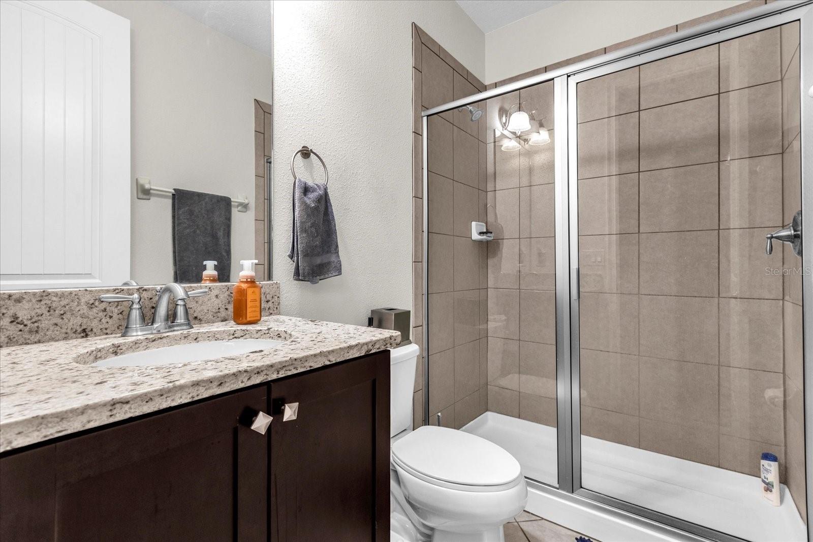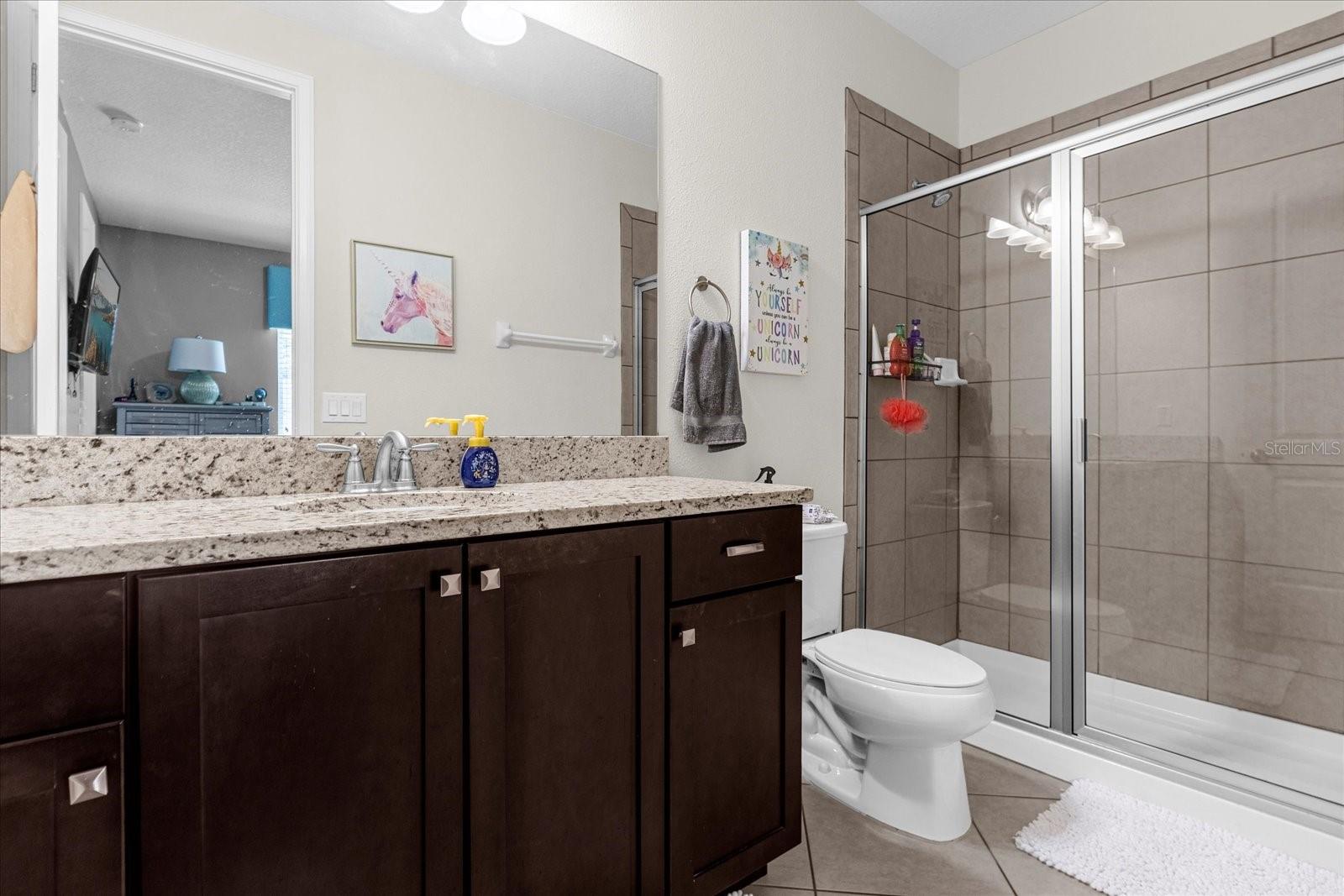 "This fully furnished, move-in ready home exceeds the quality of new construction. This home shows like a new model home come see for yourself. The owners have utilized it as a secondary residence for their family, exhibiting attention to detail throughout. Please note this is a short-term rental community and this home is ready to go as a turn-key investment home with the help of a manager. The Outside fenced are is an in-house mini resort beckons with a large covered lanai, paver decking, a sunning area, and a heated in-ground pool and spa. They have implemented rain gutters encircling the entire property, rare for this subdivision. An independent air conditioner surge protector providing $7,500 in equipment safeguarding that conveys with the house, and a cutting-edge carbon blue light UV A/C-Furnace system to combat mold and mildew. Additionally, the residence boasts upgraded furnishings and décor in pristine condition. Alongside an array of inclusions like a nearly new BBQ grill, lightly used Keurig coffee maker, bicycles for both children and adults, a pool deck box stocked with toys, and enhanced lounge chairs and cushions. Routine maintenance has been upheld with biannual servicing of the air conditioner, furnace, and pool heater." The kitchen boasts upgraded 42-inch dark espresso wood cabinets, stunning granite countertops, and stainless-steel appliances. Downstairs, a spacious guest bedroom, full bathroom, and a transformed garage - turned kid cave with Disney-themed decor and an epoxy-coated floor - await. Upstairs, three guest suites with dark wood vanities and granite tops, an upstairs laundry area, and a generous master suite can be found. The master bedroom includes a sizable walk-in closet and a master bath with double sinks, a garden tub, and a walk-in shower. The HOA fees cover a comprehensive list of services, such as Satellite TV, wireless internet, phone, lawn maintenance (including tree and shrub trimming, landscape re-mulching), bi-weekly pool upkeep, frequent trash collection, pest control, as well as 24-hour gate guard and security patrols. "The Encore Resort Water park, a prominent feature of the Encore, occupies a sprawling 10-acre space located at the core of the resort, adjacent to the Encore Resort clubhouse. Additionally, onsite restaurants are available at the clubhouse. A modern fitness center, equipped with cardio and toning machines, free weights, and more, caters to the fitness needs of guests. Encore Resort members have privileged access to two hard-surface tennis courts, three sand volleyball courts, 1.5 basketball courts, and a soccer pitch, providing a haven for sports enthusiasts. Shuttle service to Disney is also provided. This resort has it all and too much to mention.