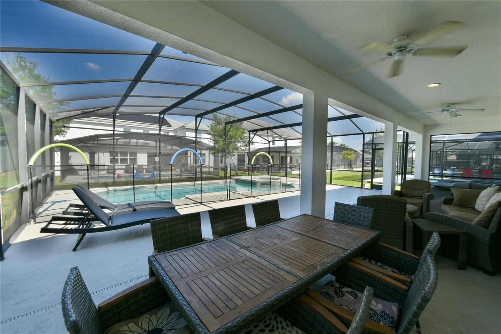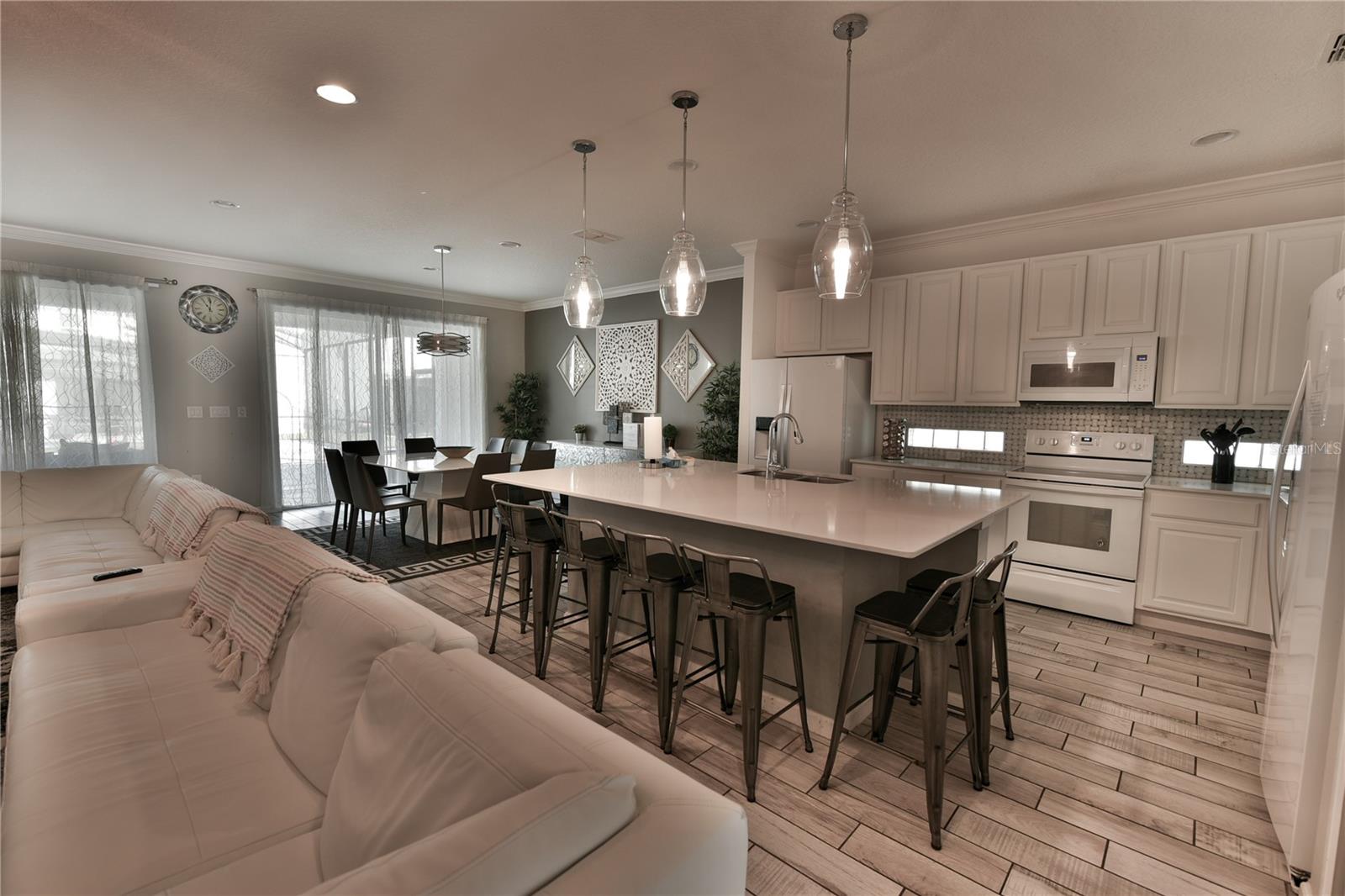 Fully Furnished 10-Bedroom Pool Home located in the luxurious Sonoma Resort community: This stunning vacation home features an open and airy floor plan, blending the kitchen, family room, and dining area seamlessly for entertaining. Outside, a large screened-in pool, heated jacuzzi, and covered lanai create an inviting outdoor oasis. The contemporary design extends throughout with modern amenities and furniture in all rooms. Whether used as a primary residence, vacation home, or rental investment, this property offers an amazing opportunity to own a piece of the magic at Sonoma Resort!