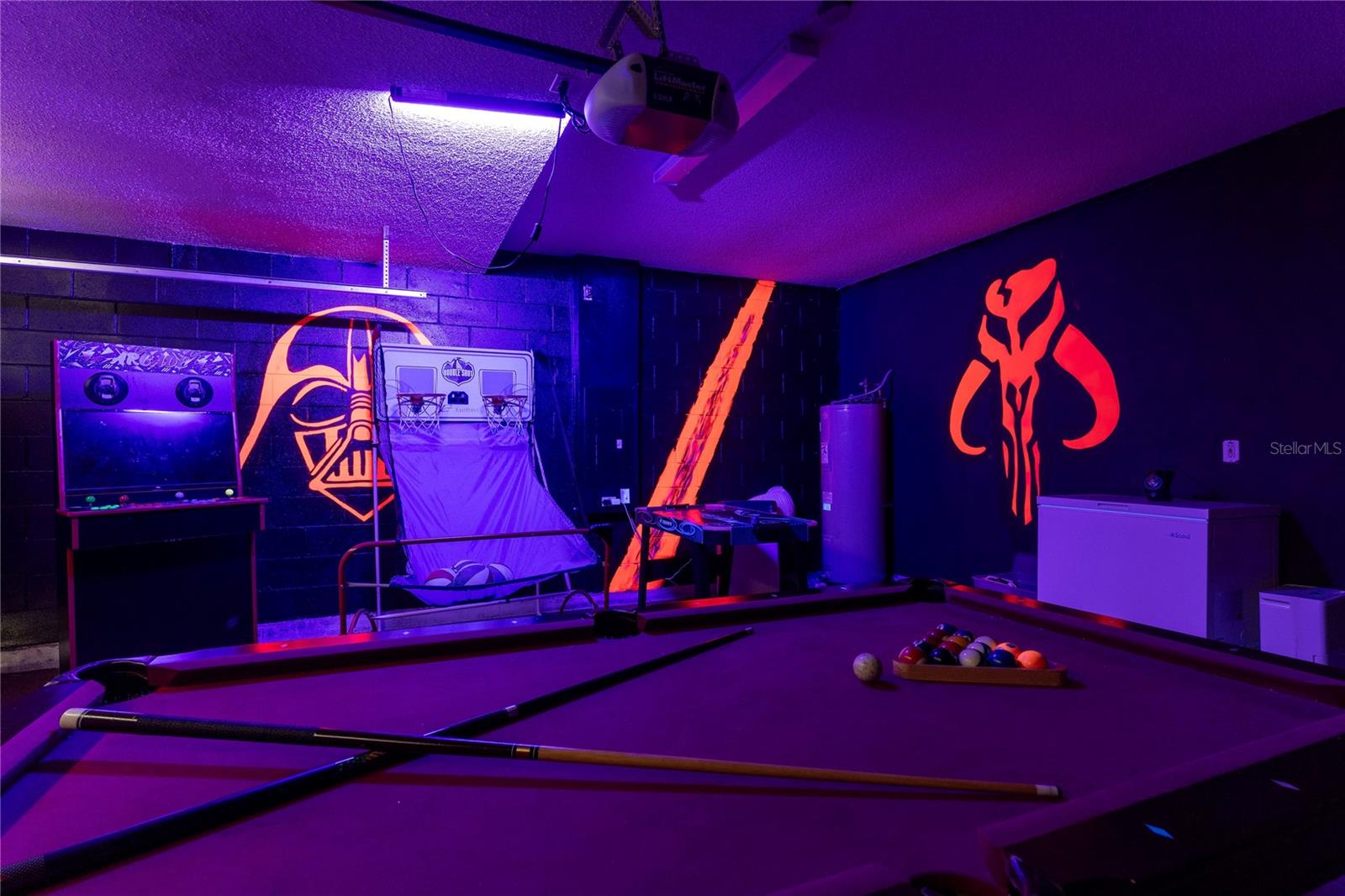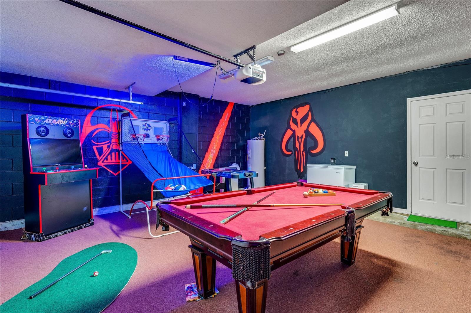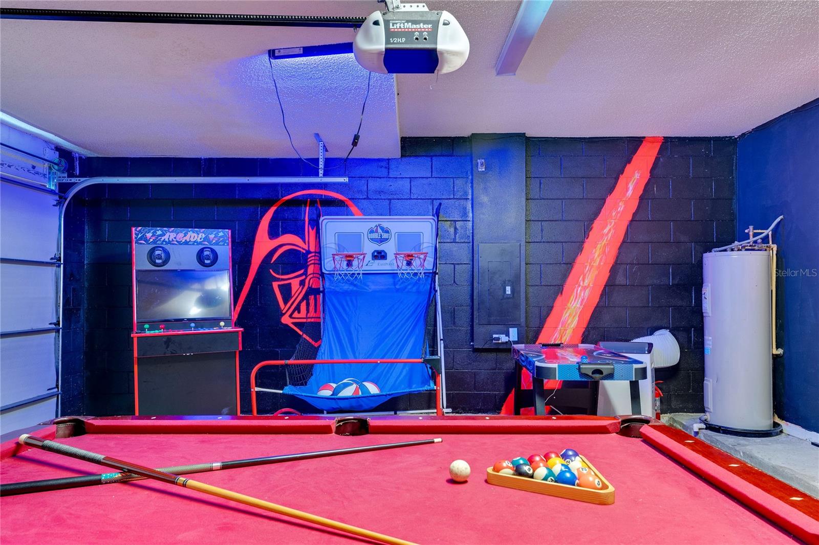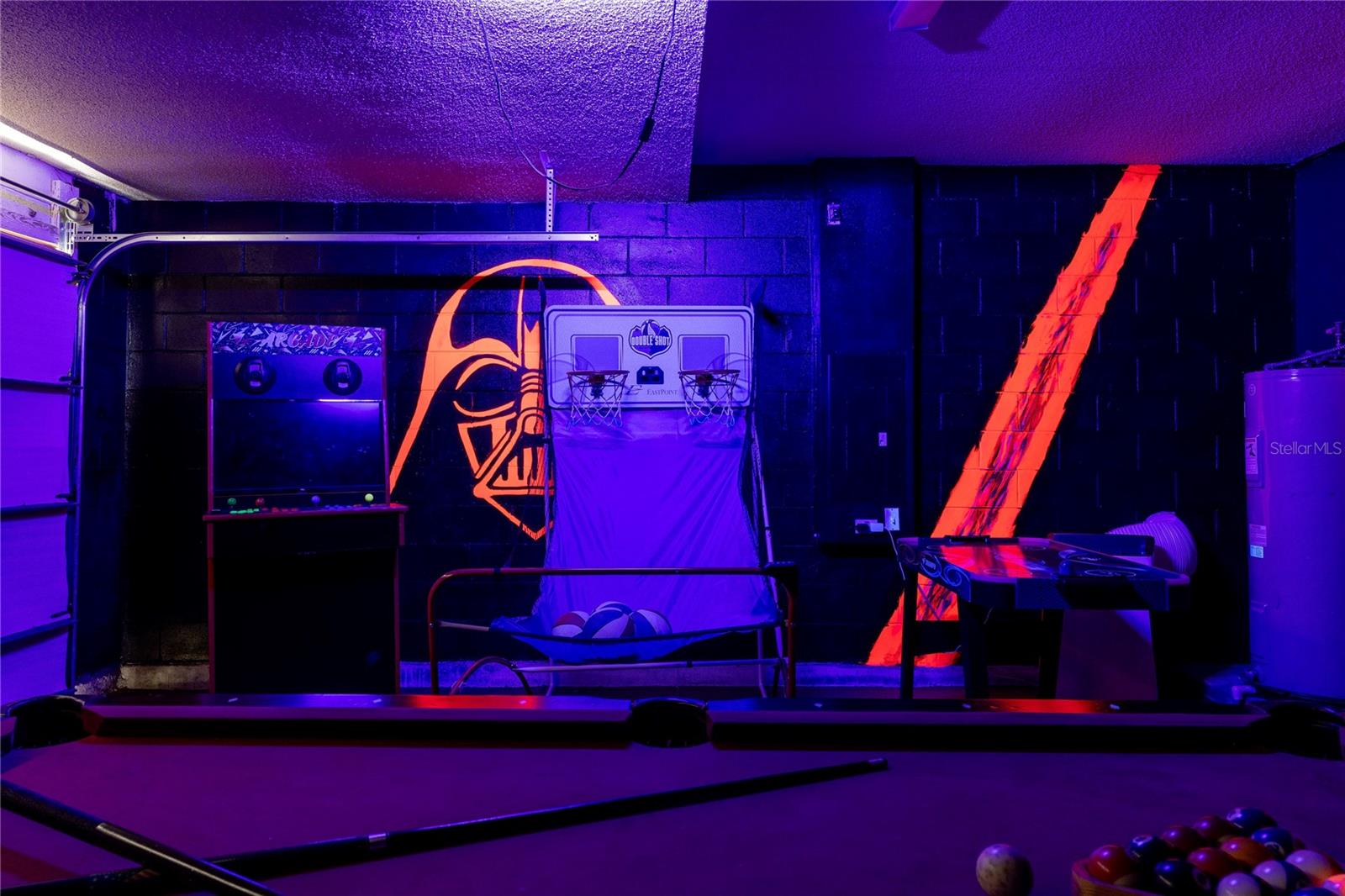 Welcome to this stunning 5-bedroom, single-family home with its welcoming luxurious interior and playful charm. Recently updated, this home offers the perfect blend of modern amenities and high end design, making it the ultimate retreat for family and friends. As you step inside, you'll be greeted with an open views of your private conservation water views. Notice the new flooring throughout and freshly updated furniture, setting the stage for the grandeur that awaits. The heart of the home, the kitchen, has been completely renovated with top-of-the-line and sleek finishes, making it a haven for family meals. Relaxation awaits in the spacious living areas, overflowing with natural light, creating a warm and inviting ambiance. Step outside to your own private paradise, featuring a sparkling pool surrounded by lush landscaping, perfect for soaking up the Florida sunshine or hosting unforgettable gatherings. You will find your oversized primary bedroom on the 1st floor with private nook featuring a nursery and easy access to the back patio. A private bathroom features updated DUAL SINKS with vanity and a LARGE walk in shower. Indulge your inner child in the built-in garage arcade, offering endless hours of entertainment for all ages. For the Disney enthusiasts find your THEMED bedrooms inspired by Encanto and Spider-Man that are sure to delight any bold fan and their adventurous spirit. With a NEWER roof and NEW pool pump, NEW AC, this home offers peace of mind and worry-free living. This stunning property is being sold furnished, allowing you to move right in or have it as a turn key rental and start enjoying the resort-style lifestyle. Don't miss your chance to own this paradise.