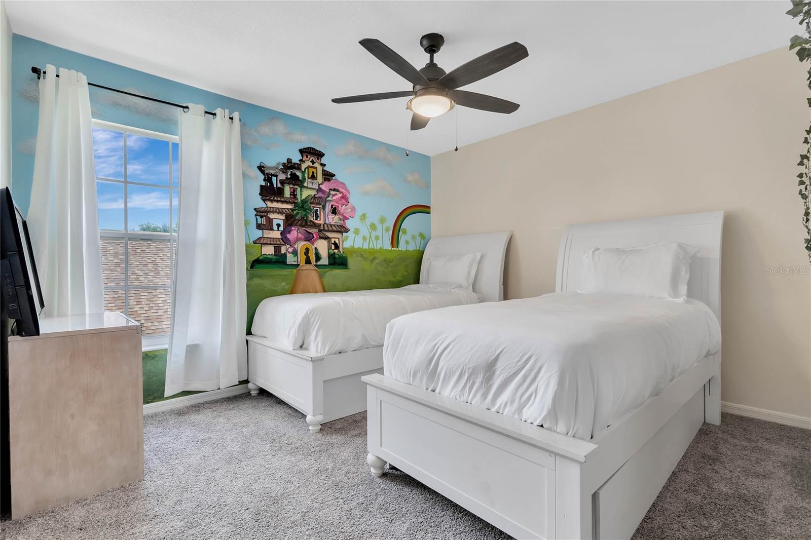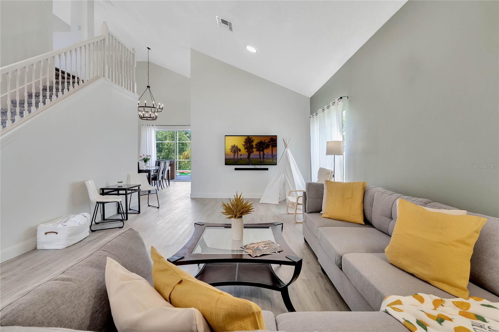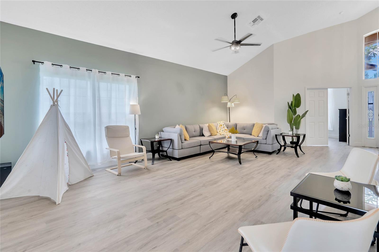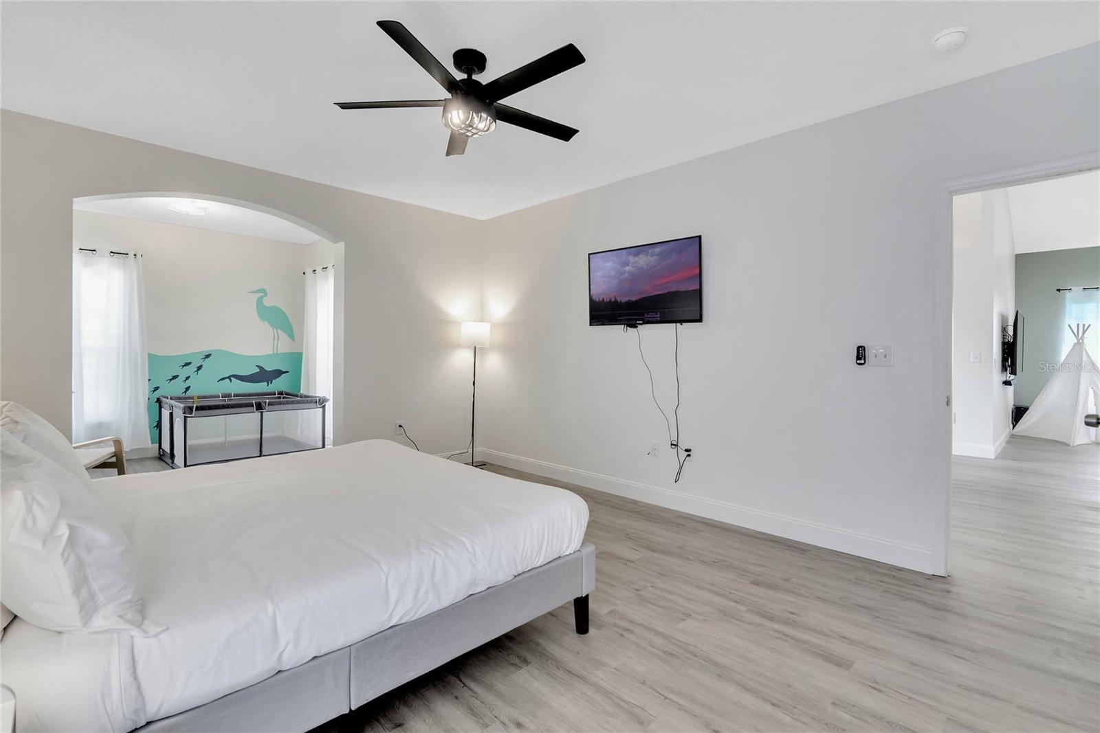 Welcome to this stunning 5-bedroom, single-family home with its welcoming luxurious interior and playful charm. Recently updated, this home offers the perfect blend of modern amenities and high end design, making it the ultimate retreat for family and friends. As you step inside, you'll be greeted with an open views of your private conservation water views. Notice the new flooring throughout and freshly updated furniture, setting the stage for the grandeur that awaits. The heart of the home, the kitchen, has been completely renovated with top-of-the-line and sleek finishes, making it a haven for family meals. Relaxation awaits in the spacious living areas, overflowing with natural light, creating a warm and inviting ambiance. Step outside to your own private paradise, featuring a sparkling pool surrounded by lush landscaping, perfect for soaking up the Florida sunshine or hosting unforgettable gatherings. You will find your oversized primary bedroom on the 1st floor with private nook featuring a nursery and easy access to the back patio. A private bathroom features updated DUAL SINKS with vanity and a LARGE walk in shower. Indulge your inner child in the built-in garage arcade, offering endless hours of entertainment for all ages. For the Disney enthusiasts find your THEMED bedrooms inspired by Encanto and Spider-Man that are sure to delight any bold fan and their adventurous spirit. With a NEWER roof and NEW pool pump, NEW AC, this home offers peace of mind and worry-free living. This stunning property is being sold furnished, allowing you to move right in or have it as a turn key rental and start enjoying the resort-style lifestyle. Don't miss your chance to own this paradise.