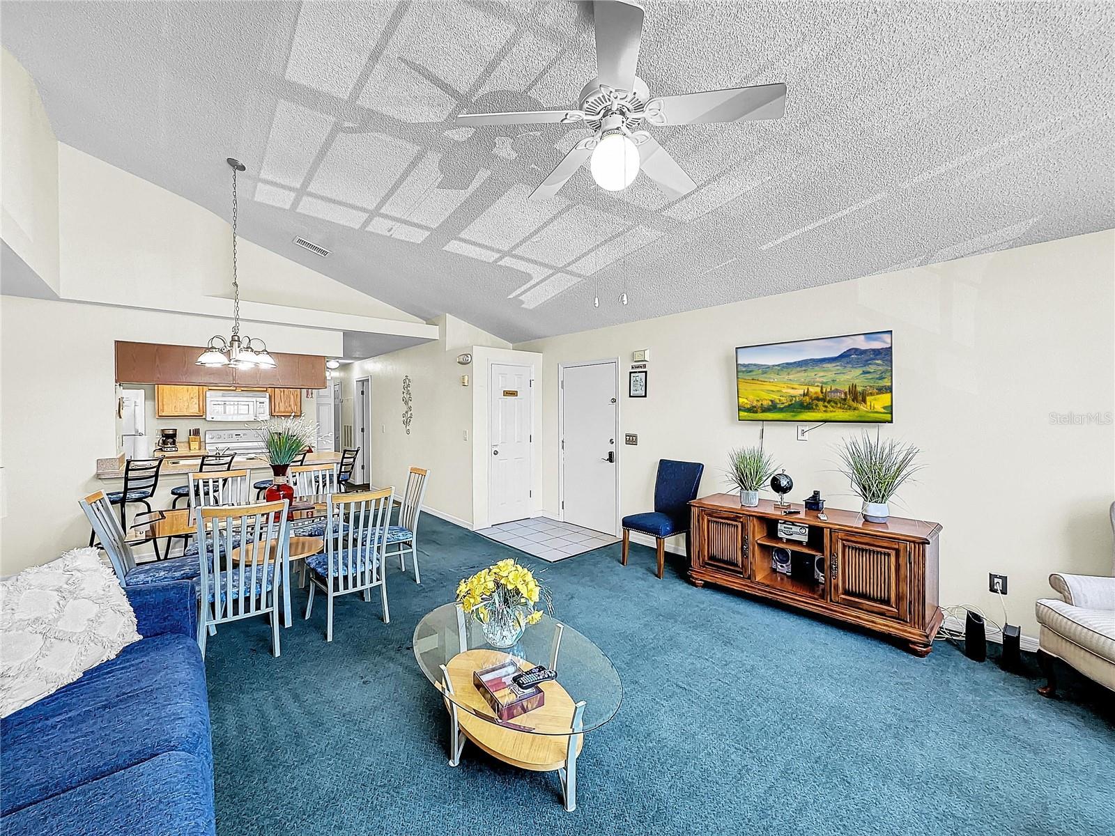 **PERFECT INVESTMENT PROPERTY OR PRIMARY HOME PROPERTY** Discover the convenience and charm of this 2nd floor fully furnished walk up which offers a blank canvas in its pristine original condition - ready for YOU to personalize and make it your own! This 3-bedroom, 2-bath room condo, has 1,326 SQFT for stylish living space. With high vaulted ceilings and amazing natural light, this unit is perfectly located for fun and functionality, you are mere moments from the vibrant tourist attractions of the area. Enjoy world-class shopping at the nearby Vineland Premium Outlets or experience the magic of Disney Springs and the Disney parks, just 15 minutes away. Whether you're searching for a vacation home, a profitable long term or short rental investment, or a delightful residence, this condo offers it all. This home is looking for the right owner to personalize the unit and make it their own! Don't miss your chance to own a slice of paradise. Book your showings TODAY!