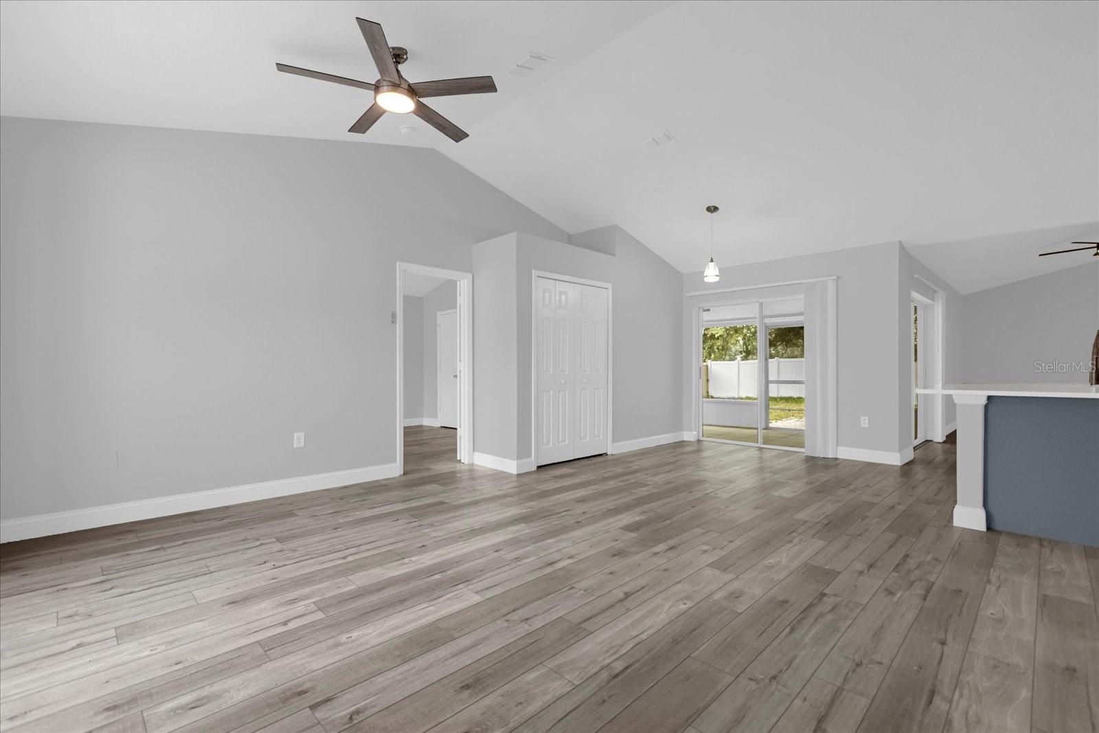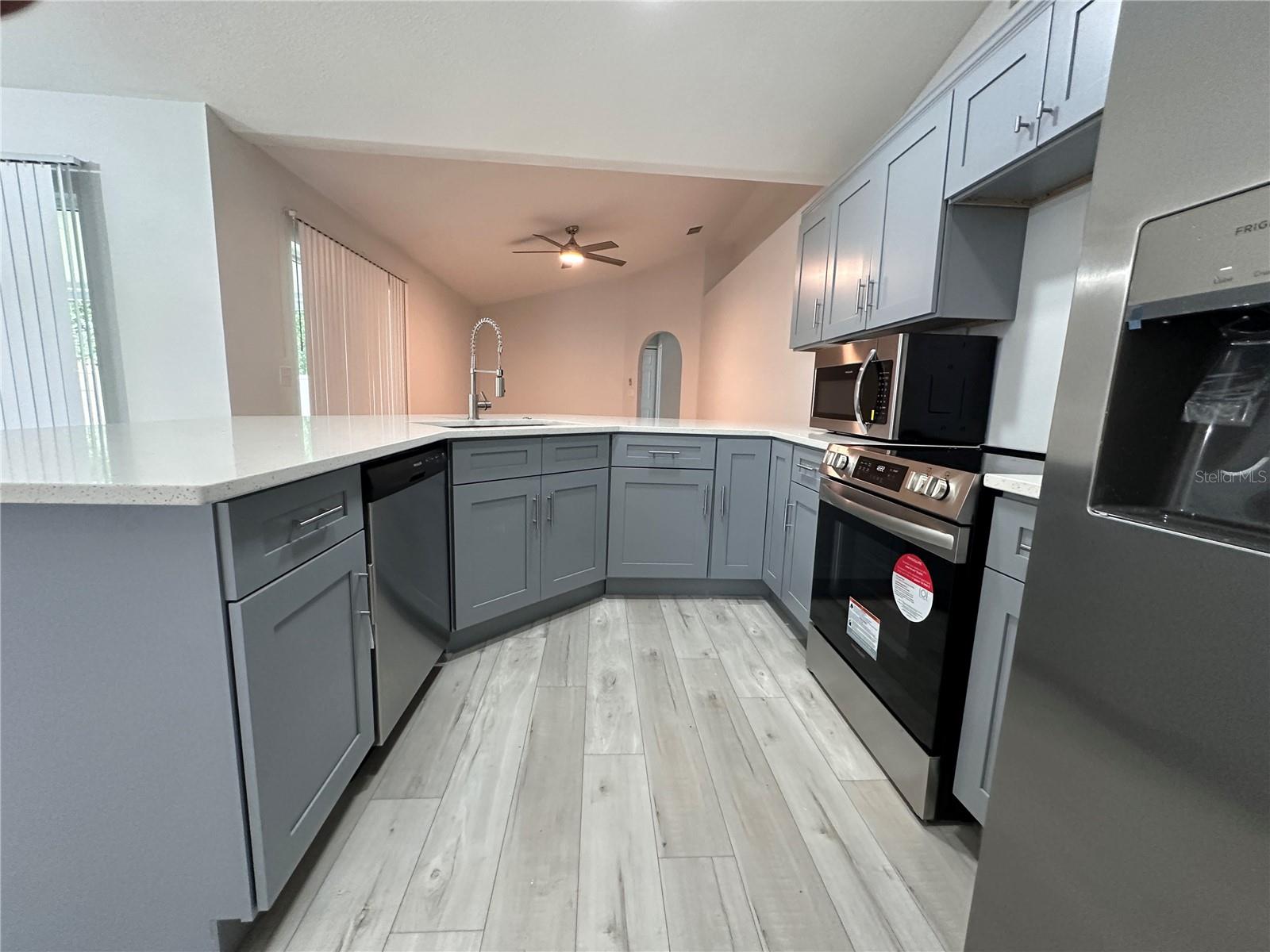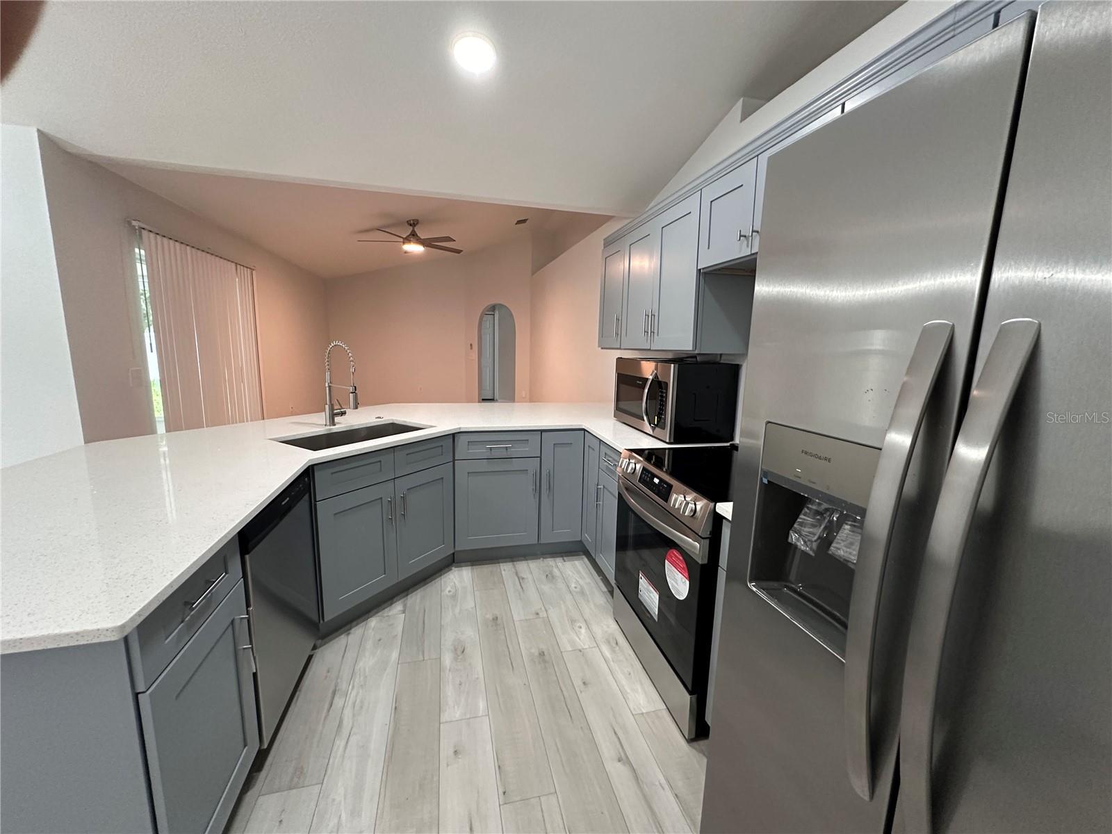 Seller Motivated, Price Reduced to Sell, New ROOF Just installed!! This remarkable fully Renovated home boasts 4 bedrooms, 2 full bathrooms, a sizable fenced backyard, and a storage shed, making it an ideal choice for a primary residence. Nestled in the heart of Poinciana villages, just a short 25-minute drive from the Disney Parks, this property offers a generously sized lot perfect for family BBQ gatherings all year round. Upon entering, you'll immediately sense the modern style and elegance this home exudes. On the right, you'll find the recently upgraded kitchen, complete with brand new stainless-steel appliances. To the left, a spacious dining area provides access to an open-concept kitchen space featuring updated cabinetry, a modern sink, dishwasher, new garbage disposal, microwave, refrigerator, and range. The quartz countertops, in a half island style, make for a convenient breakfast bar that can comfortably seat six individuals. Adjacent to the kitchen is another living/family room area, which opens up to the backyard. The split floor plan ensures privacy for residents and guests, with a spacious master bedroom and guest rooms situated down the far hallway. Don't miss out on this opportunity to embrace the Florida lifestyle—schedule your viewing today! New Roof 2024 being installed these days.