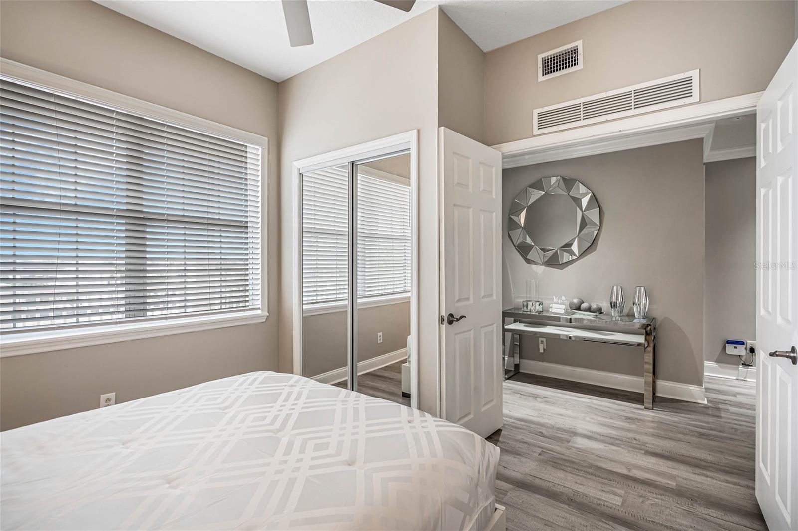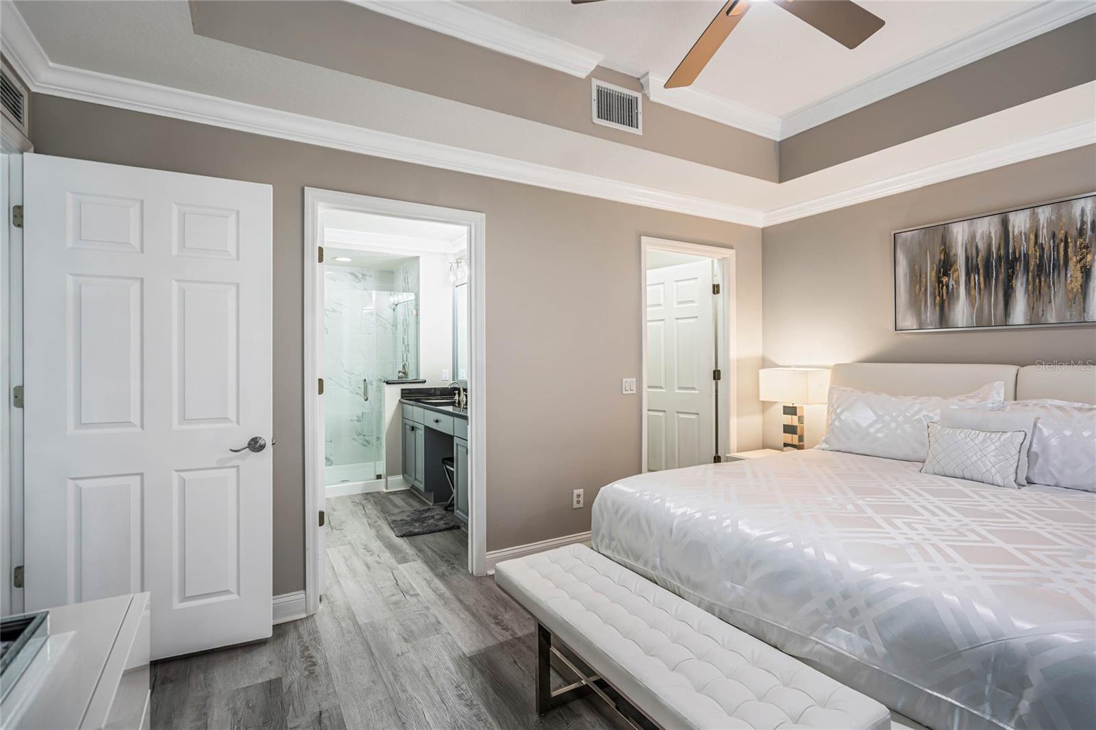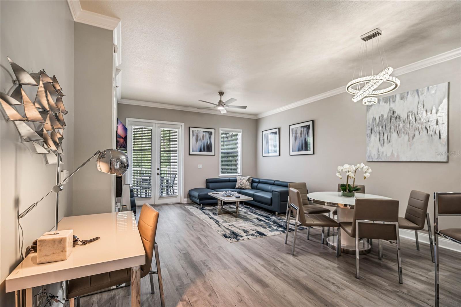 Step into modern elegance with this stunning 3-bedroom, 2-bathroom condo, meticulously remodeled to perfection. Located on the coveted third floor, this unit boasts not only style but also a thoughtful layout designed for comfort and convenience. As you enter, be greeted by bedroom two, offering privacy and charm with its French doors. Adjacent, discover bedroom three, perfectly positioned next to the bathroom for easy access. The primary bedroom, a true retreat, awaits off the living room, featuring its own access to the balcony through charming French doors, offering a serene outdoor escape. Entertain with ease in the spacious living room-dining combo, adorned with yet another set of French doors that flood the space with natural light and invite the outdoors in. But the allure doesn't end there – included is a transferable community membership, granting access to a host of world-class amenities. Whether you're teeing off at one of the three signature golf courses, enjoying aquatic thrills at the water park and lazy river, or engaging in friendly competition on the pickleball and tennis courts, every day promises adventure. Stay fit at the community gym or relax by one of the 11 community pools, making every moment a vacation. And when it's time to dine, indulge in culinary delights at one of the three onsite restaurants, adding yet another layer of convenience and luxury to your lifestyle. Don't miss the chance to elevate your lifestyle – seize this opportunity to call this condo your own!