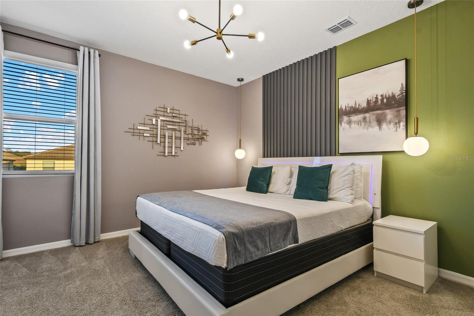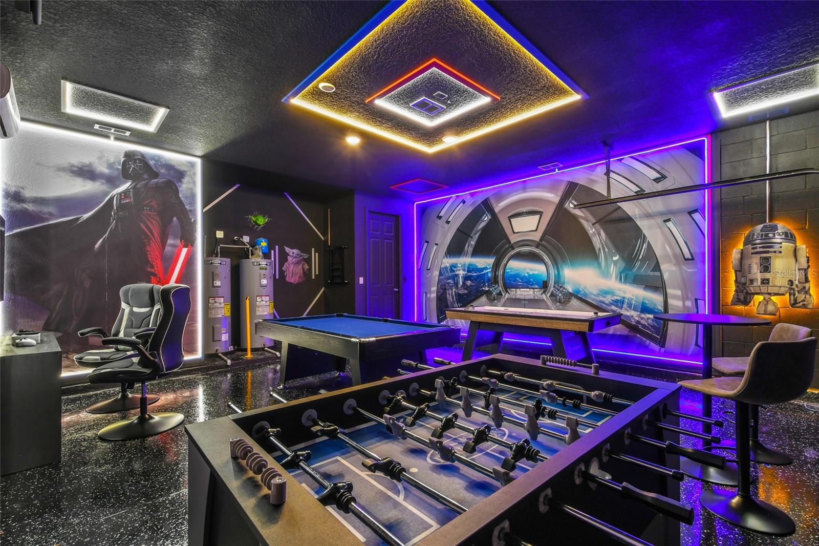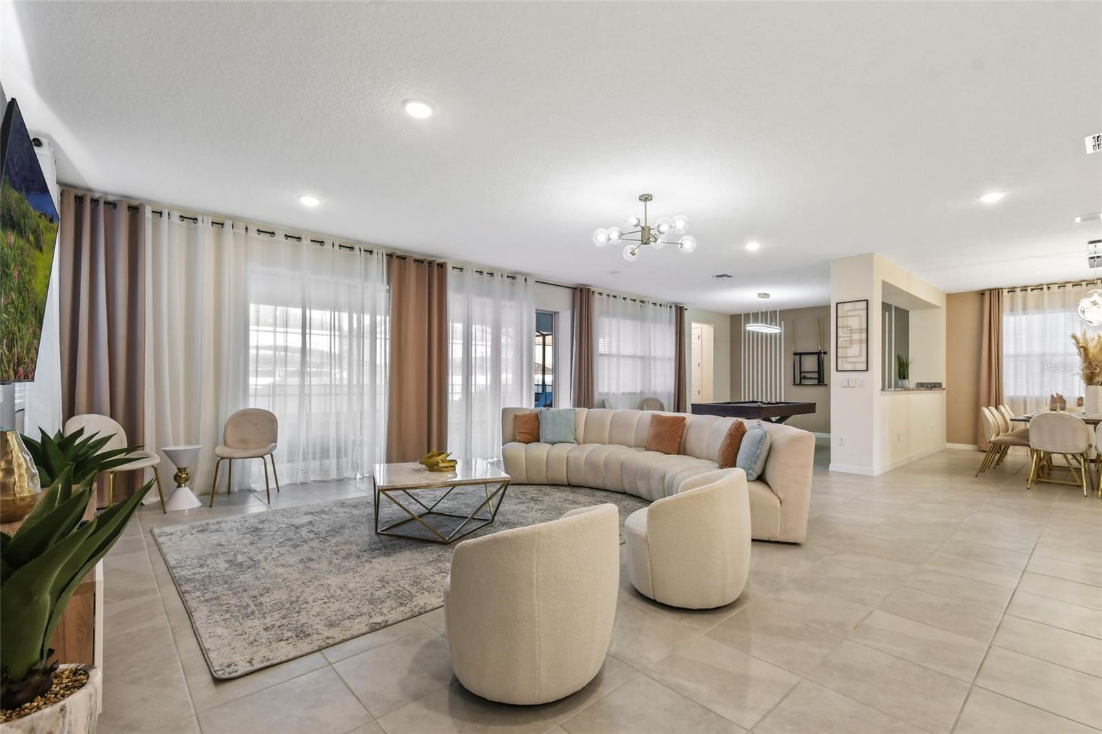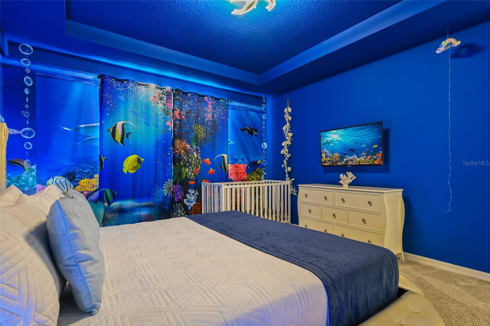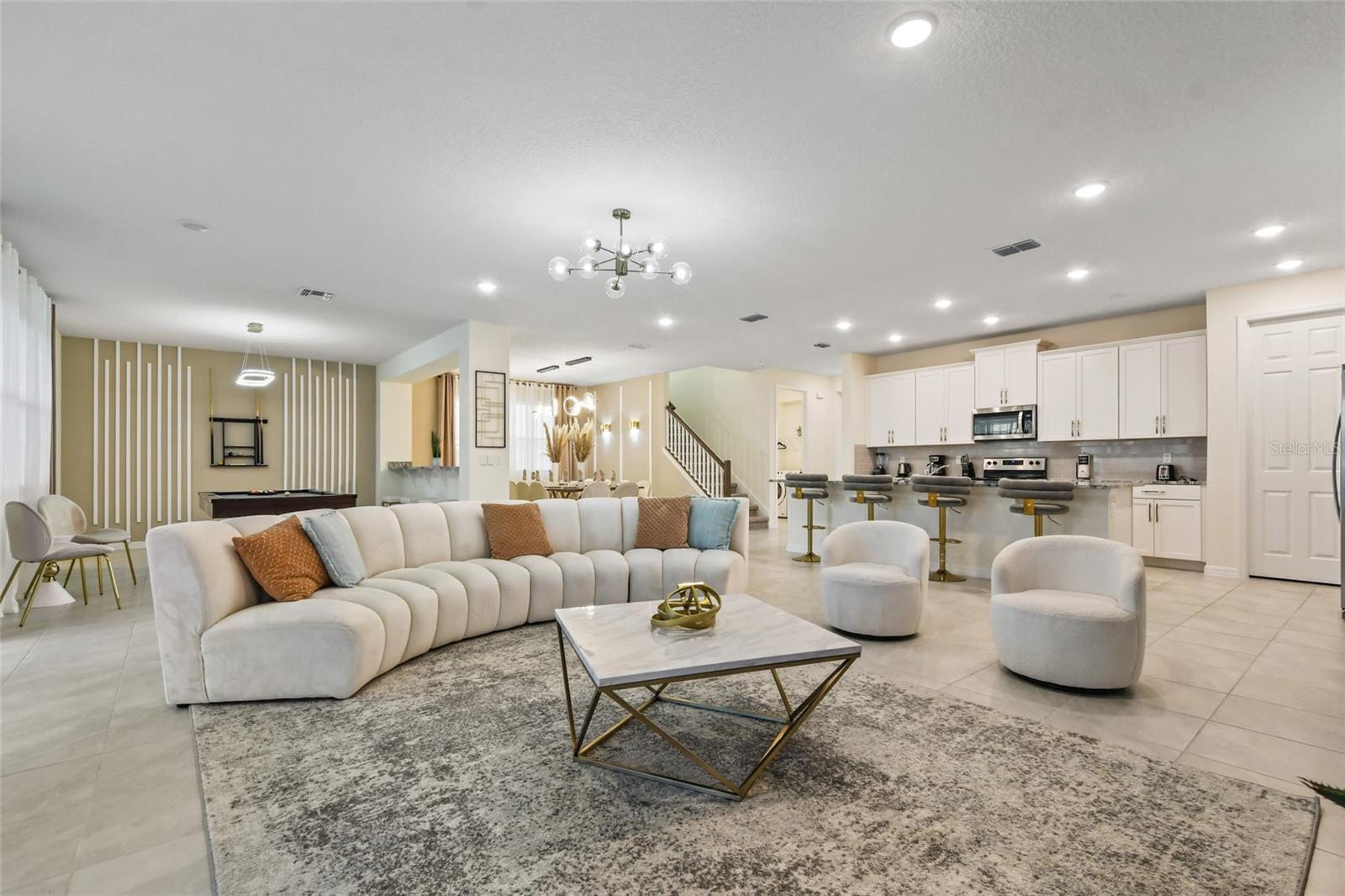 Priced to sell! TURNKEY INCOME PRODUCING SHORT-TERM RENTAL HOME! You are sure to be impressed by this stunning 9-bedroom, 6.5-bathroom property located in the sought-after Solara Resort community. Built in 2022, the home is beautifully decorated with themed and customized furniture, making it popular for rentals with high occupancy rates and daily rate. Upon entry, you're welcomed by a spacious, brightly lit living room with high ceilings and large windows that flood the space with natural light. The open floor plan seamlessly connects the living area to the dining space and kitchen, creating an ideal setting for entertaining. The kitchen boasts modern appliances, granite countertops, and ample storage, with a large island and breakfast bar perfect for morning coffee or interacting with guests while cooking. The primary bedroom with a ocean theme, located on the first floor, includes a walk-in closet and an en-suite bathroom with dual sinks, a soaking tub, and a separate shower. Upstairs, discover eight additional bedrooms, five bathrooms, and a large loft converted into a media room, providing ample space for family and guests. The two-car garage has been transformed into a game room, offering endless entertainment options for guests. Outside, the spacious backyard provides plenty of room for outdoor activities. The house is equipped with solar panels, offering savings on utility bills. Solara Resort features a state-of-the-art clubhouse with a full-service restaurant, ice cream parlor, and coffee bar. Fitness enthusiasts can enjoy the gym, while outdoor lovers can take advantage of the basketball, beach volleyball, and soccer facilities. The zero-entry pool, surrounded by cabanas, a poolside tiki bar, and a splash pad, offers endless recreation options. HOA fees include Basic Cable & Internet, Landscaping Maintenance, Valet Trash Service, and Common Area Maintenance. Located approximately 8 miles from Walt Disney World and a short drive to Universal, SeaWorld, and International Drive, Solara Resort offers convenience and luxury for vacation home or investment property buyers. Don't miss this opportunity!