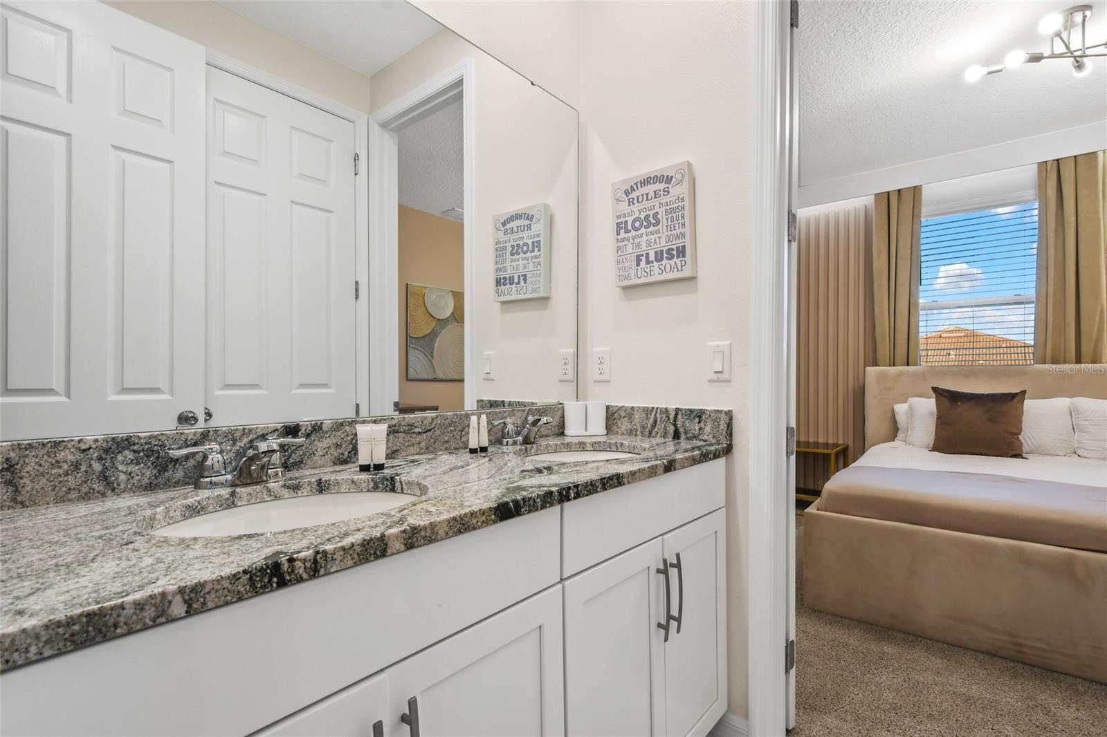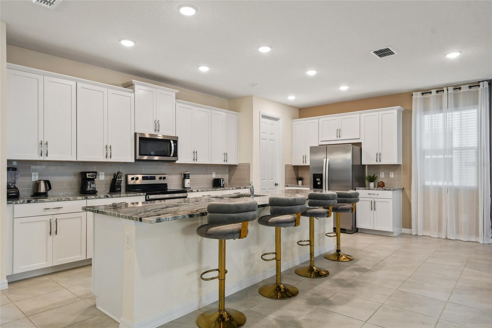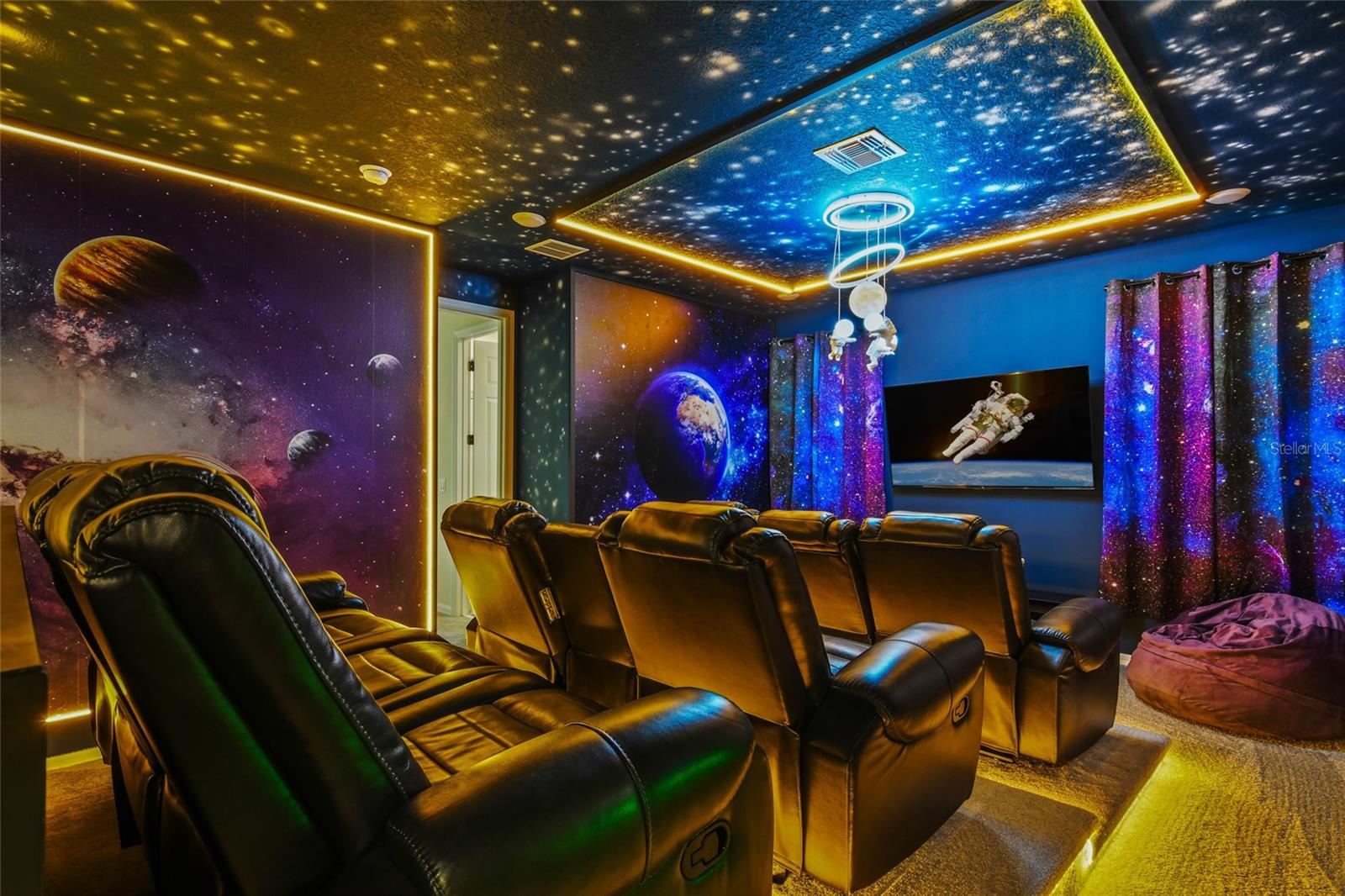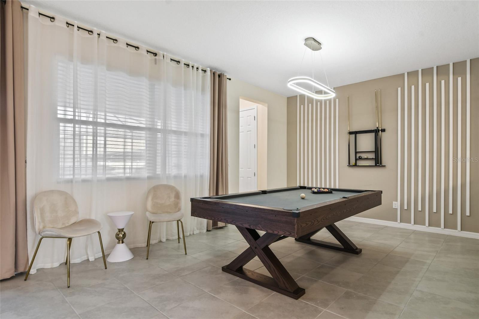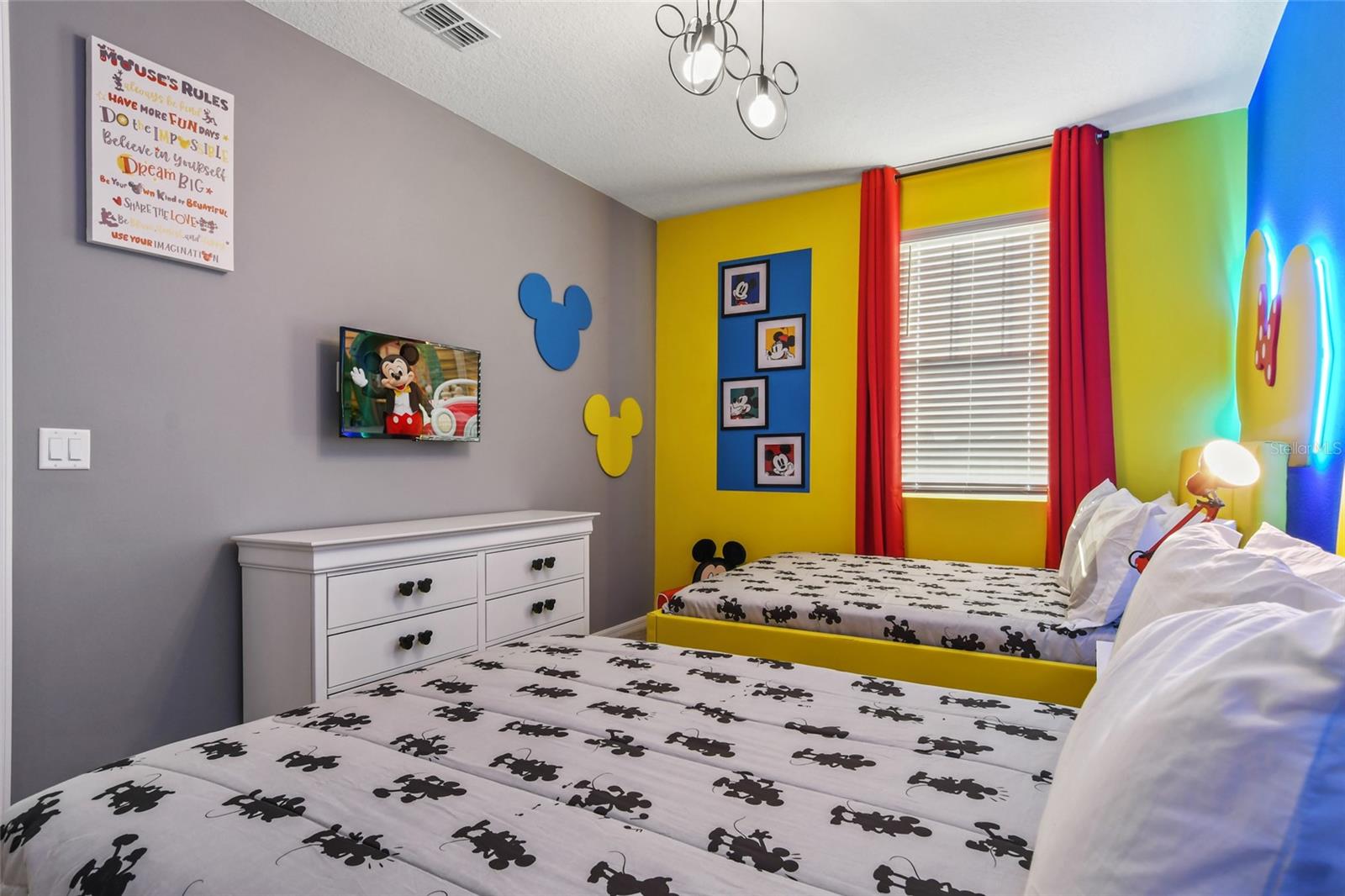Priced to sell! TURNKEY INCOME PRODUCING SHORT-TERM RENTAL HOME! You are sure to be impressed by this stunning 9-bedroom, 6.5-bathroom property located in the sought-after Solara Resort community. Built in 2022, the home is beautifully decorated with themed and customized furniture, making it popular for rentals with high occupancy rates and daily rate. Upon entry, you're welcomed by a spacious, brightly lit living room with high ceilings and large windows that flood the space with natural light. The open floor plan seamlessly connects the living area to the dining space and kitchen, creating an ideal setting for entertaining. The kitchen boasts modern appliances, granite countertops, and ample storage, with a large island and breakfast bar perfect for morning coffee or interacting with guests while cooking. The primary bedroom with a ocean theme, located on the first floor, includes a walk-in closet and an en-suite bathroom with dual sinks, a soaking tub, and a separate shower. Upstairs, discover eight additional bedrooms, five bathrooms, and a large loft converted into a media room, providing ample space for family and guests. The two-car garage has been transformed into a game room, offering endless entertainment options for guests. Outside, the spacious backyard provides plenty of room for outdoor activities. The house is equipped with solar panels, offering savings on utility bills. Solara Resort features a state-of-the-art clubhouse with a full-service restaurant, ice cream parlor, and coffee bar. Fitness enthusiasts can enjoy the gym, while outdoor lovers can take advantage of the basketball, beach volleyball, and soccer facilities. The zero-entry pool, surrounded by cabanas, a poolside tiki bar, and a splash pad, offers endless recreation options. HOA fees include Basic Cable & Internet, Landscaping Maintenance, Valet Trash Service, and Common Area Maintenance. Located approximately 8 miles from Walt Disney World and a short drive to Universal, SeaWorld, and International Drive, Solara Resort offers convenience and luxury for vacation home or investment property buyers. Don't miss this opportunity!