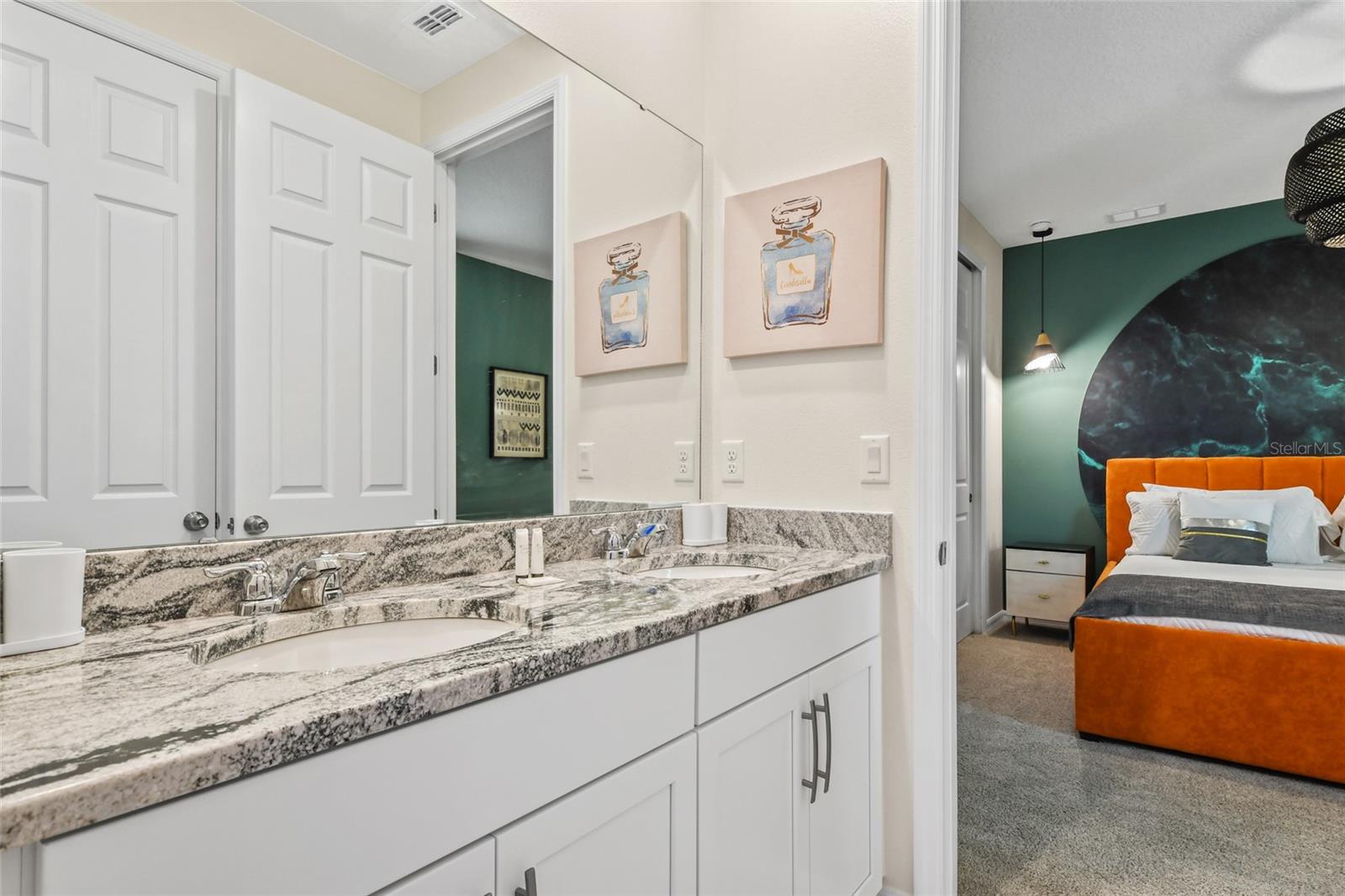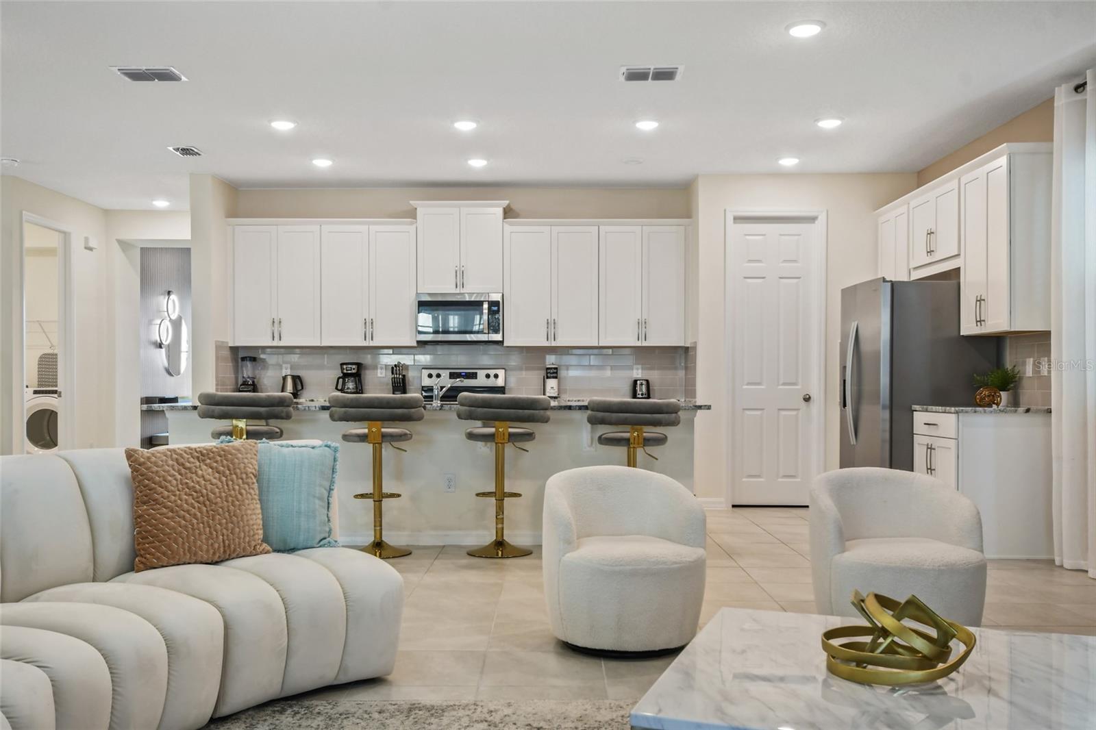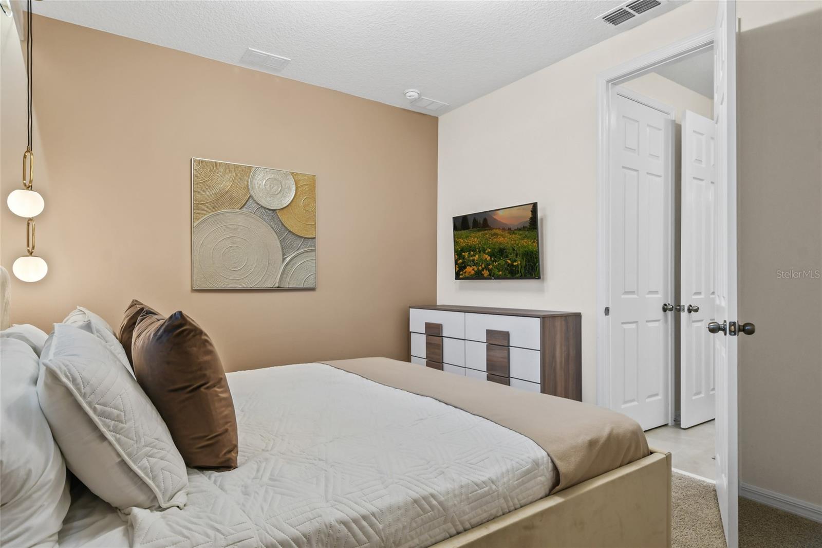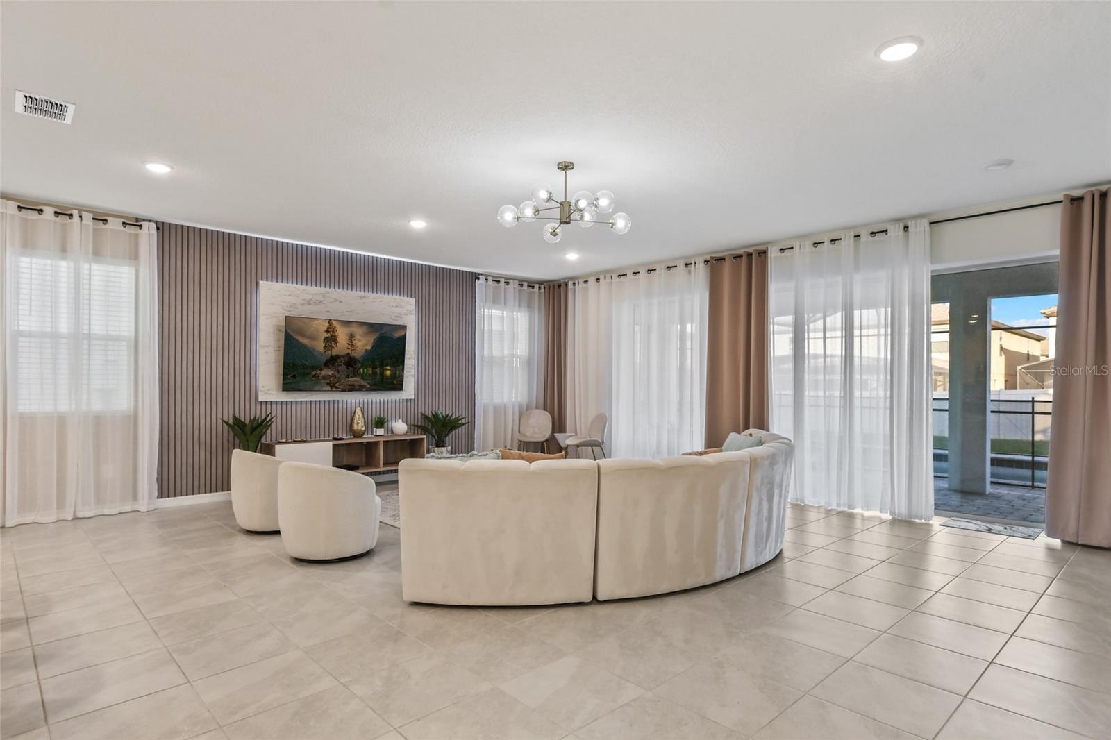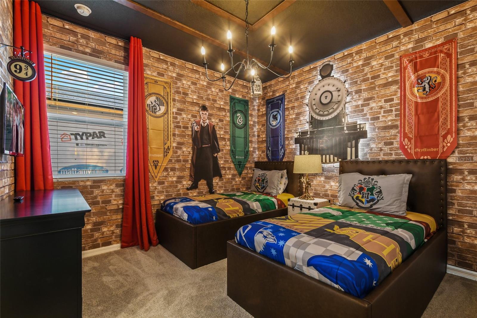 Priced to sell! TURNKEY INCOME PRODUCING SHORT-TERM RENTAL HOME! You are sure to be impressed by this stunning 9-bedroom, 6.5-bathroom property located in the sought-after Solara Resort community. Built in 2022, the home is beautifully decorated with themed and customized furniture, making it popular for rentals with high occupancy rates and daily rate. Upon entry, you're welcomed by a spacious, brightly lit living room with high ceilings and large windows that flood the space with natural light. The open floor plan seamlessly connects the living area to the dining space and kitchen, creating an ideal setting for entertaining. The kitchen boasts modern appliances, granite countertops, and ample storage, with a large island and breakfast bar perfect for morning coffee or interacting with guests while cooking. The primary bedroom with a ocean theme, located on the first floor, includes a walk-in closet and an en-suite bathroom with dual sinks, a soaking tub, and a separate shower. Upstairs, discover eight additional bedrooms, five bathrooms, and a large loft converted into a media room, providing ample space for family and guests. The two-car garage has been transformed into a game room, offering endless entertainment options for guests. Outside, the spacious backyard provides plenty of room for outdoor activities. The house is equipped with solar panels, offering savings on utility bills. Solara Resort features a state-of-the-art clubhouse with a full-service restaurant, ice cream parlor, and coffee bar. Fitness enthusiasts can enjoy the gym, while outdoor lovers can take advantage of the basketball, beach volleyball, and soccer facilities. The zero-entry pool, surrounded by cabanas, a poolside tiki bar, and a splash pad, offers endless recreation options. HOA fees include Basic Cable & Internet, Landscaping Maintenance, Valet Trash Service, and Common Area Maintenance. Located approximately 8 miles from Walt Disney World and a short drive to Universal, SeaWorld, and International Drive, Solara Resort offers convenience and luxury for vacation home or investment property buyers. Don't miss this opportunity!
