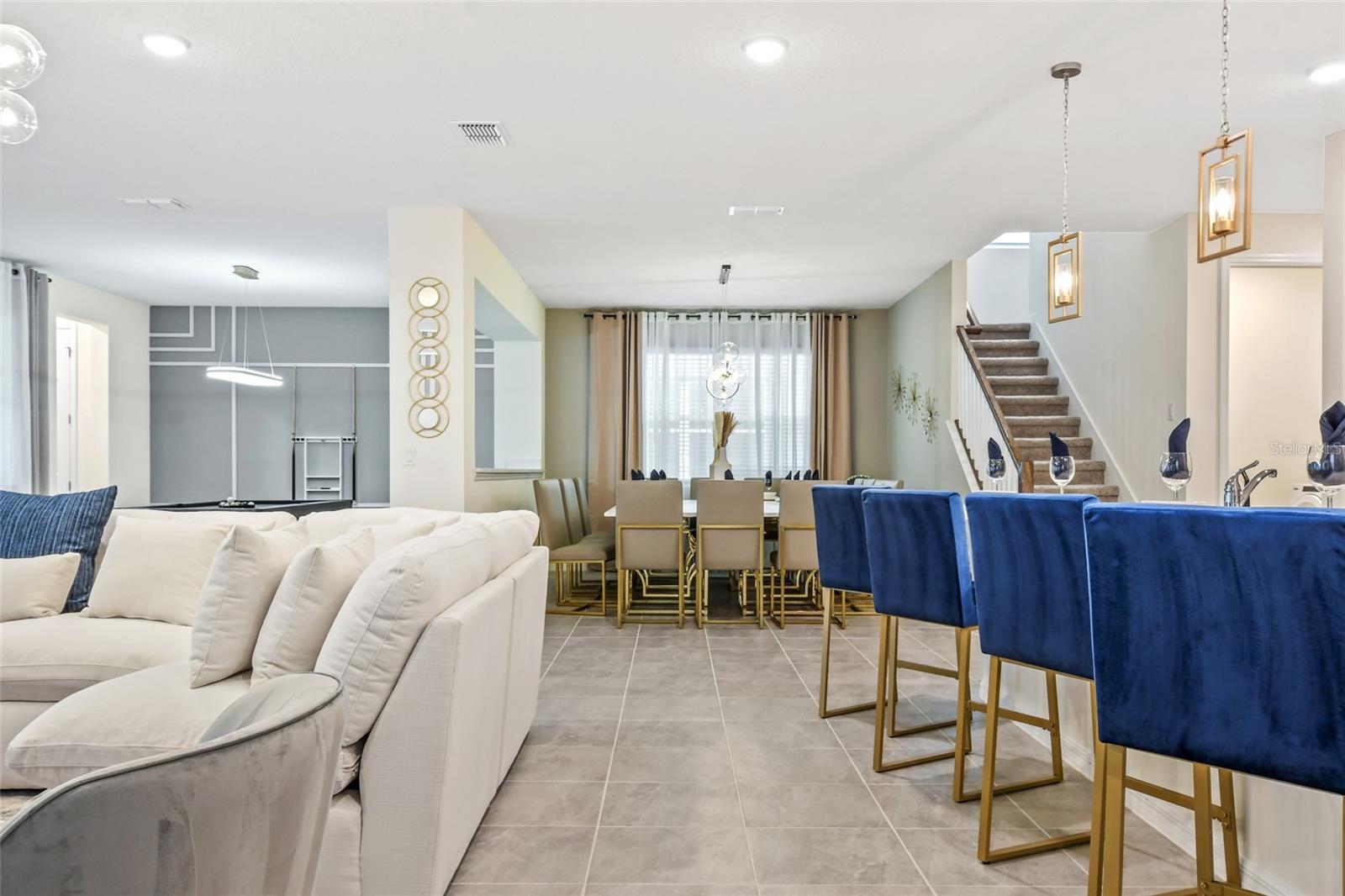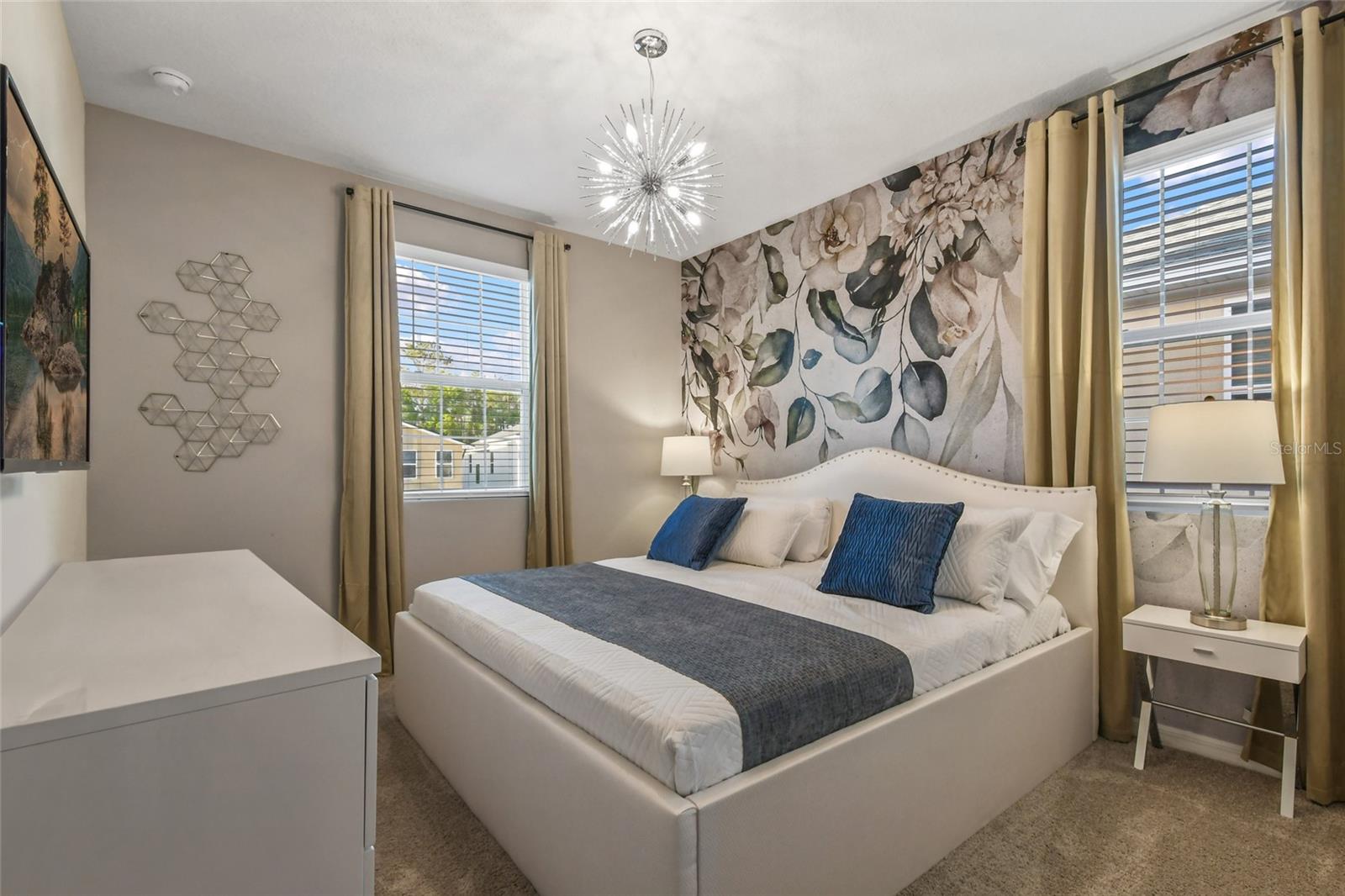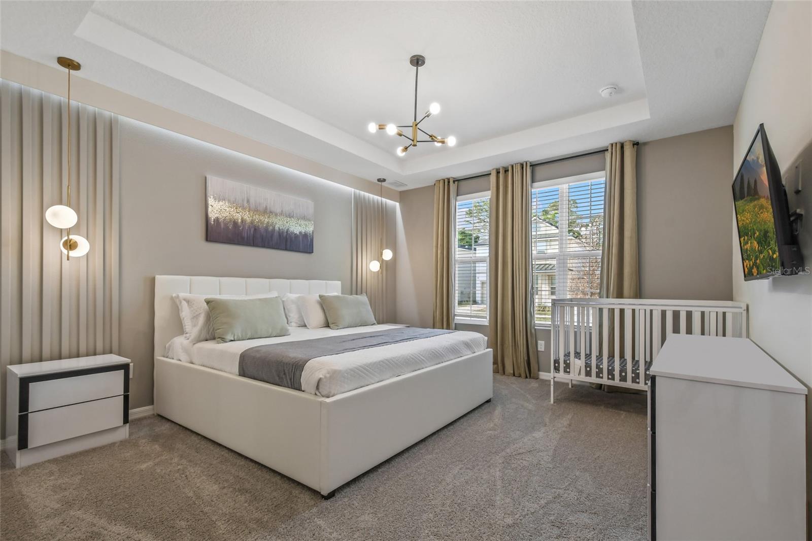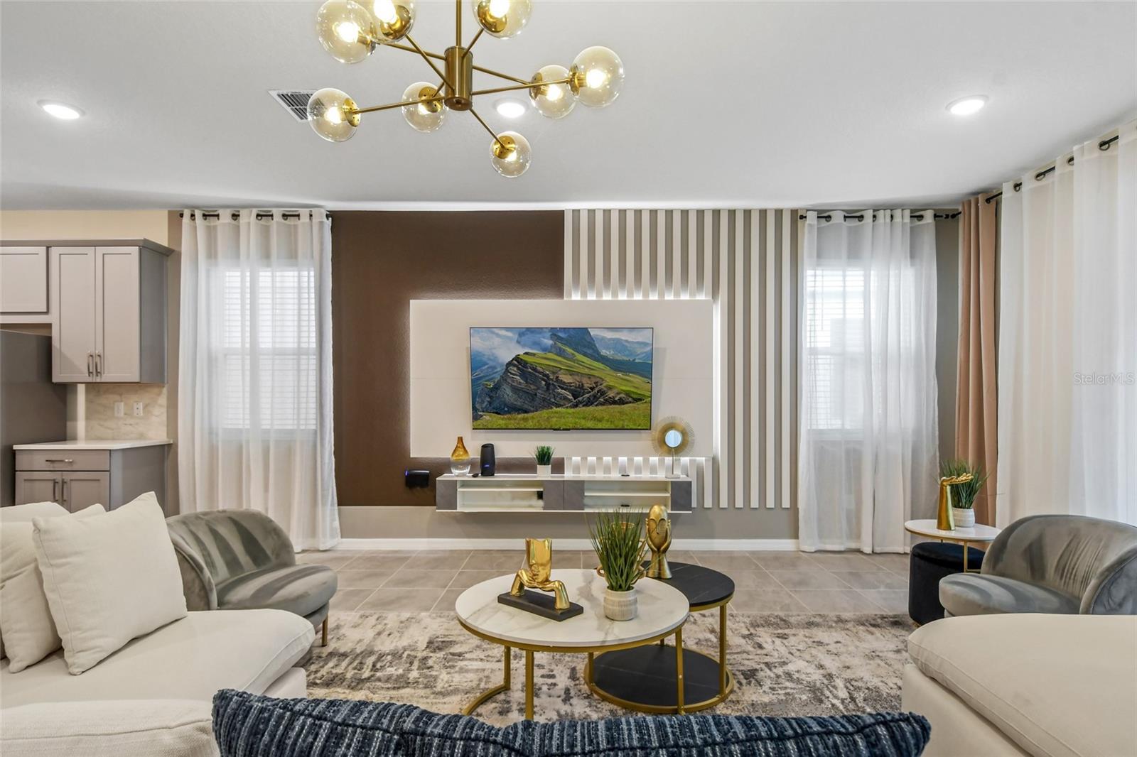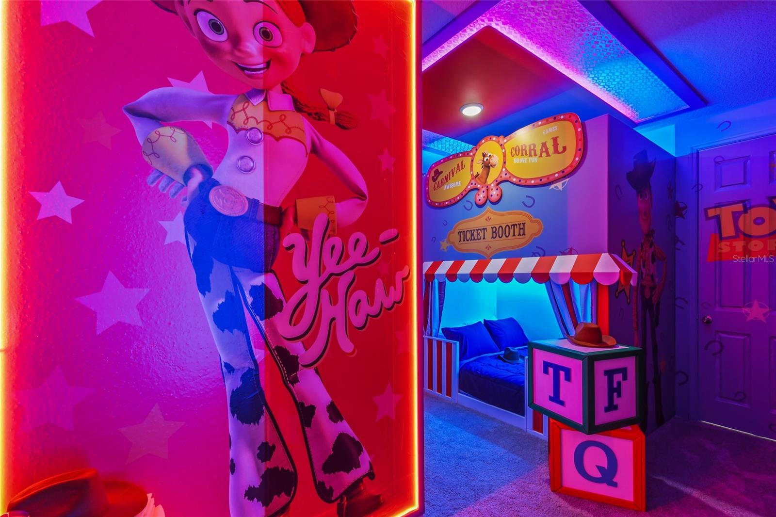 PRICED TO SELL! TURNKEY INCOME PRODUCING SHORT-TERM RENTAL HOME! This property generated approximately $80k in gross rental income so far in 2024 with more future bookings, presenting a lucrative opportunity for investors looking to capitalize on the thriving rental market in the area! Welcome to the resort-style paradise at Solara Resort, where luxury living and vacationing blend seamlessly. Nestled approximately 8 miles from Walt Disney World and within a short drive to Universal, SeaWorld, and the popular I-Drive, this gated resort community is your gateway to the heart of all the magic Orlando and Central Florida has to offer. This stunning 9-bedroom, 6.5-bathroom property, built in 2022, is tastefully decorated and features a private pool. The interior boasts tile flooring with an elegant, resort-like charm and upgraded lighting. Every corner of the house is designed with meticulous attention to detail, making it feel like a page from a designer magazine brought to life. The home features two primary suites, one on each floor, offering flexibility and privacy for every member of your party. The first floor includes an additional guest bedroom suite, while the second floor, with a few themed bedrooms, transports you to different worlds of wonder. The kitchen's stunning granite countertops and gleaming stainless steel appliances are a chef's dream. Upstairs, you'll find more bedrooms and a large loft turned into a media room, providing plenty of space for family and guests. Additionally, the two-car garage has been converted into a game room, offering endless fun for guests. Open the sliders, and you'll find a covered patio and a screen-enclosed private heated pool, providing a serene backdrop for your relaxation. Solara Resort's amenities seem endless: a heated grand pool, surf simulator, a fantastic bar and grill, a coffee bar, and a sundries store. For those who enjoy exercise and the outdoors, the fitness center and outdoor fitness lawn allow you to keep up your daily exercise routines. Other exciting amenities include a sand volleyball court, soccer field, full-sized basketball court, indoor and outdoor lounges, workstations, a tween/teen hangout center, and a playground. And let's not forget the pool bar and poolside cabanas. Your dream vacation home awaits at Solara Resort. Here, you'll find all the elements of a perfect getaway: luxury, adventure, and a home that embraces you with warmth and style.