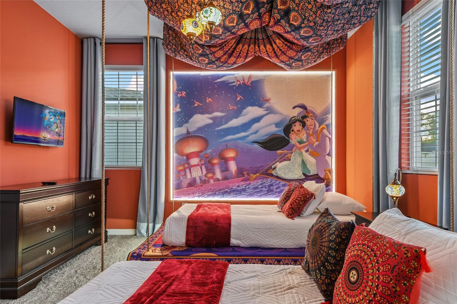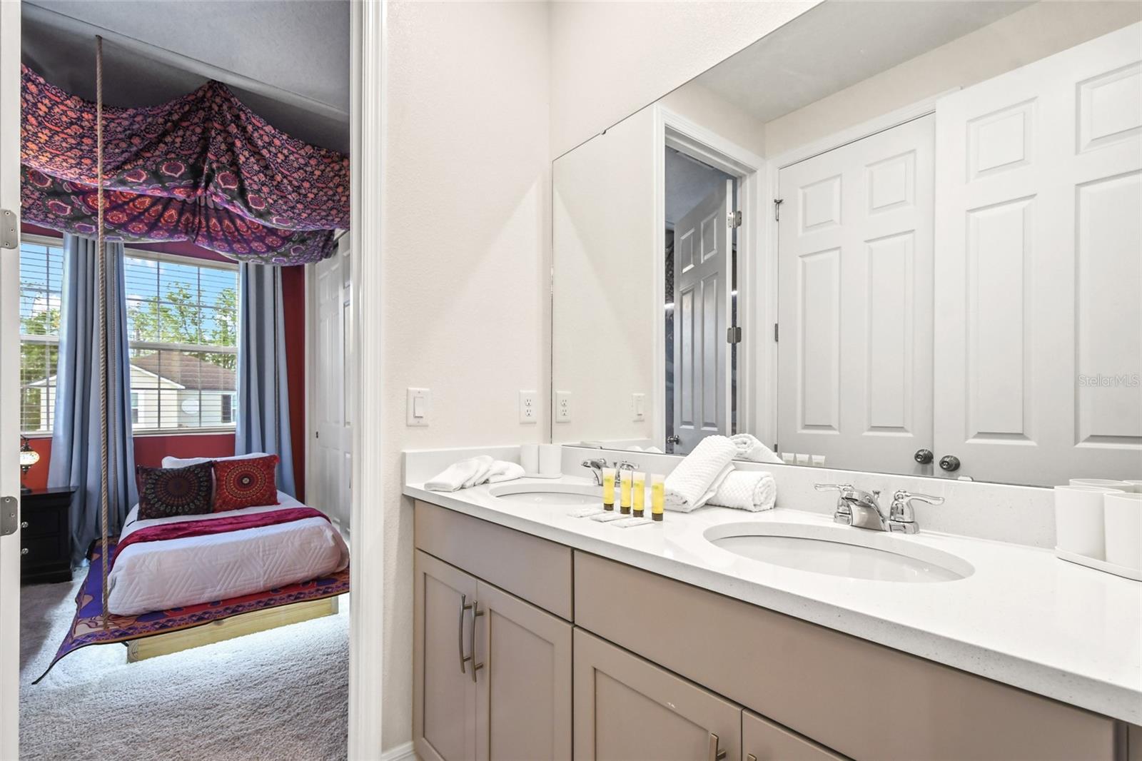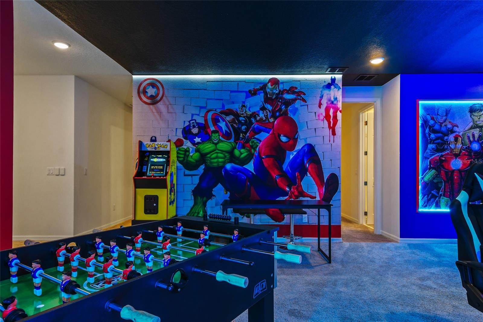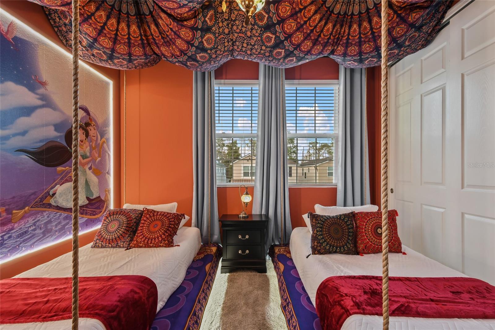 PRICED TO SELL! TURNKEY INCOME PRODUCING SHORT-TERM RENTAL HOME! This property generated approximately $80k in gross rental income so far in 2024 with more future bookings, presenting a lucrative opportunity for investors looking to capitalize on the thriving rental market in the area! Welcome to the resort-style paradise at Solara Resort, where luxury living and vacationing blend seamlessly. Nestled approximately 8 miles from Walt Disney World and within a short drive to Universal, SeaWorld, and the popular I-Drive, this gated resort community is your gateway to the heart of all the magic Orlando and Central Florida has to offer. This stunning 9-bedroom, 6.5-bathroom property, built in 2022, is tastefully decorated and features a private pool. The interior boasts tile flooring with an elegant, resort-like charm and upgraded lighting. Every corner of the house is designed with meticulous attention to detail, making it feel like a page from a designer magazine brought to life. The home features two primary suites, one on each floor, offering flexibility and privacy for every member of your party. The first floor includes an additional guest bedroom suite, while the second floor, with a few themed bedrooms, transports you to different worlds of wonder. The kitchen's stunning granite countertops and gleaming stainless steel appliances are a chef's dream. Upstairs, you'll find more bedrooms and a large loft turned into a media room, providing plenty of space for family and guests. Additionally, the two-car garage has been converted into a game room, offering endless fun for guests. Open the sliders, and you'll find a covered patio and a screen-enclosed private heated pool, providing a serene backdrop for your relaxation. Solara Resort's amenities seem endless: a heated grand pool, surf simulator, a fantastic bar and grill, a coffee bar, and a sundries store. For those who enjoy exercise and the outdoors, the fitness center and outdoor fitness lawn allow you to keep up your daily exercise routines. Other exciting amenities include a sand volleyball court, soccer field, full-sized basketball court, indoor and outdoor lounges, workstations, a tween/teen hangout center, and a playground. And let's not forget the pool bar and poolside cabanas. Your dream vacation home awaits at Solara Resort. Here, you'll find all the elements of a perfect getaway: luxury, adventure, and a home that embraces you with warmth and style.