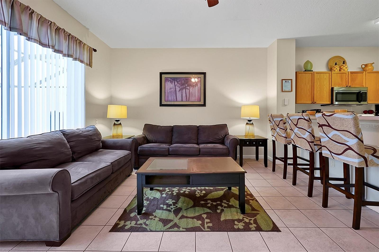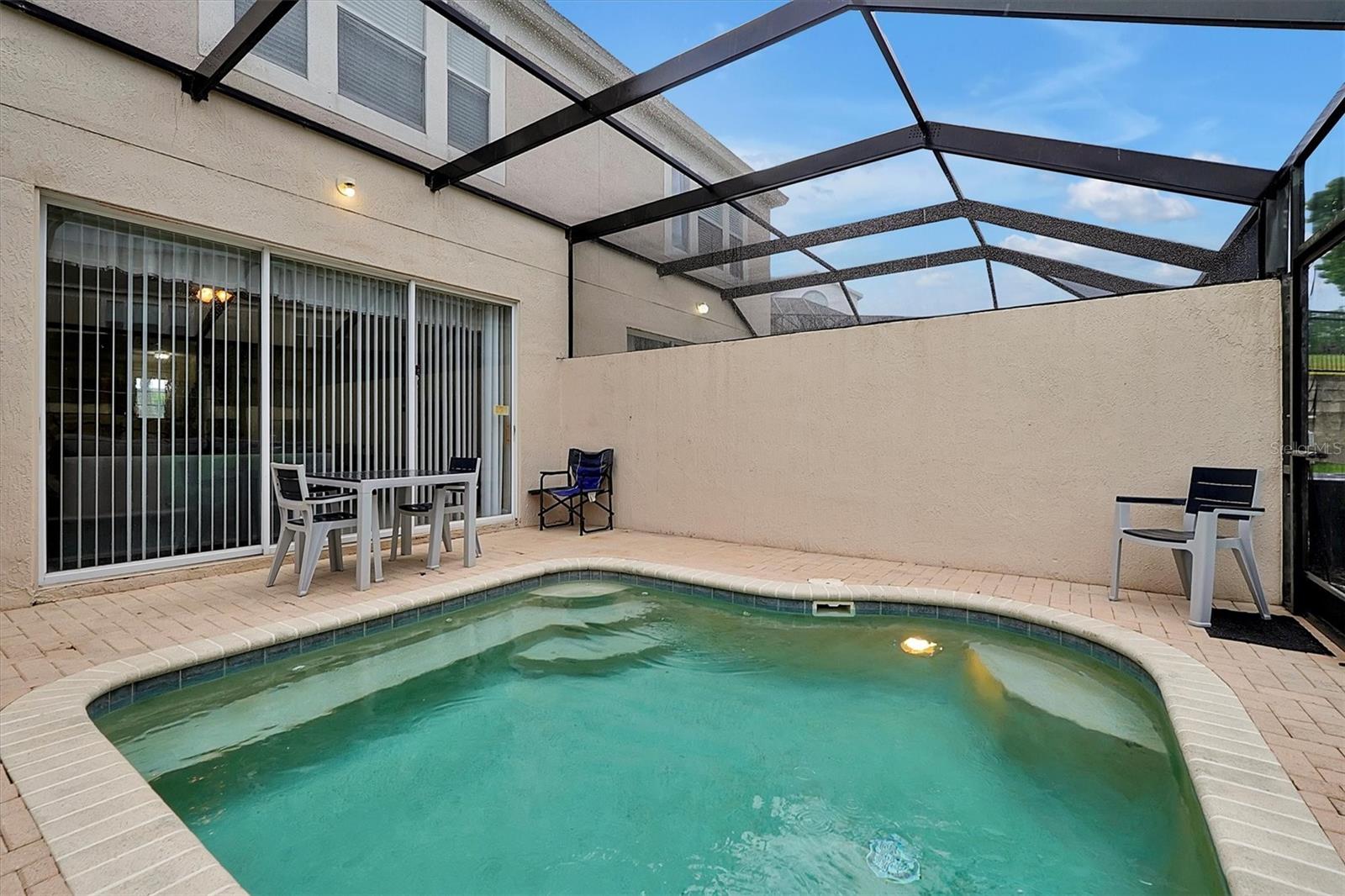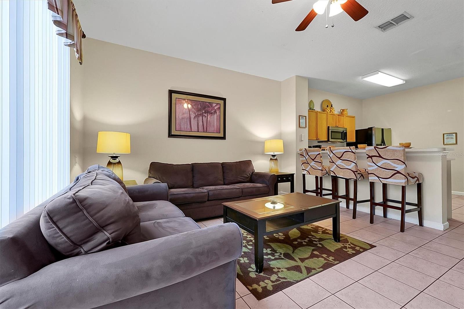 Motivated Seller, PRICE DROP Turnkey 3 bedroom 3 bath pool townhome in the Windsor Palms Resort. Resort amenities includes Pool, Clubhouse, Fitness center and Tennis courts. Located close to Theme Parks and Attractions, retail and restaurants. Short Term vacation home rental popular with families. 24 Hour guard gated community and located on a dead end street so no constant traffic.