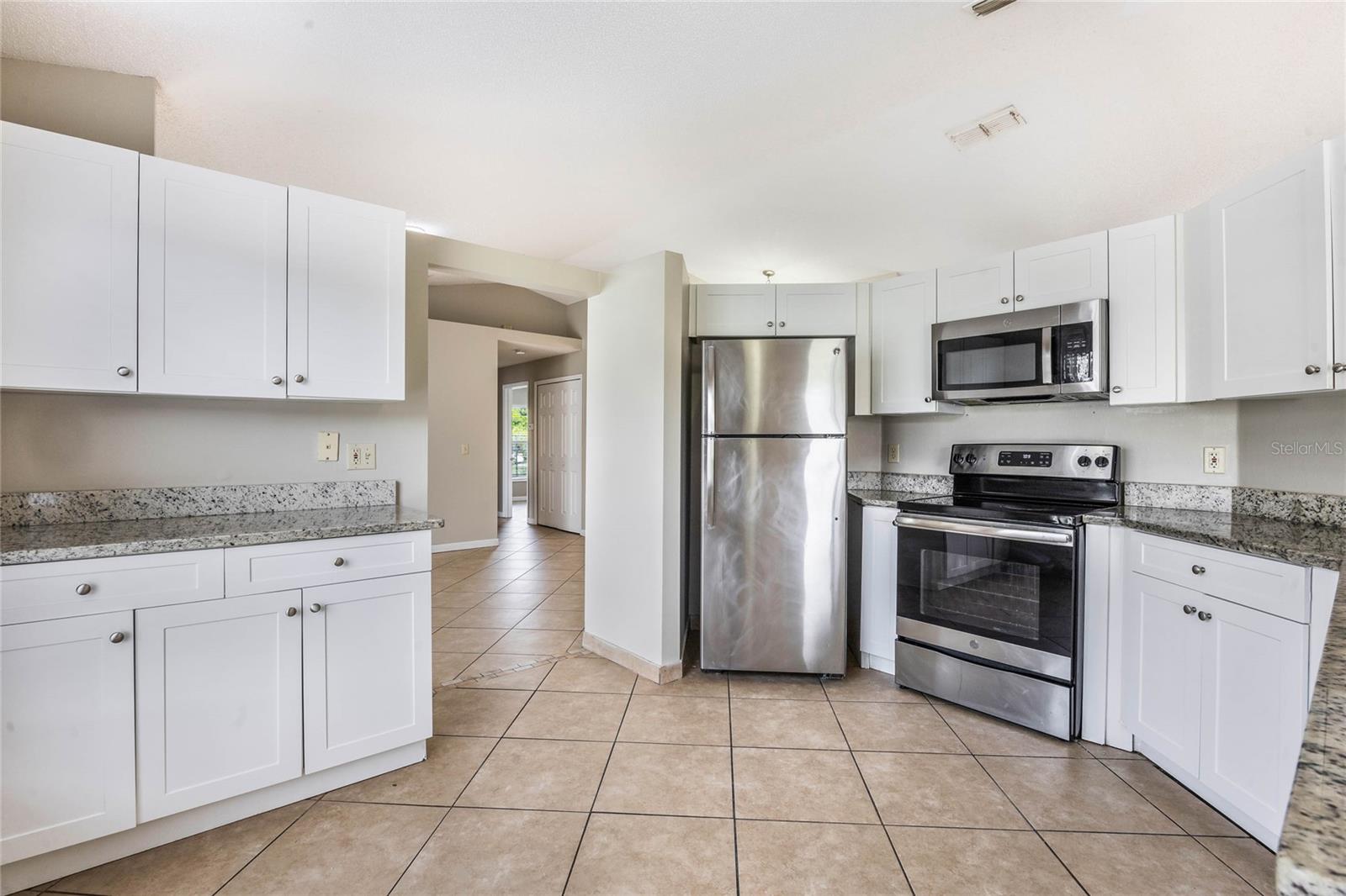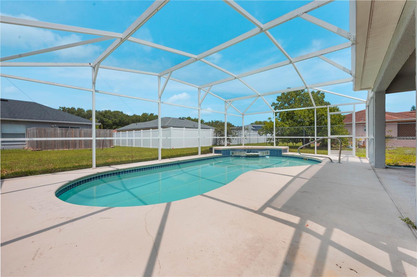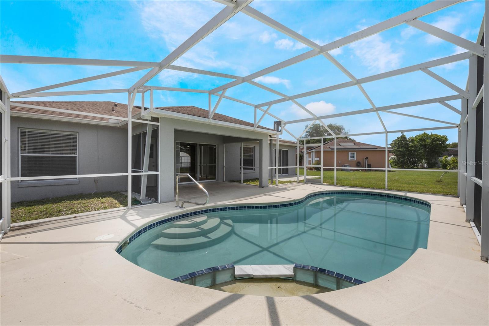 Welcome to your new home in the highly sought-after community of The Oaks at Cypress Woods! This stunning 3-bedroom, 2-bathroom split plan home boasts over 1600 square feet of beautifully designed living space, all situated on a peaceful cul-de-sac. The modern kitchen is a chef's dream, featuring shaker cabinets, granite countertops, and stainless steel appliances, perfect for cooking and entertaining. The guest bathroom has been tastefully updated with a new tub adorned with stylish tiles, a contemporary vanity, and updated lighting. The master suite offers a private retreat with an ensuite bathroom that includes a stand-up shower, updated toilet, and a modern vanity. Throughout the entire home, you'll find sleek, easy-to-maintain tile flooring. Enjoy the Florida lifestyle with your very own screened-in ground pool. Additional updates include a new water heater (2019) and HVAC system (2019), ensuring comfort and efficiency. Centrally located in Poinciana, this home is walking distance to the hospital and a brand-new shopping center currently under construction. Despite its central location, the home is tucked away from busy roads, providing a quiet and serene living environment in a friendly cul-de-sac. Don’t miss the opportunity to own this beautiful home in The Oaks at Cypress Woods! Schedule a showing today and experience the perfect blend of convenience, comfort, and modern living.