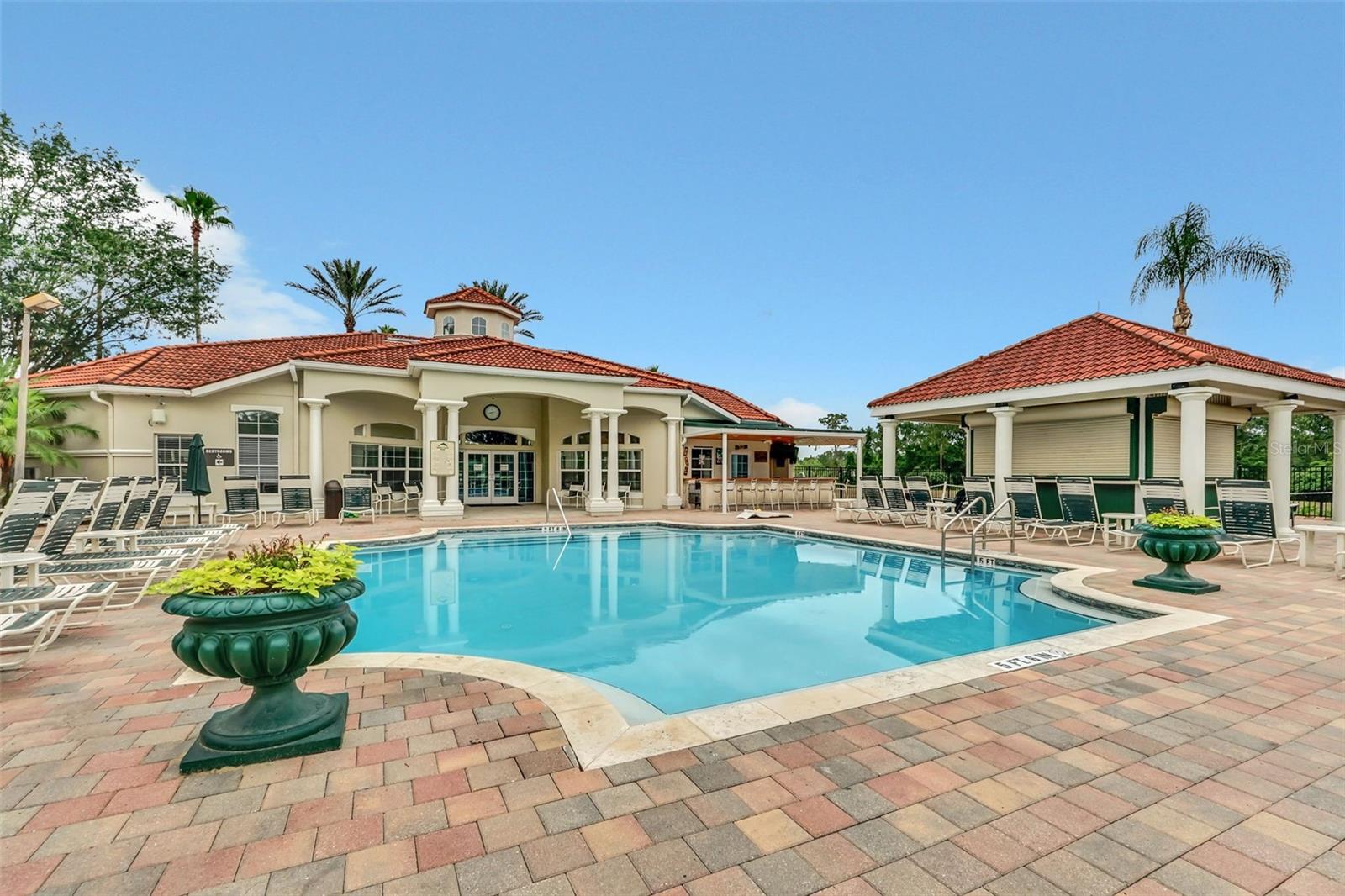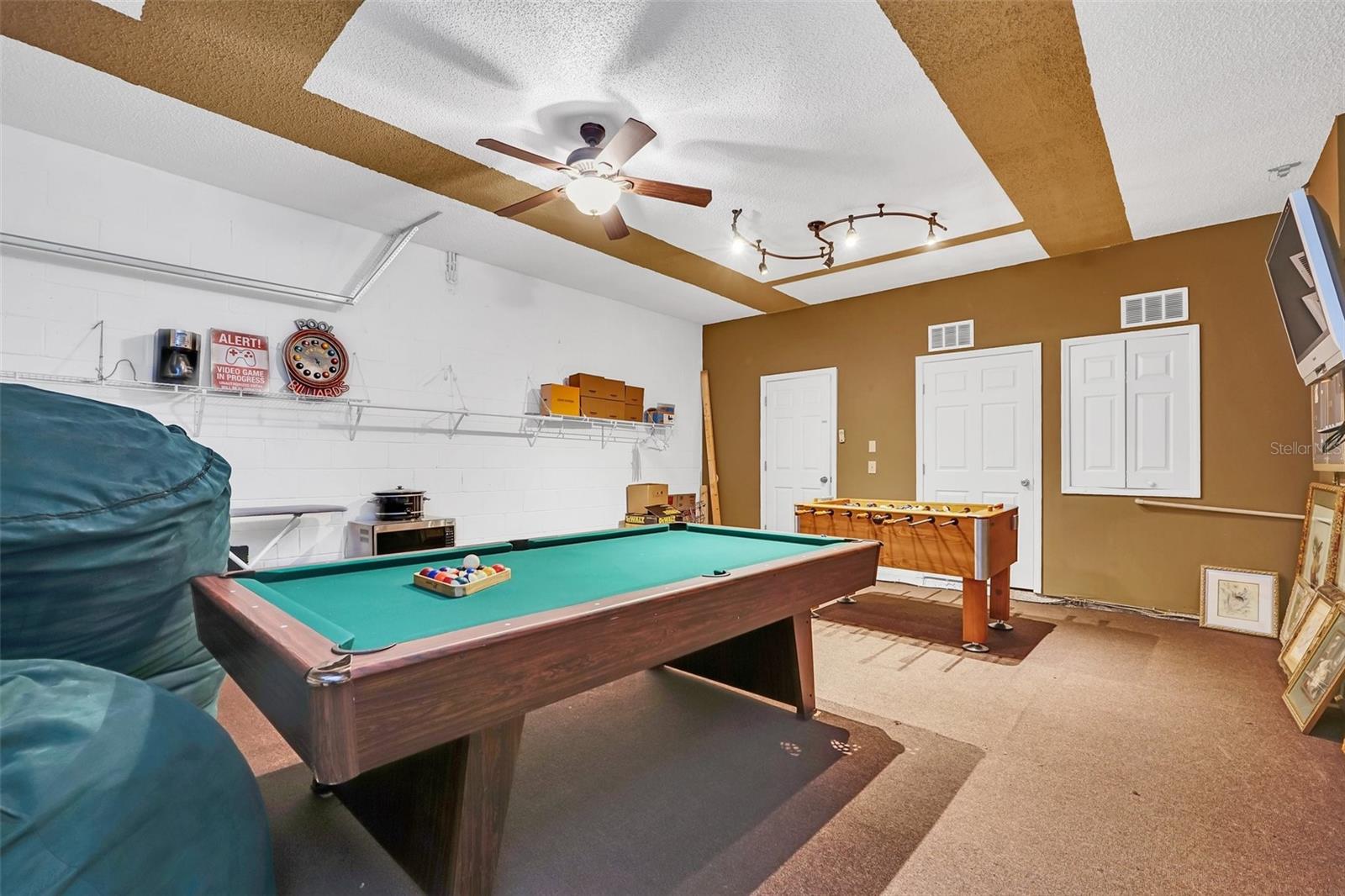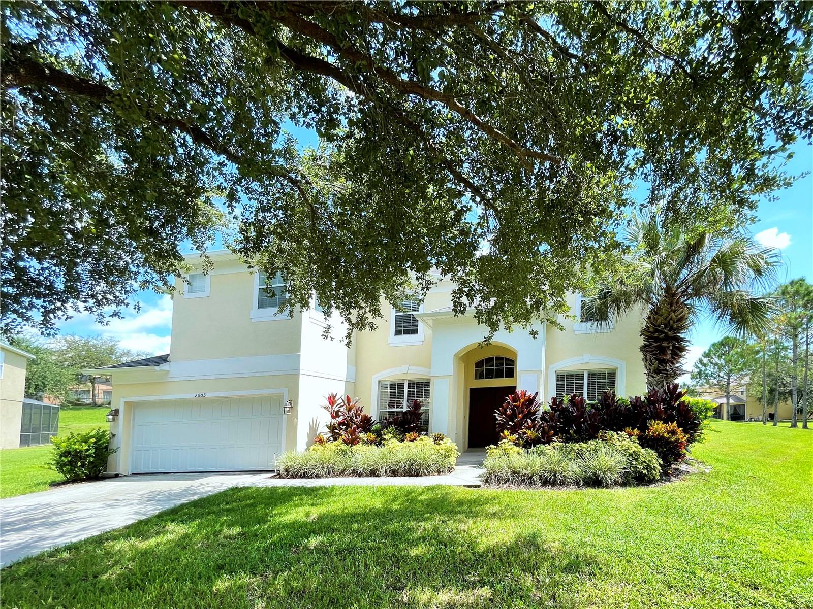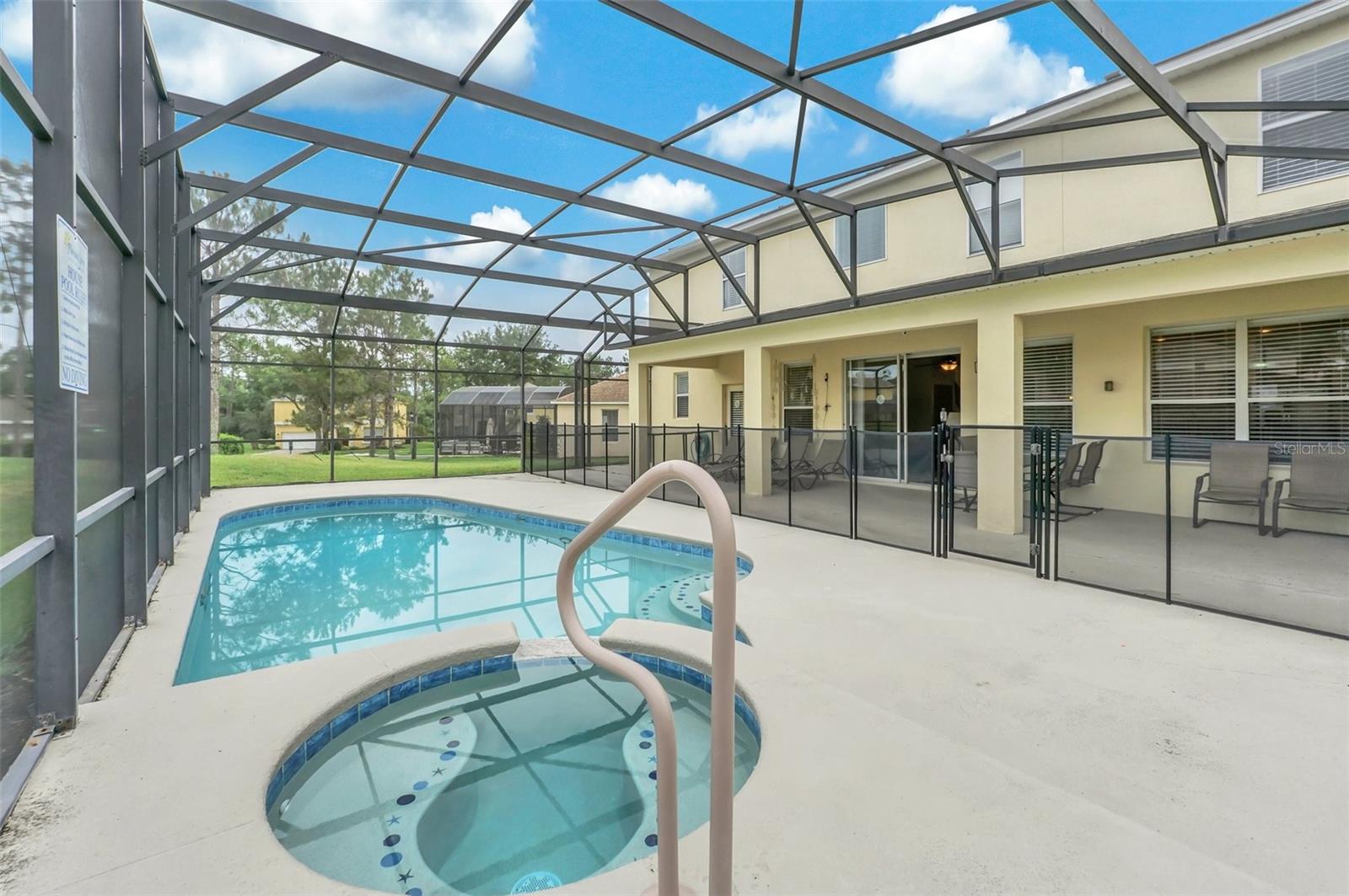 This beautiful 7-bedroom, 6-bathroom home, with an office and 2 master bedrooms, is located in the gated community of Emerald Island Resort. The home features a new roof (2018), two A/C units replaced in 2017 and 2018, a water heater replaced in 2020, and a pool heater replaced in 2022. The pool was resurfaced in 2018, and there is a fully paid solar system for the pool and spa. Upon entering, you'll find a dining room with a tray ceiling, and an office (media center/home theater) area currently used as a storage room. The living room is filled with natural light. The spacious kitchen boasts granite countertops and stainless-steel appliances, with a large peninsula countertop that offers plenty of bar seating and opens into the living room. Downstairs, there is a bedroom and a full bathroom conveniently located near the pool deck, perfect as a pool bath. Upstairs, to the right, you'll find a full bedroom with an ensuite bathroom, and the large master bedroom with a walk-in closet. The master bathroom features separate vanities, a garden tub, and a walk-in shower. To the left, there is another bedroom with an ensuite bathroom, along with a Jack & Jill bedroom and bathroom. At the end of the hall is the second master bedroom, also with a walk-in closet and a bathroom with separate vanities, a garden tub, and a walk-in shower. The two-car garage has been converted into an air-conditioned game room, which can serve as a living room, especially beneficial for short-term rentals. Emerald Island Resort is a gated and guarded community located near Disney. Surrounded by a conservation area, it encompasses over 300 acres, including 11 heavily wooded acres in the center of the community, creating a unique preserve-like environment. Owners and guests can enjoy various facilities within the resort, such as the clubhouse, sauna, fitness center, games arcade, free Wi-Fi around the pool areas, Tiki bar, 2 heated community pools and spas, volleyball, tennis courts, basketball facilities, kiddie play areas, and much more. Make an appointment to see this home today!