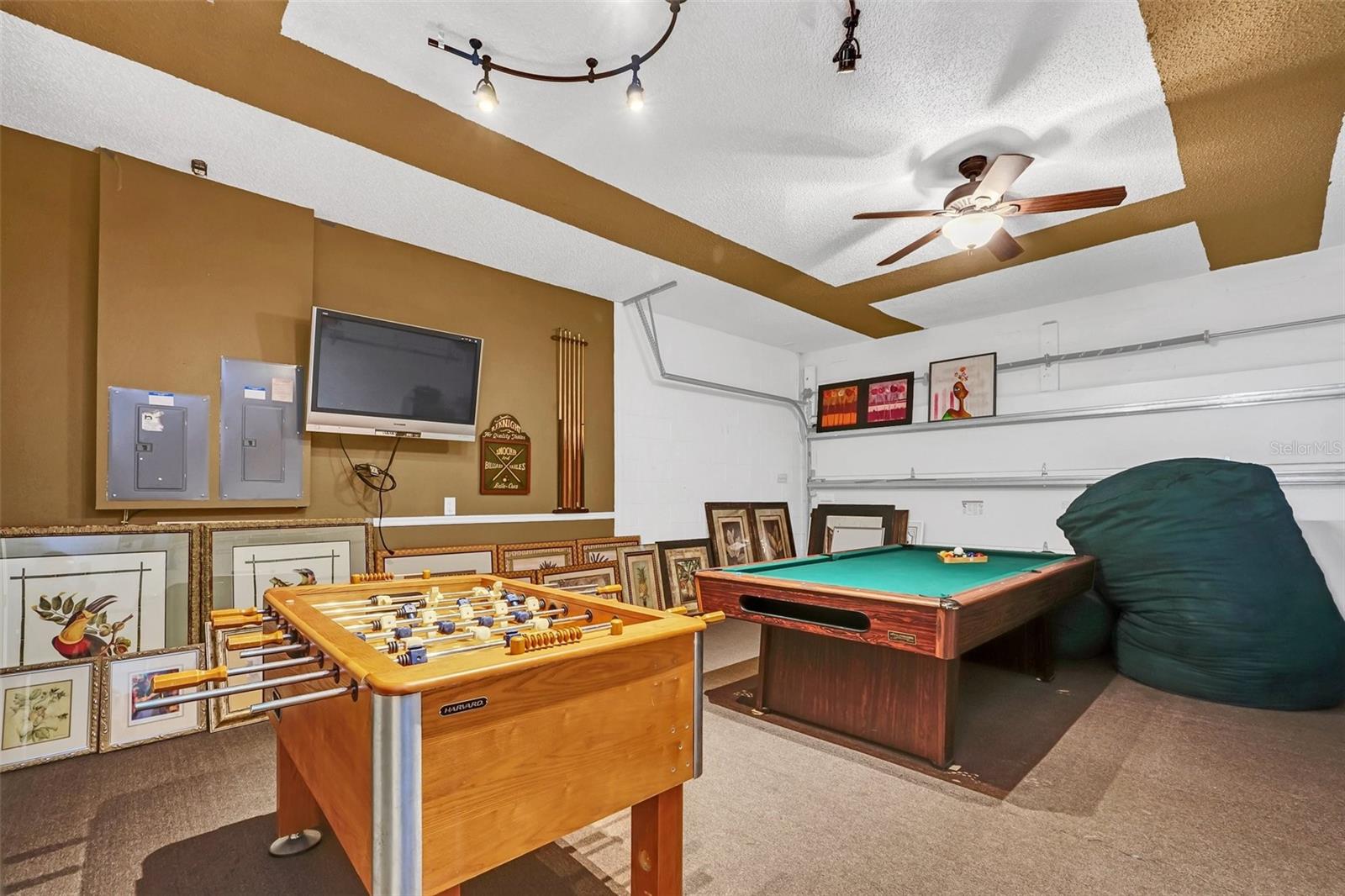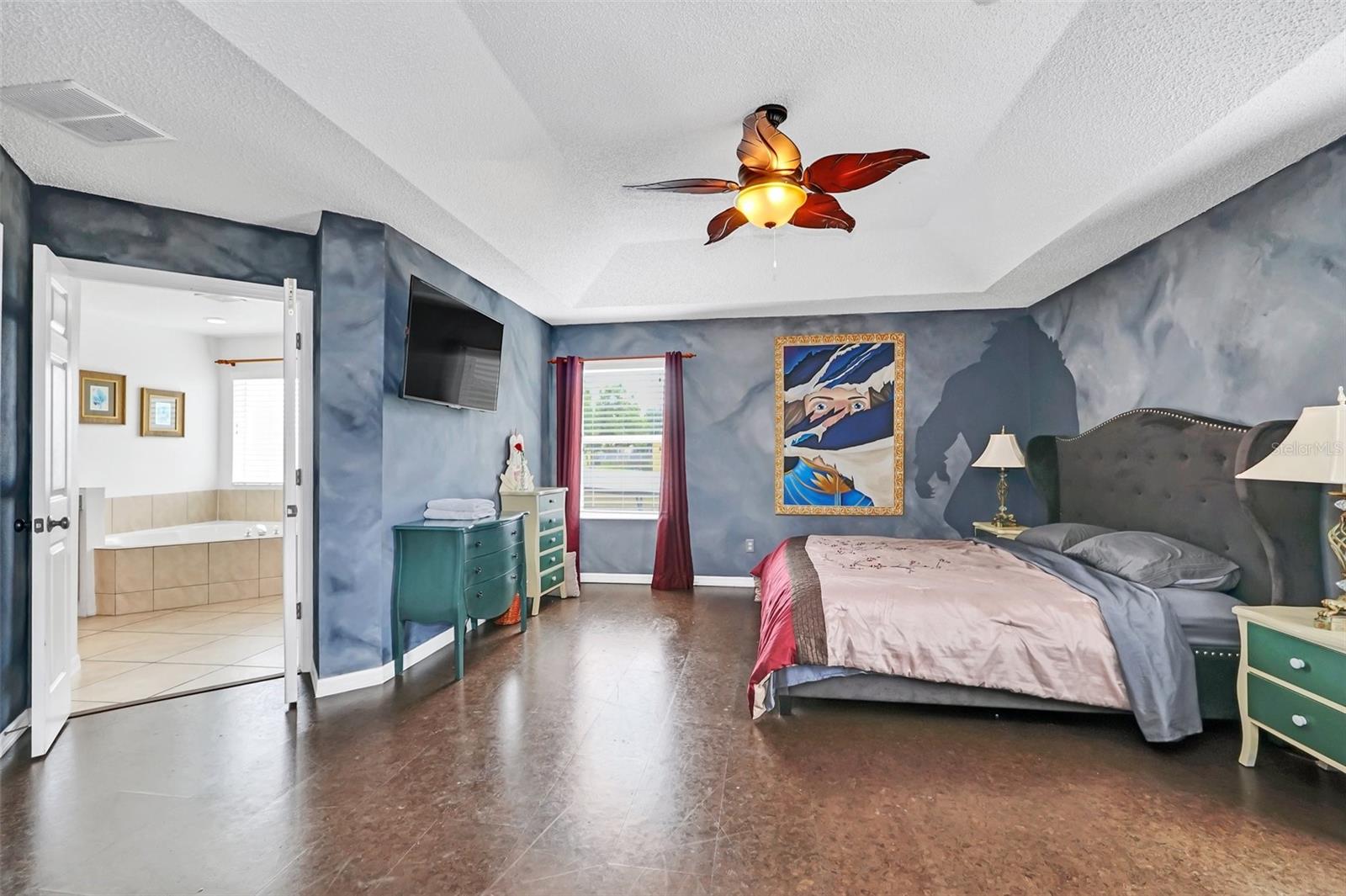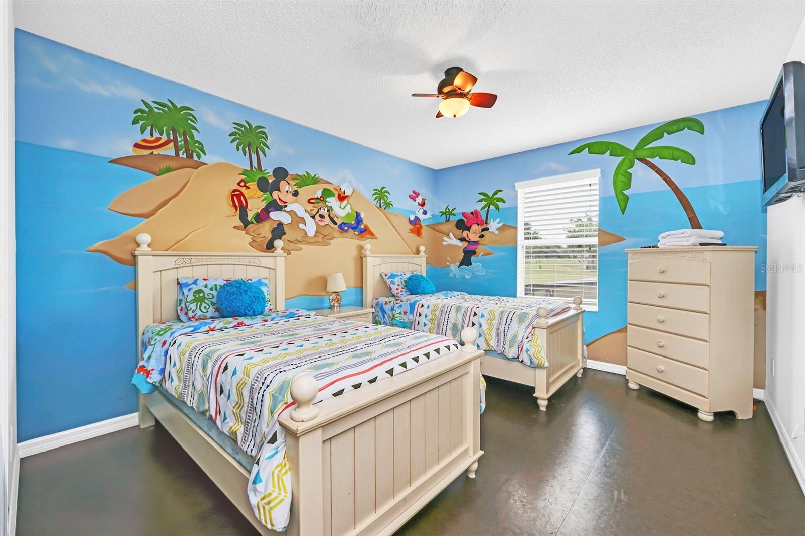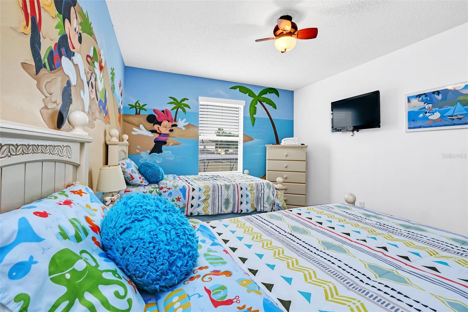 This beautiful 7-bedroom, 6-bathroom home, with an office and 2 master bedrooms, is located in the gated community of Emerald Island Resort. The home features a new roof (2018), two A/C units replaced in 2017 and 2018, a water heater replaced in 2020, and a pool heater replaced in 2022. The pool was resurfaced in 2018, and there is a fully paid solar system for the pool and spa. Upon entering, you'll find a dining room with a tray ceiling, and an office (media center/home theater) area currently used as a storage room. The living room is filled with natural light. The spacious kitchen boasts granite countertops and stainless-steel appliances, with a large peninsula countertop that offers plenty of bar seating and opens into the living room. Downstairs, there is a bedroom and a full bathroom conveniently located near the pool deck, perfect as a pool bath. Upstairs, to the right, you'll find a full bedroom with an ensuite bathroom, and the large master bedroom with a walk-in closet. The master bathroom features separate vanities, a garden tub, and a walk-in shower. To the left, there is another bedroom with an ensuite bathroom, along with a Jack & Jill bedroom and bathroom. At the end of the hall is the second master bedroom, also with a walk-in closet and a bathroom with separate vanities, a garden tub, and a walk-in shower. The two-car garage has been converted into an air-conditioned game room, which can serve as a living room, especially beneficial for short-term rentals. Emerald Island Resort is a gated and guarded community located near Disney. Surrounded by a conservation area, it encompasses over 300 acres, including 11 heavily wooded acres in the center of the community, creating a unique preserve-like environment. Owners and guests can enjoy various facilities within the resort, such as the clubhouse, sauna, fitness center, games arcade, free Wi-Fi around the pool areas, Tiki bar, 2 heated community pools and spas, volleyball, tennis courts, basketball facilities, kiddie play areas, and much more. Make an appointment to see this home today!