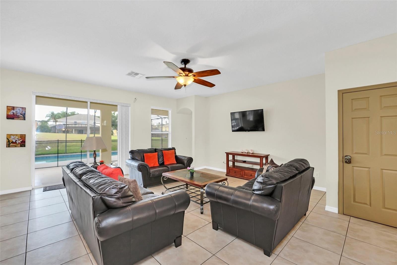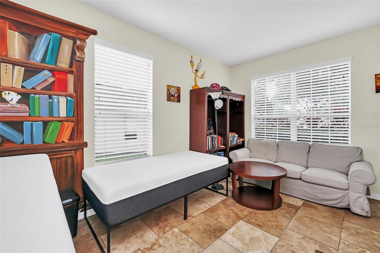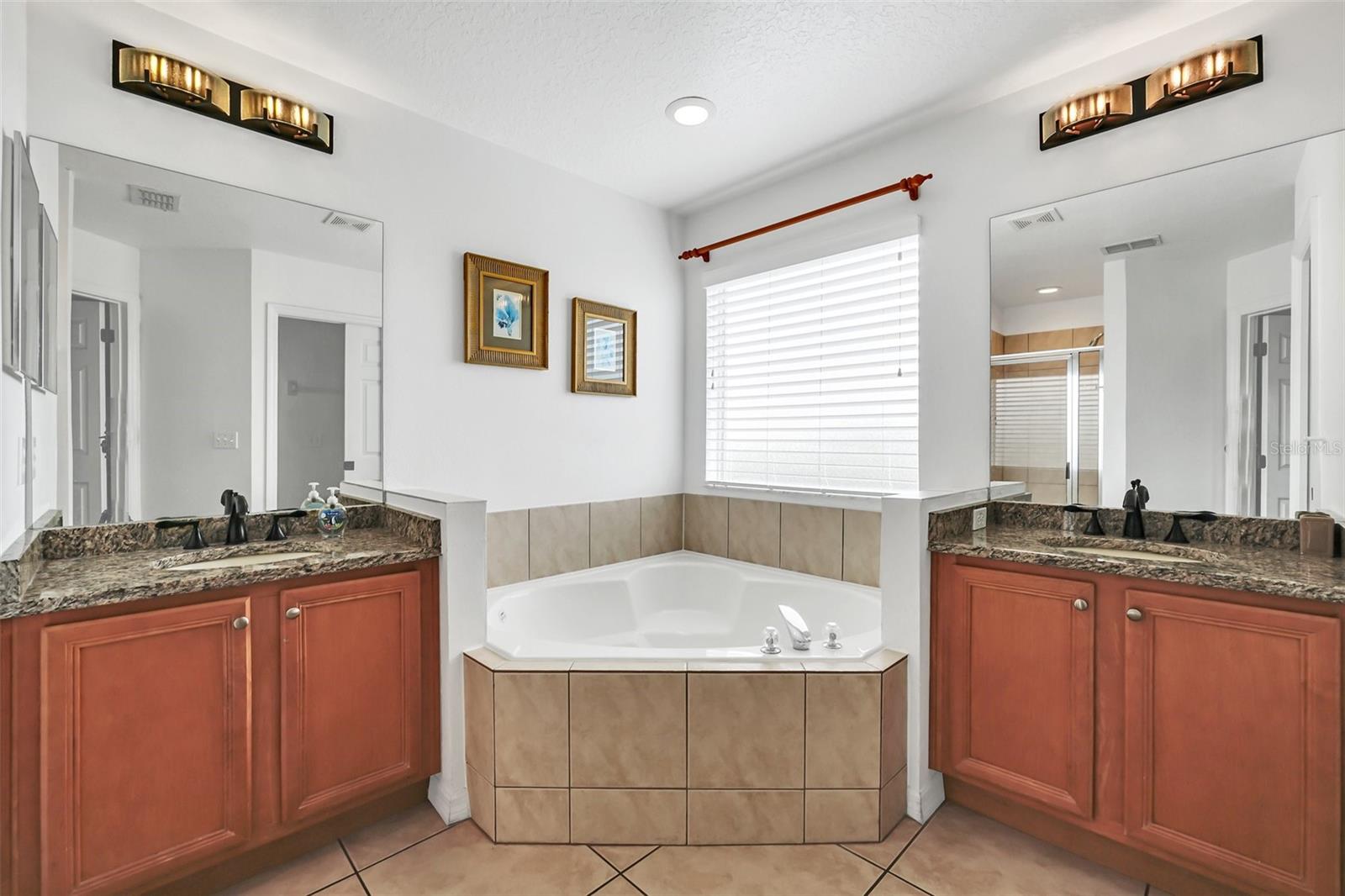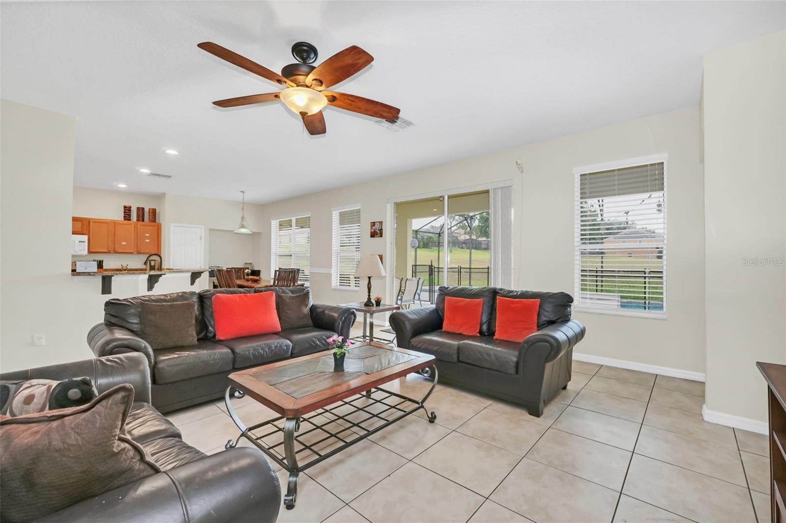 This beautiful 7-bedroom, 6-bathroom home, with an office and 2 master bedrooms, is located in the gated community of Emerald Island Resort. The home features a new roof (2018), two A/C units replaced in 2017 and 2018, a water heater replaced in 2020, and a pool heater replaced in 2022. The pool was resurfaced in 2018, and there is a fully paid solar system for the pool and spa. Upon entering, you'll find a dining room with a tray ceiling, and an office (media center/home theater) area currently used as a storage room. The living room is filled with natural light. The spacious kitchen boasts granite countertops and stainless-steel appliances, with a large peninsula countertop that offers plenty of bar seating and opens into the living room. Downstairs, there is a bedroom and a full bathroom conveniently located near the pool deck, perfect as a pool bath. Upstairs, to the right, you'll find a full bedroom with an ensuite bathroom, and the large master bedroom with a walk-in closet. The master bathroom features separate vanities, a garden tub, and a walk-in shower. To the left, there is another bedroom with an ensuite bathroom, along with a Jack & Jill bedroom and bathroom. At the end of the hall is the second master bedroom, also with a walk-in closet and a bathroom with separate vanities, a garden tub, and a walk-in shower. The two-car garage has been converted into an air-conditioned game room, which can serve as a living room, especially beneficial for short-term rentals. Emerald Island Resort is a gated and guarded community located near Disney. Surrounded by a conservation area, it encompasses over 300 acres, including 11 heavily wooded acres in the center of the community, creating a unique preserve-like environment. Owners and guests can enjoy various facilities within the resort, such as the clubhouse, sauna, fitness center, games arcade, free Wi-Fi around the pool areas, Tiki bar, 2 heated community pools and spas, volleyball, tennis courts, basketball facilities, kiddie play areas, and much more. Make an appointment to see this home today!
