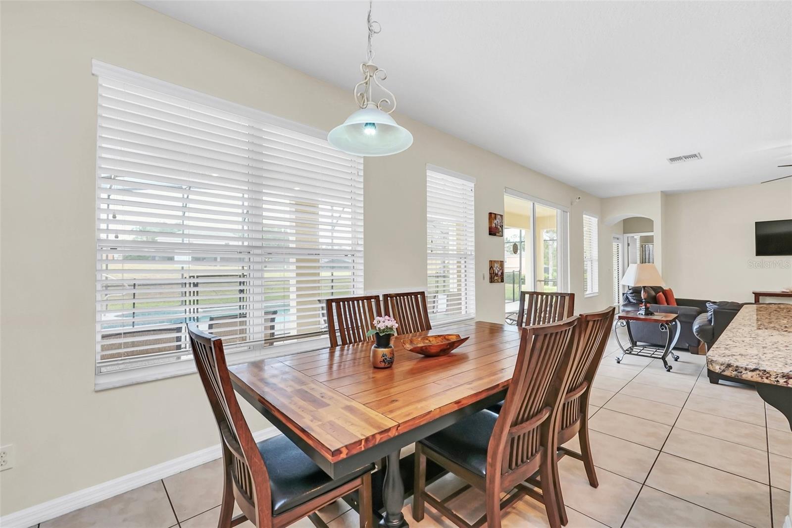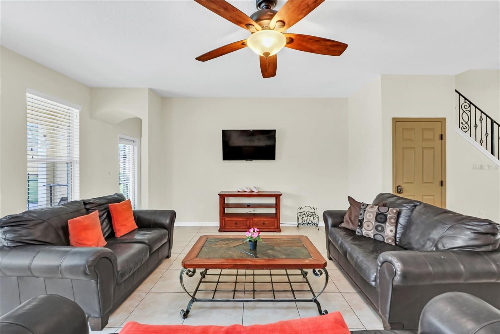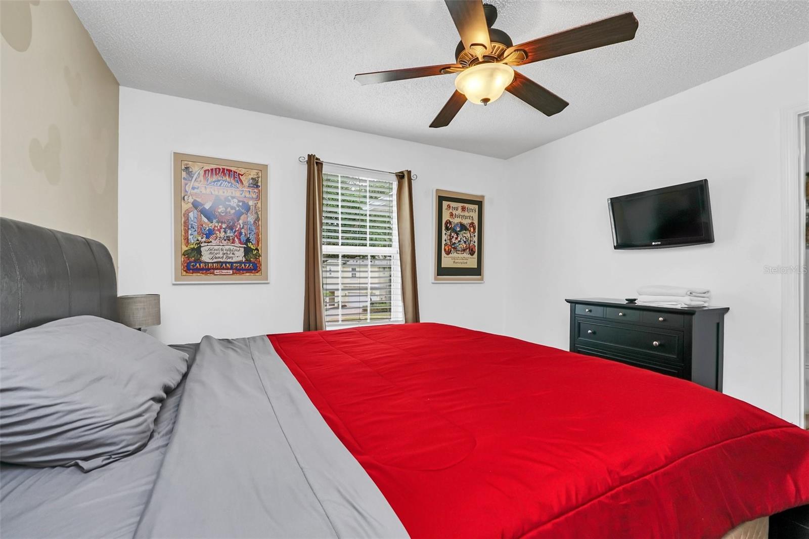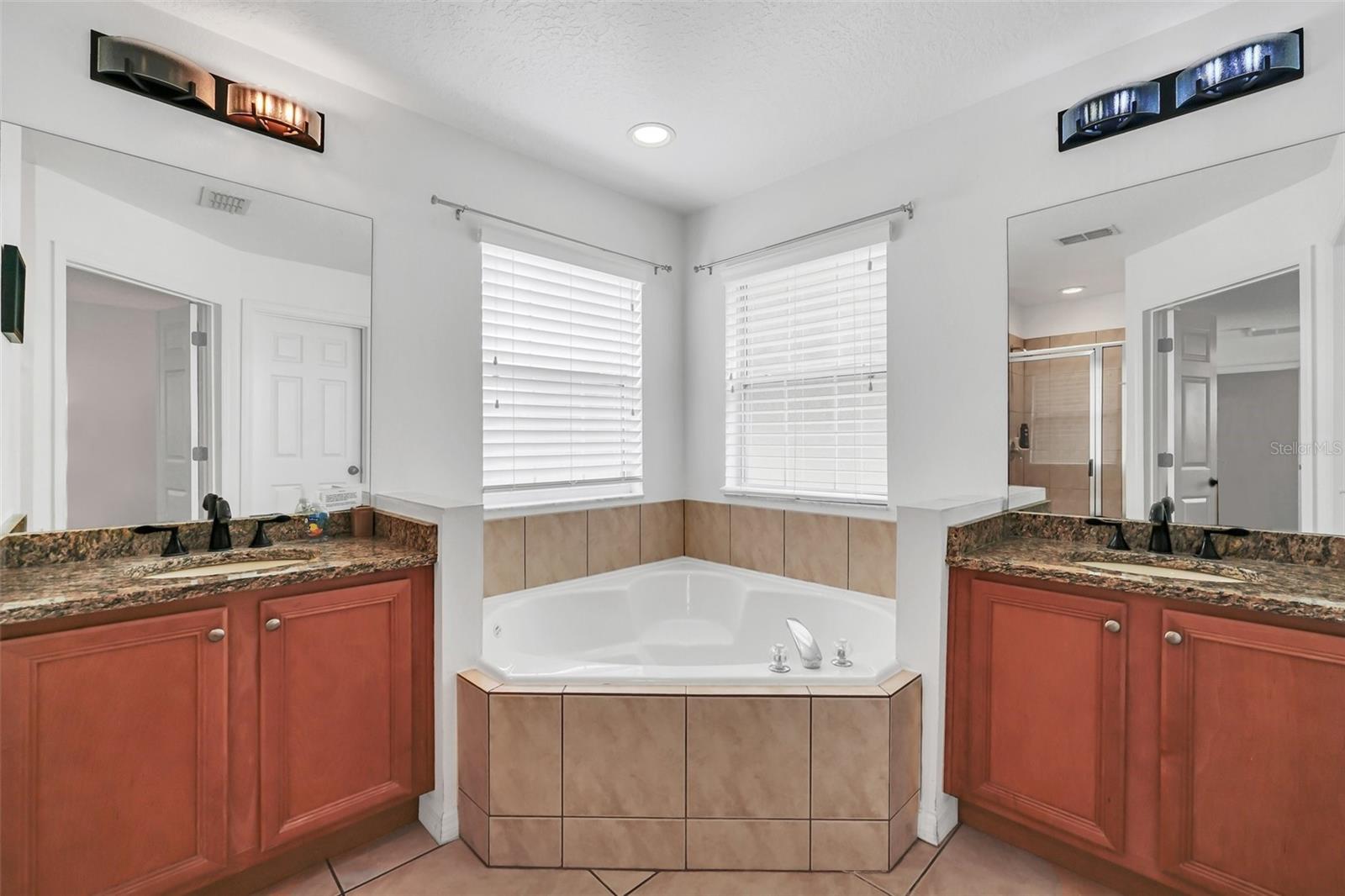 This beautiful 7-bedroom, 6-bathroom home, with an office and 2 master bedrooms, is located in the gated community of Emerald Island Resort. The home features a new roof (2018), two A/C units replaced in 2017 and 2018, a water heater replaced in 2020, and a pool heater replaced in 2022. The pool was resurfaced in 2018, and there is a fully paid solar system for the pool and spa. Upon entering, you'll find a dining room with a tray ceiling, and an office (media center/home theater) area currently used as a storage room. The living room is filled with natural light. The spacious kitchen boasts granite countertops and stainless-steel appliances, with a large peninsula countertop that offers plenty of bar seating and opens into the living room. Downstairs, there is a bedroom and a full bathroom conveniently located near the pool deck, perfect as a pool bath. Upstairs, to the right, you'll find a full bedroom with an ensuite bathroom, and the large master bedroom with a walk-in closet. The master bathroom features separate vanities, a garden tub, and a walk-in shower. To the left, there is another bedroom with an ensuite bathroom, along with a Jack & Jill bedroom and bathroom. At the end of the hall is the second master bedroom, also with a walk-in closet and a bathroom with separate vanities, a garden tub, and a walk-in shower. The two-car garage has been converted into an air-conditioned game room, which can serve as a living room, especially beneficial for short-term rentals. Emerald Island Resort is a gated and guarded community located near Disney. Surrounded by a conservation area, it encompasses over 300 acres, including 11 heavily wooded acres in the center of the community, creating a unique preserve-like environment. Owners and guests can enjoy various facilities within the resort, such as the clubhouse, sauna, fitness center, games arcade, free Wi-Fi around the pool areas, Tiki bar, 2 heated community pools and spas, volleyball, tennis courts, basketball facilities, kiddie play areas, and much more. Make an appointment to see this home today!