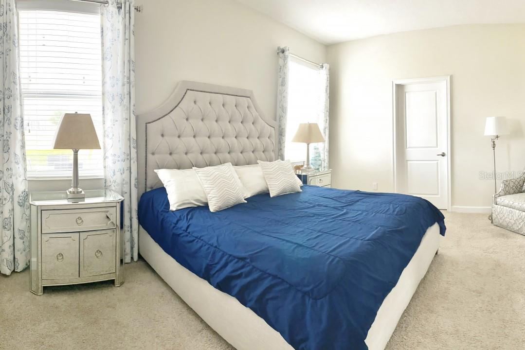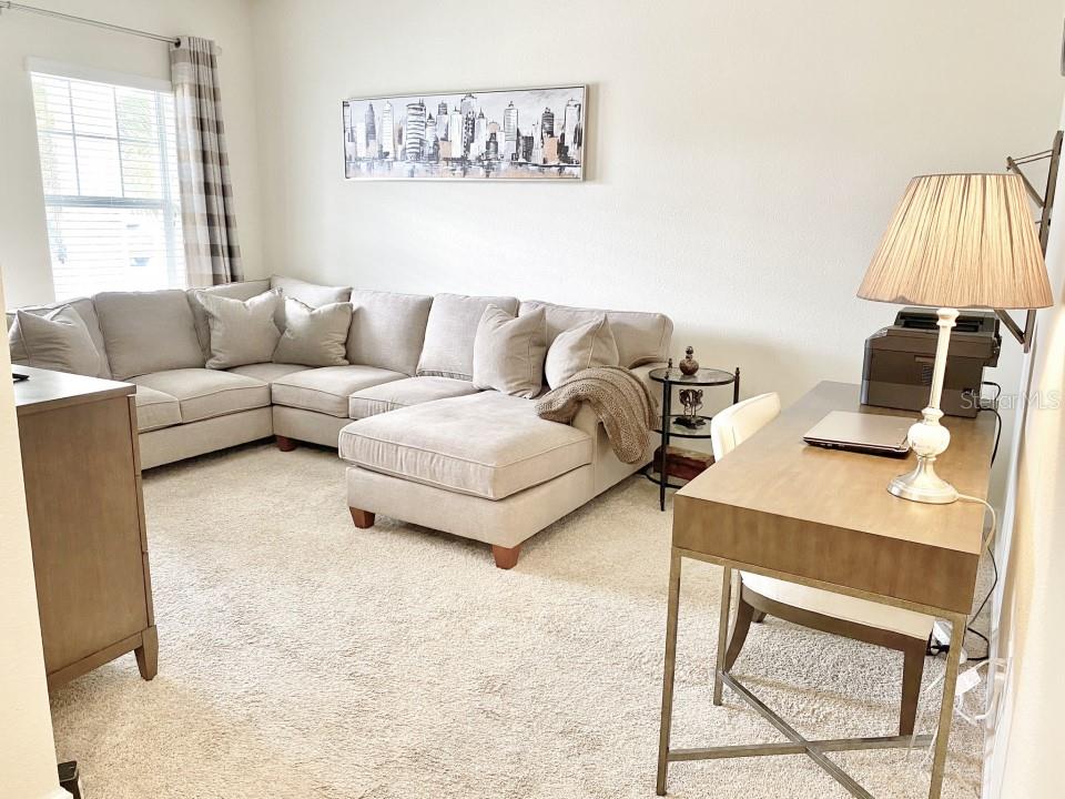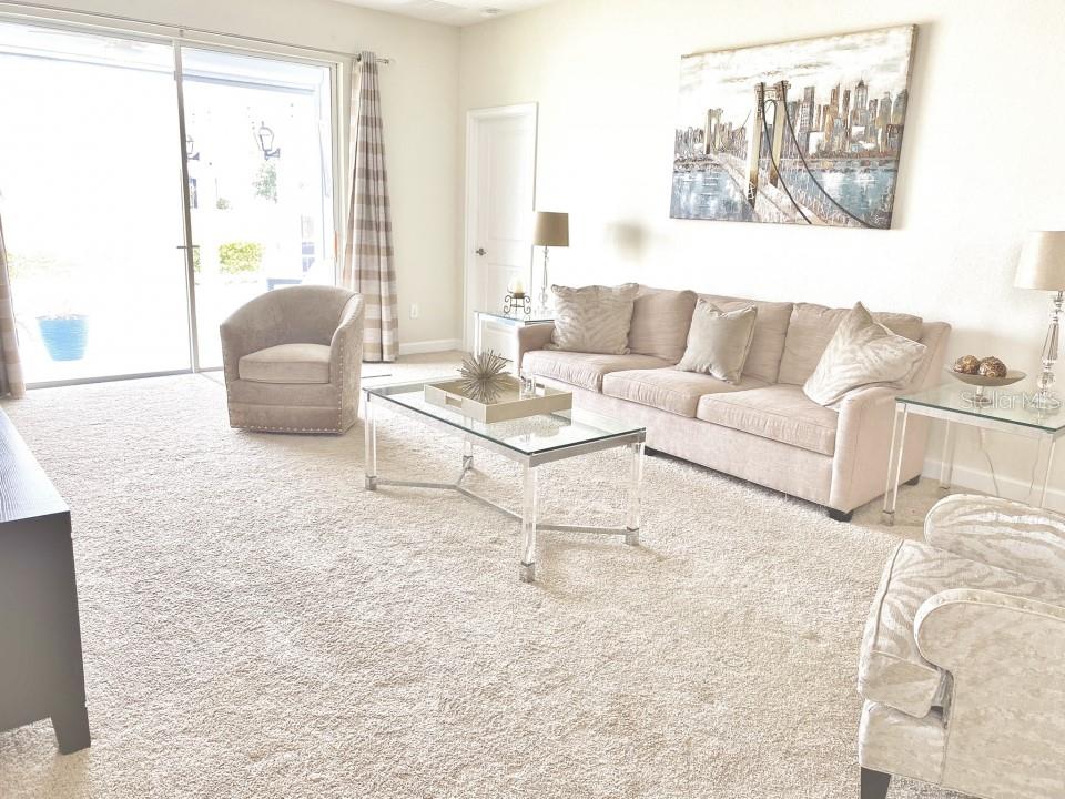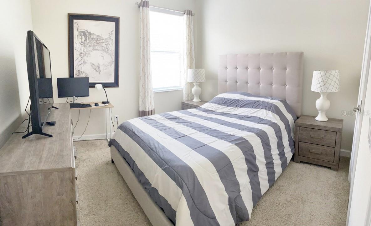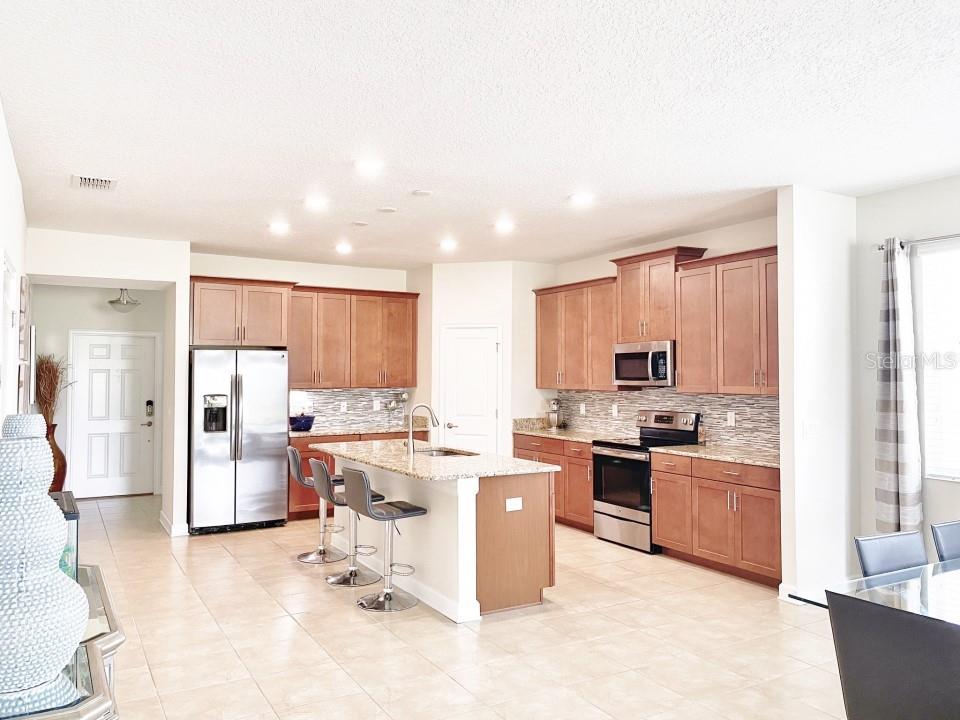 Enjoy a beautifully maintained single story home that also has a large flex room and spectacular water views! The kitchen is open concept and has granite countertops, plenty of cabinet space, a center island, and a pantry. The Bonus/Flex room offers additional flexibility to use as desired. The home has a finished garage with slat walls and overhead hanging storage. There is a walk in closet in the primary bedroom and an additional walk in closet in another bedroom. The patio has stone pavers and a stone fire pit with a wood pergola. The laundry room has recently installed cabinets. Both bathrooms have granite countertops. It is well situated in the community near the amenities including pool, playgrounds, gym, dog park and clubhouse Nearby you will find multiple options for grocery stores, shops, restaurants, and entertainment venues.