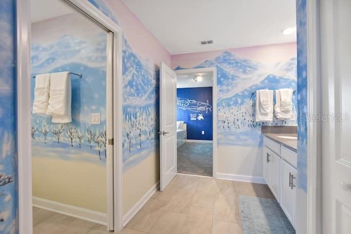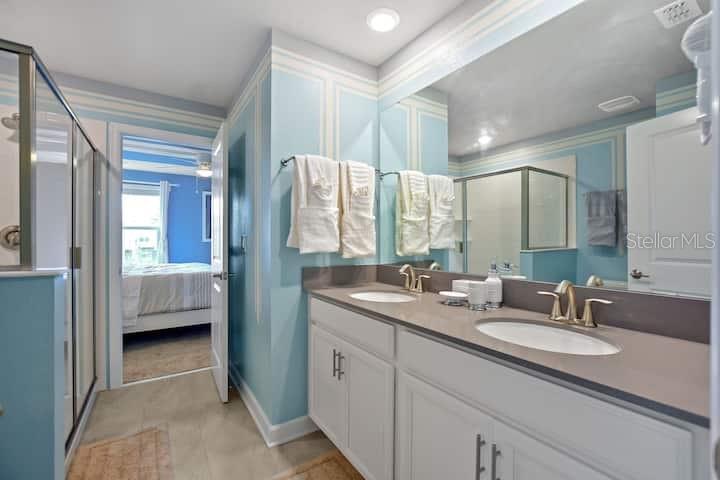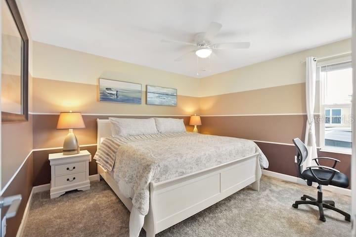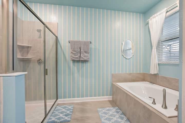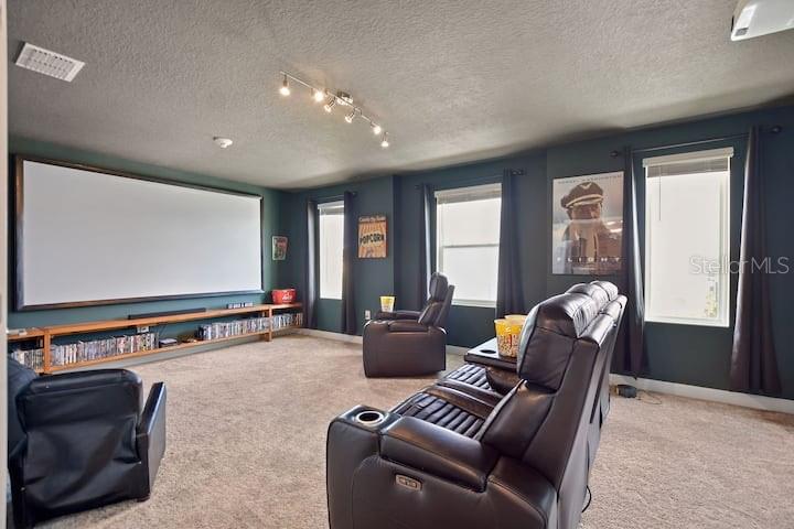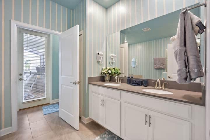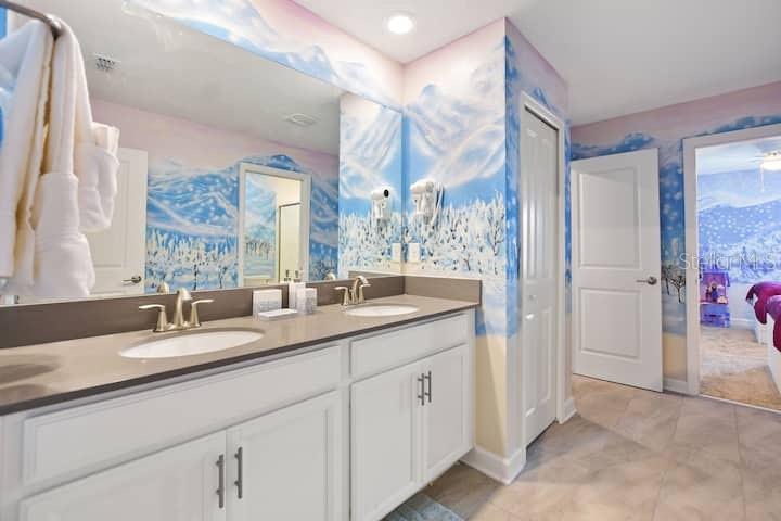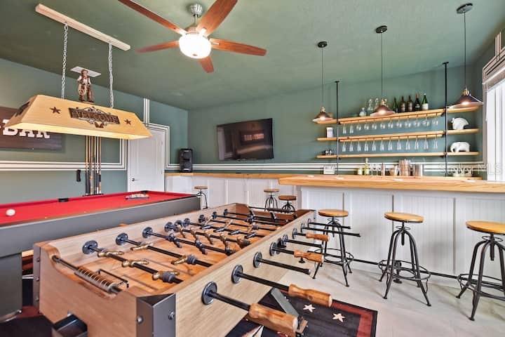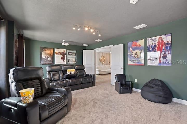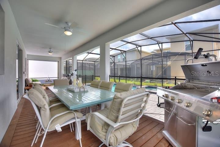 Welcome to this FULLY FURNISHED Single family home with 8 Bedrooms and 5 bathrooms including a game room, theater room, and private pool and Spa, nest in the famous Storey Lake Resort. This beautiful home features open floor plan with spacious entertainment spaces, a screened in pool and outdoor space, granite counter tops, stainless steel appliances and lots of windows for natural light. Two Master Suites are located on the ground level, one with access to the swimming pool. The second floor has a large bonus gathering space and theater room that keep everyone entertained. Various table games, outdoor playsets are perfect for young ones to have tons of fun together. This house offers Resort-style comforts and convenient access to nearby shopping, dining and entertainment. The community offers variety of fun amenities, including basketball court and golfing area, full-service state-of-the-art clubhouse with Jacuzzi, lazy river, resort style swimming pools, cabanas, poolside food and beverage service, volleyball court, playgrounds and Splash Park. Come and fall in love with this beautiful house that offers plenty of space, open floor plan. Schedule a tour today or check out the matterport 3D Tour on Zillow and MLS...