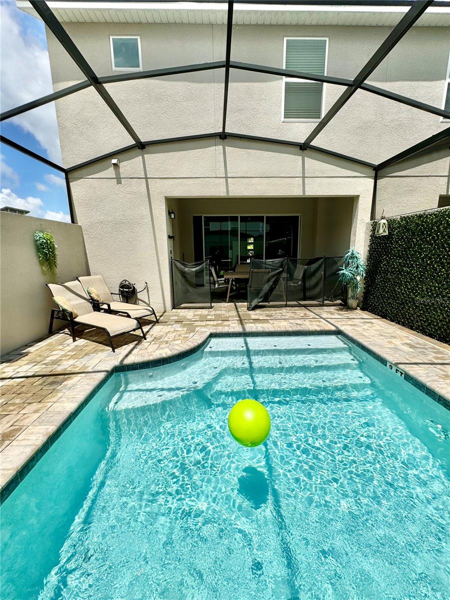 Beautiful short-term rental home is located in a luxury community, Solara Resort Vacation Villas, providing unforgettable memories to your future guests with their countless amenities. This 6 bedroom and 4.5 bath townhome has an open floor plan with a large kitchen island to entertain the whole family or group of friends and it opens to a cozy and elegant living area with a sliding door that leads to a refreshing private pool. Great investment opportunity, this property consistently has high occupancy rate, and it is ideally located near amusement parks and attractions. This home is to be sold furnished (worth more than $20,000 between furniture and decoration), HOA includes, internet, landscaping and all the resort amenities.