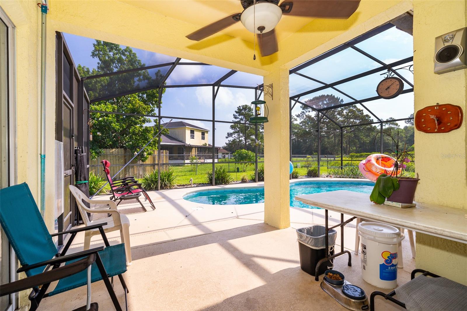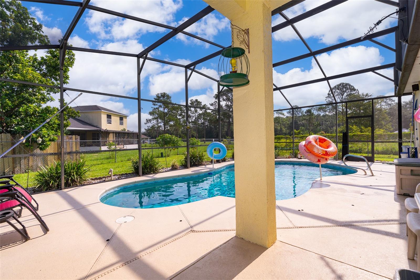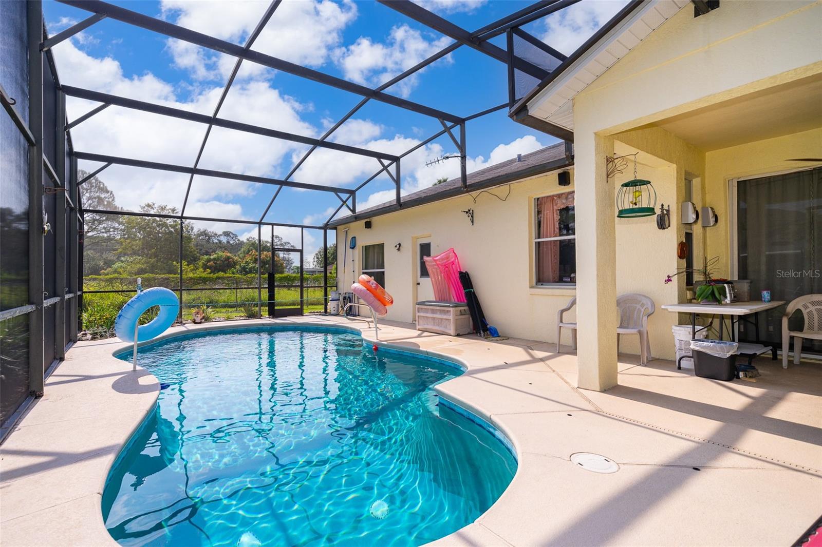 Welcome to your new home in the serene and vibrant community of Poinciana! Nestled on a quiet street with only one side neighbor, 329 Alegriano Court offers a perfect blend of comfort and privacy. This well-maintained single-family residence features 4 bedrooms and 2 bathrooms, designed with modern living in mind. As you step inside, you'll be greeted by an open-concept living area bathed in natural light, creating a warm and inviting atmosphere. The kitchen is a chef's dream, boasting stainless steel appliances, ample counter space, and plenty of cabinets, making it ideal for both everyday cooking and entertaining guests. Plus, the washer and dryer convey with the sale, adding extra convenience to your move. The master suite is a true retreat, complete with a spacious walk-in closet and an en-suite bathroom featuring dual vanities and a soaking tub, perfect for unwinding after a long day. Additional bedrooms with plenty of space for family or guests, with flexibility for a home office or hobby room. Step outside to your private backyard oasis, where a beautiful pool with a screen enclosure awaits. Whether you're enjoying a morning swim or hosting a summer barbecue, this outdoor space is perfect for year-round enjoyment. Located in the heart of Poinciana, this home is just 30 minutes away from the magic of Disney World, making it an ideal location for both everyday living and vacationing. You'll also find local parks, schools, shopping, and dining just minutes away. With easy access to major highways, commuting to nearby cities like Kissimmee or Orlando is a breeze. Whether you're a first-time homebuyer or looking for your next investment property, 329 Alegriano Court is a must-see. Don’t miss this opportunity to own a piece of Poinciana’s charm!