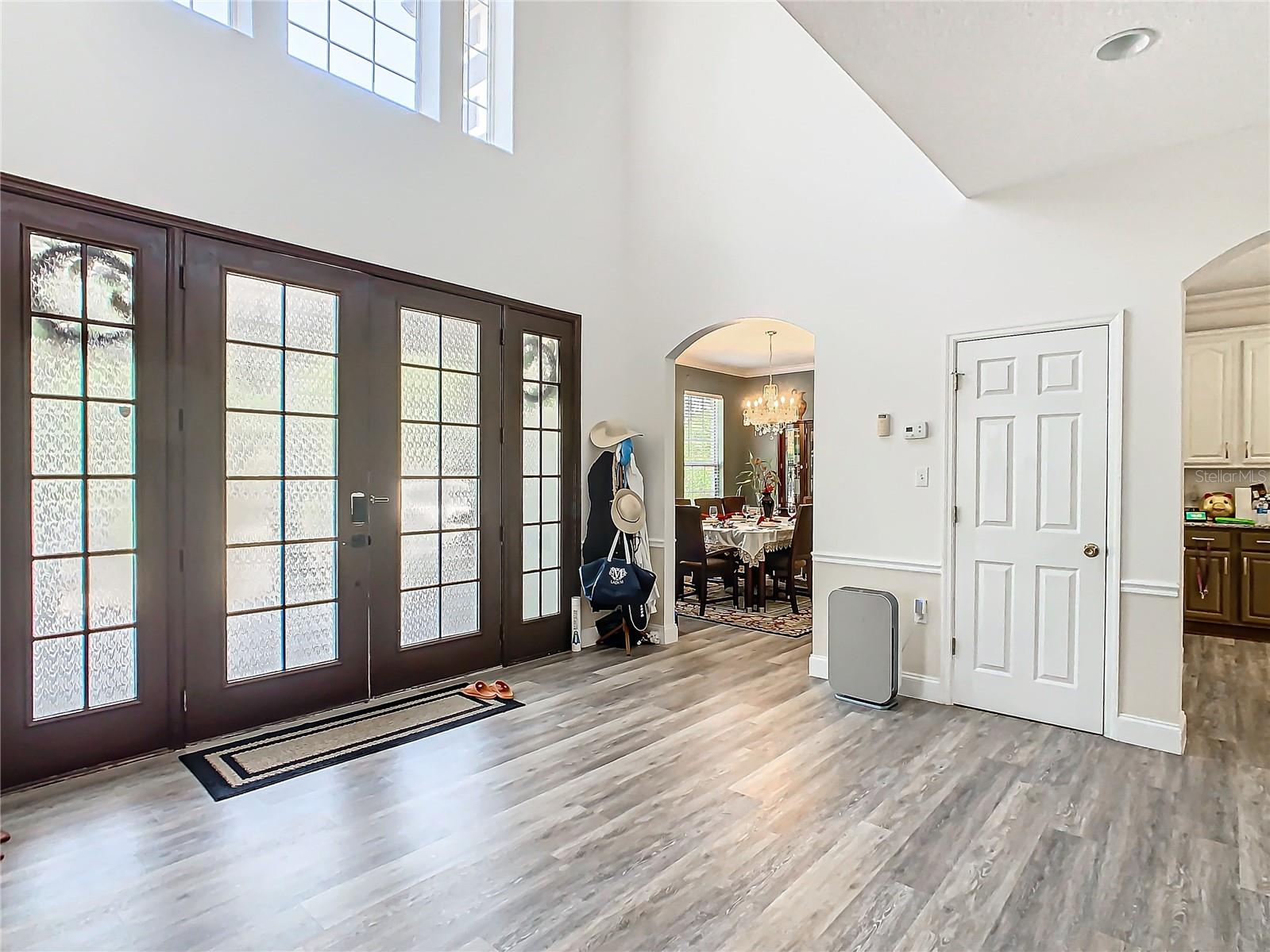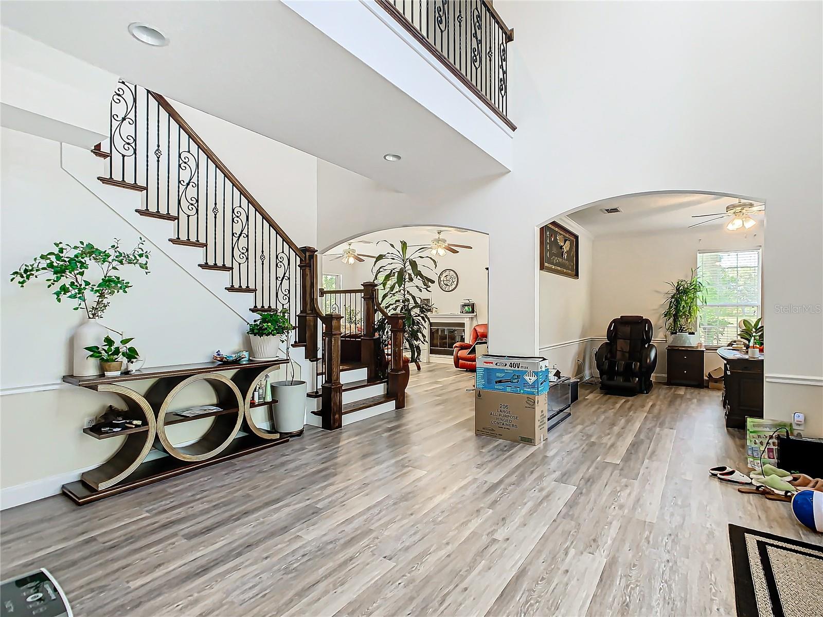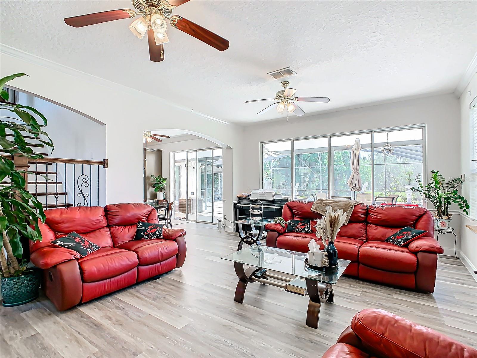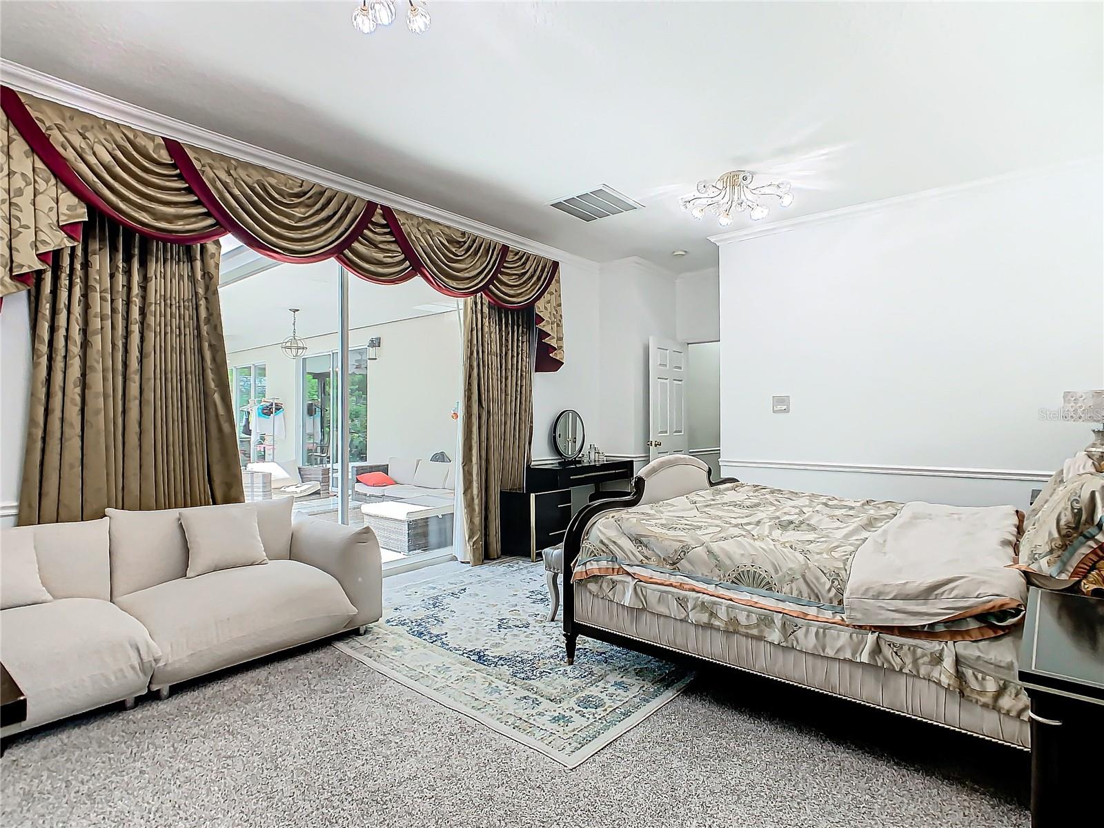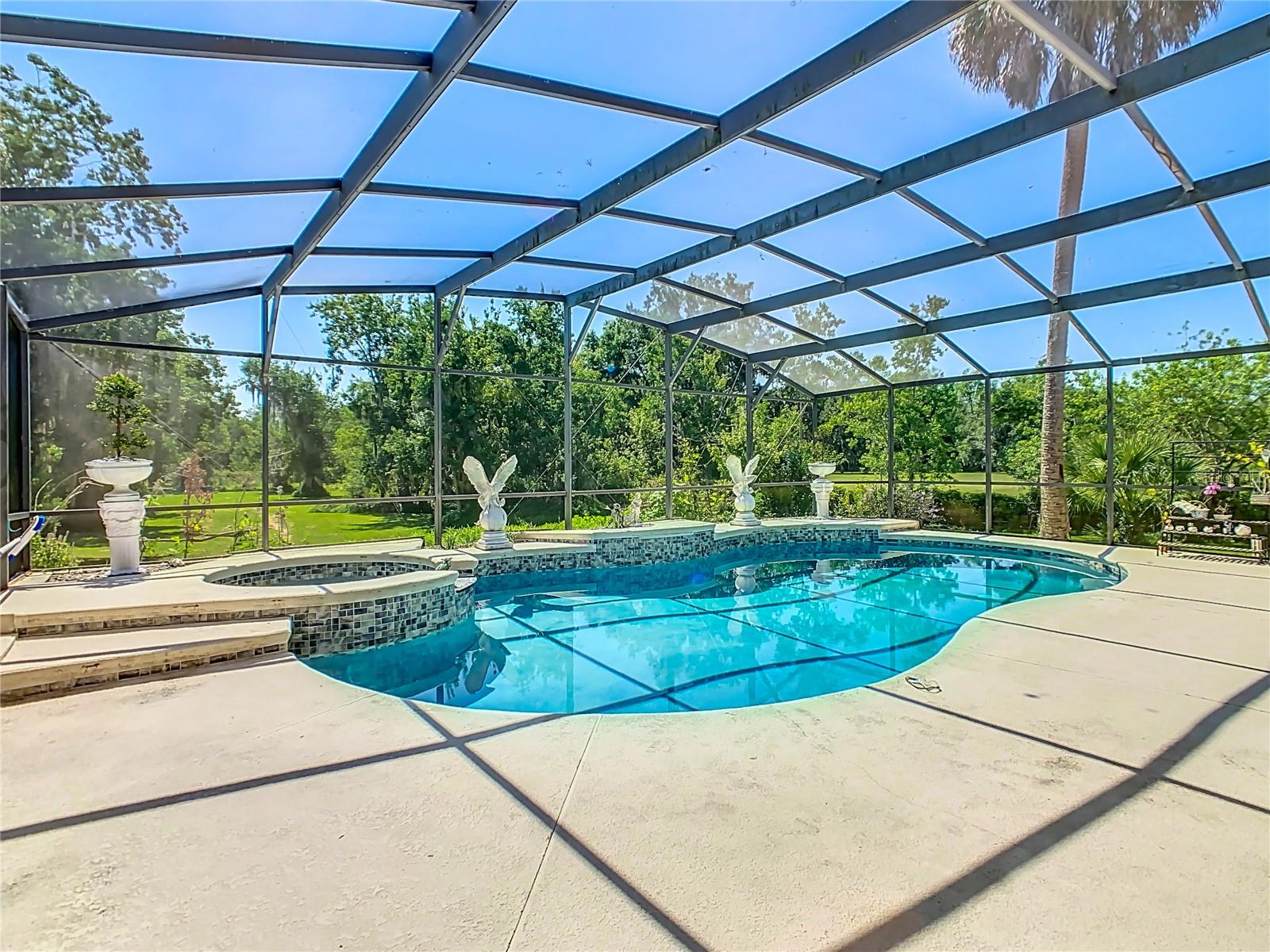 Welcome to this five bedroom, four and a half bathroom country estate situated on over 2.6 acres of exquisite land off of one of Central Florida's best kept secret streets. Past other luxury estates, and under beautiful Oak trees, this custom built home awaits with brand new double-swing estate style automatic gates. The foyer is perfect for those who love sunlight and openness. The kitchen boasts oversized 42 inch cabinets, double Maytag ovens, two separate stainless sinks, newer cook-top, large pantry and an enormous island with built in shelving. The downstair master bedroom has direct access and views of the pool. Moving upstairs, you can take one of two staircases, the main stairs (renovated 2021) that greet you from the front door, or the separate staircase found off of the kitchen which leads directly to the homes theater. The theater is a movie buffs dream with its 12 authentic seats from a Las Vegas theater. Across the upstairs hall, the homes upstairs master is found along with three more bedrooms, all situated upstairs. Outback, the home has both a covered lanai, and screened in patio. The large pool has been completely resurfaced in 2021, with a new saltwater pump. To the left of the pool, there is an additional screened patio, perfect to transform into an outdoor kitchen. The rest of the acreage is behind the pool, it is cleared land with more beautiful trees. Recent home updates include: brand new roof (2022), newer water heater, newer water filtration and softener system, brand new AC unit (2023). Come make this property yours and enjoy everything it has to offer today.