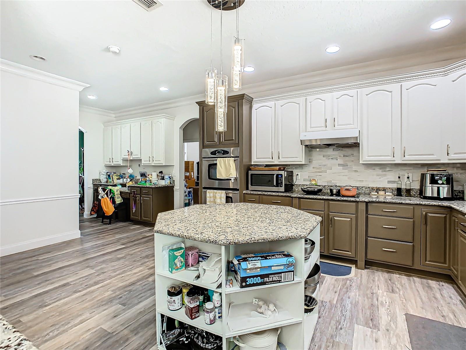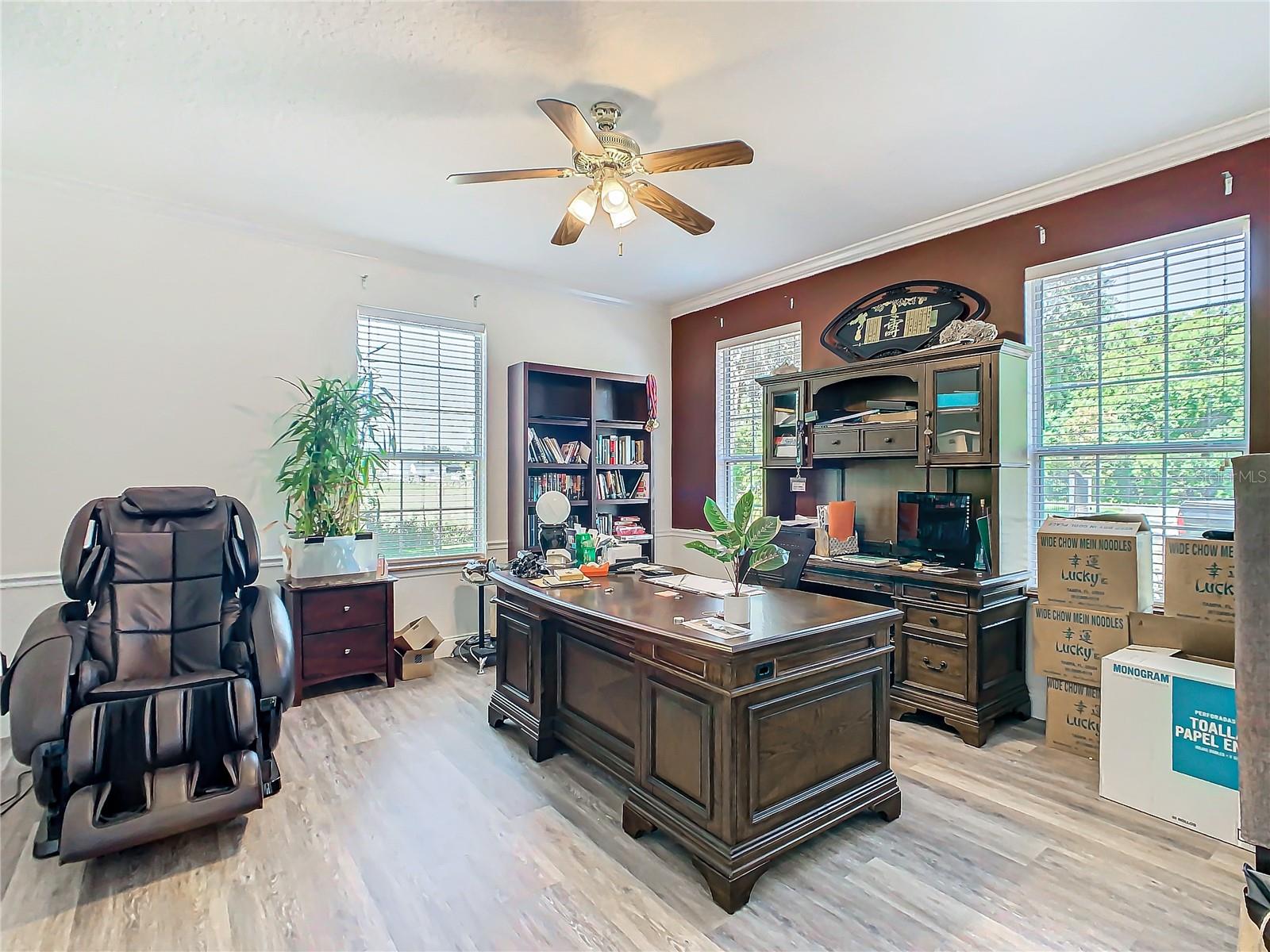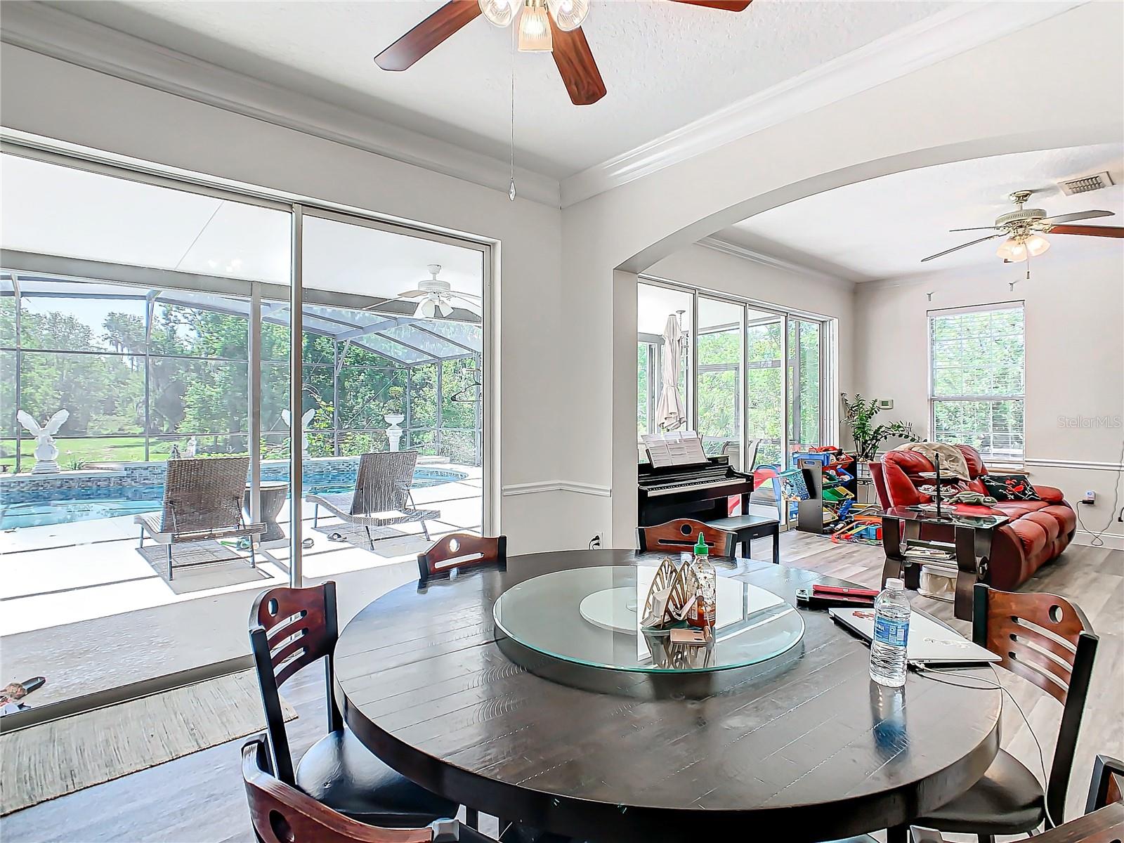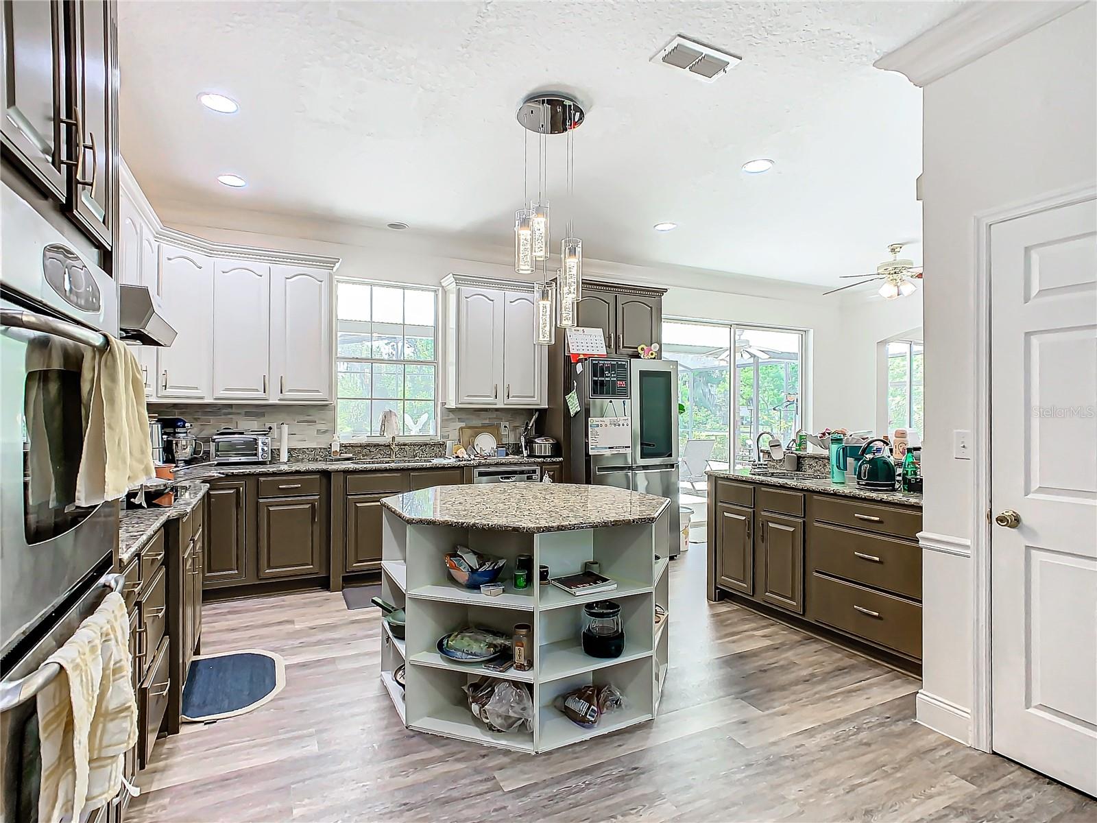 Welcome to this five bedroom, four and a half bathroom country estate situated on over 2.6 acres of exquisite land off of one of Central Florida's best kept secret streets. Past other luxury estates, and under beautiful Oak trees, this custom built home awaits with brand new double-swing estate style automatic gates. The foyer is perfect for those who love sunlight and openness. The kitchen boasts oversized 42 inch cabinets, double Maytag ovens, two separate stainless sinks, newer cook-top, large pantry and an enormous island with built in shelving. The downstair master bedroom has direct access and views of the pool. Moving upstairs, you can take one of two staircases, the main stairs (renovated 2021) that greet you from the front door, or the separate staircase found off of the kitchen which leads directly to the homes theater. The theater is a movie buffs dream with its 12 authentic seats from a Las Vegas theater. Across the upstairs hall, the homes upstairs master is found along with three more bedrooms, all situated upstairs. Outback, the home has both a covered lanai, and screened in patio. The large pool has been completely resurfaced in 2021, with a new saltwater pump. To the left of the pool, there is an additional screened patio, perfect to transform into an outdoor kitchen. The rest of the acreage is behind the pool, it is cleared land with more beautiful trees. Recent home updates include: brand new roof (2022), newer water heater, newer water filtration and softener system, brand new AC unit (2023). Come make this property yours and enjoy everything it has to offer today.