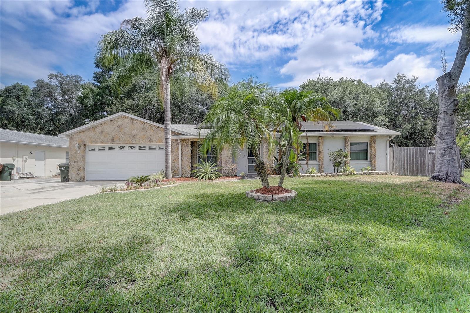 Welcome to your dream home with no HOA! This beautifully updated 4-bedroom, 2-bath residence is nestled in a quiet cul-de-sac, offering peace and privacy. The renovated kitchen boasts modern finishes, while laminate floors flow seamlessly throughout the home. Enjoy the expansive, fully fenced yard, perfect for outdoor activities, and relax in the large screened-in lanai. With a newer HVAC system and a 2018 roof, this home is move-in ready. Additional features include a 2-car garage, updated plumbing, electrical, air ducts, and insulation, plus a cozy fireplace in the family room. The home is equipped with solar panels, ensuring little to no electric bill. The solar loan is financed and the buyer must assume the loan. Don't miss this gem!
