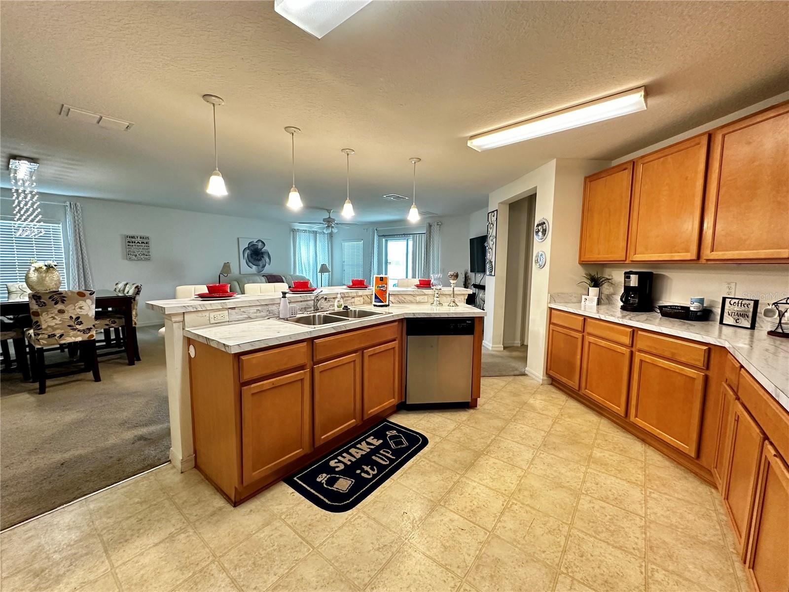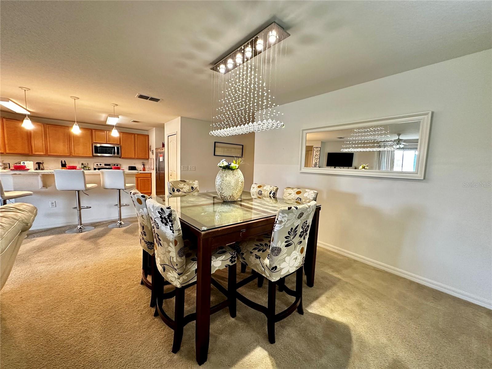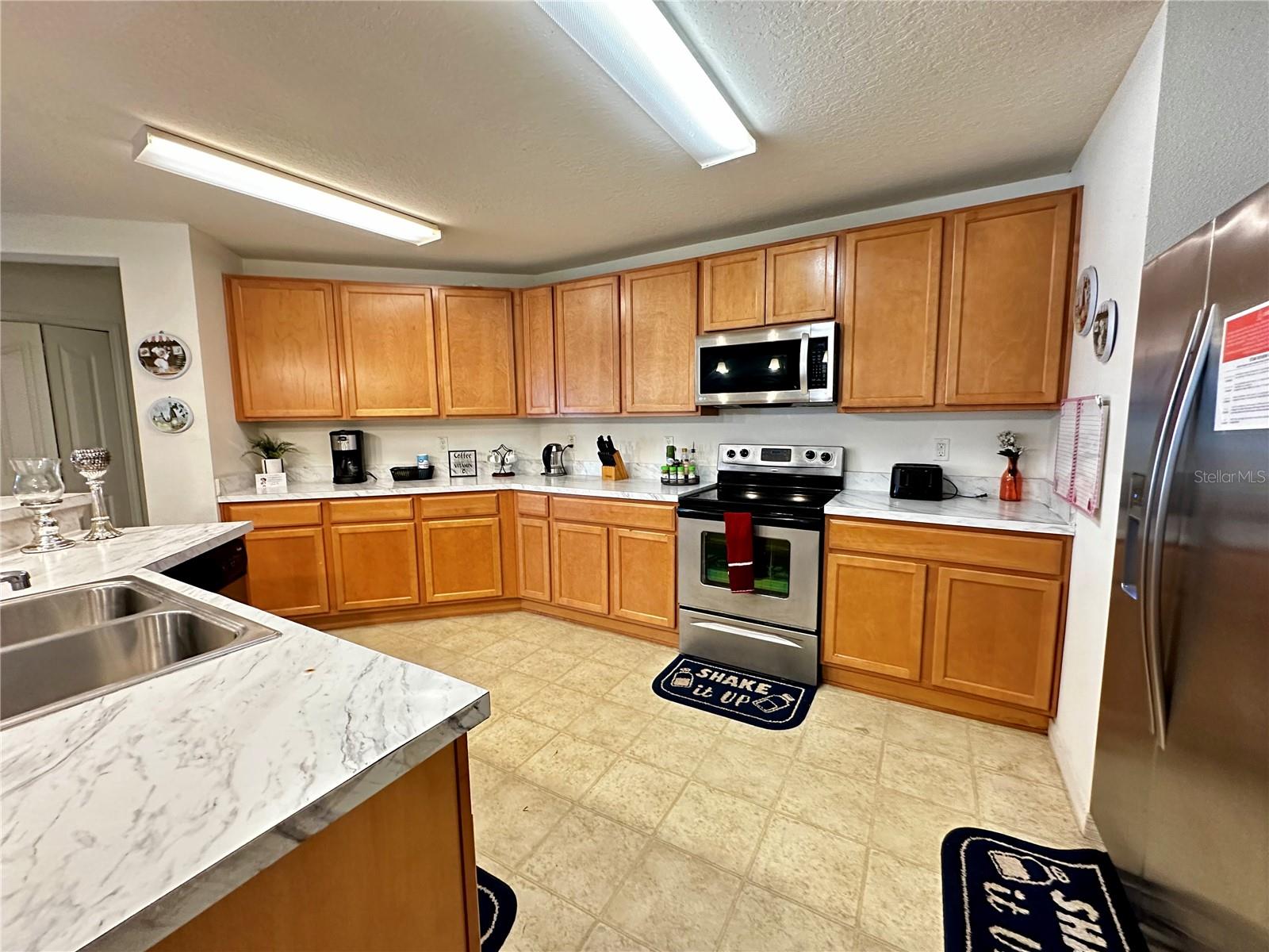 Discover your dream home in the exclusive GATED COMMUNITY of Crystal Cove Resort! This stunning 4-bedroom, 2-bathroom single-family residence, built in 2013, boasts a picturesque water view and resort-style amenities that will make every day feel like a vacation. As you step inside, you'll be greeted by an abundance of natural light flooding the spacious, beautifully decorated interiors. Fully furnished and move-in ready, this home offers both comfort and style. The inviting kitchen features sleek stainless steel appliances, including a range, dishwasher, side-by-side refrigerator, and built-in microwave. Maple wood 30" cabinets and a breakfast bar with elegant white pendant sconces create the perfect setting for family gatherings and intimate dinners. The master bedroom is a serene retreat, complete with a luxurious king-sized bed, stylish blinds, and a modern white ceiling fan. The en-suite master bathroom offers a spa-like experience with a glass-enclosed shower, separate soaking tub, double vanity, and a large mirror. Three additional bedrooms and a well-appointed second bathroom provide ample space for family and guests. Step outside to enjoy the tranquil water view from your spacious backyard, perfect for outdoor entertaining and relaxation. The resort-style amenities at the clubhouse include a pool table, a state-of-the-art fitness center, and a heated pool. Plus, lawn maintenance is included in the HOA fee, ensuring a hassle-free lifestyle. Located just 6 miles from Disney and minutes from premier shopping and outlet centers, this home offers the perfect blend of luxury, convenience, and fun. Don’t miss your chance to own this exceptional property!