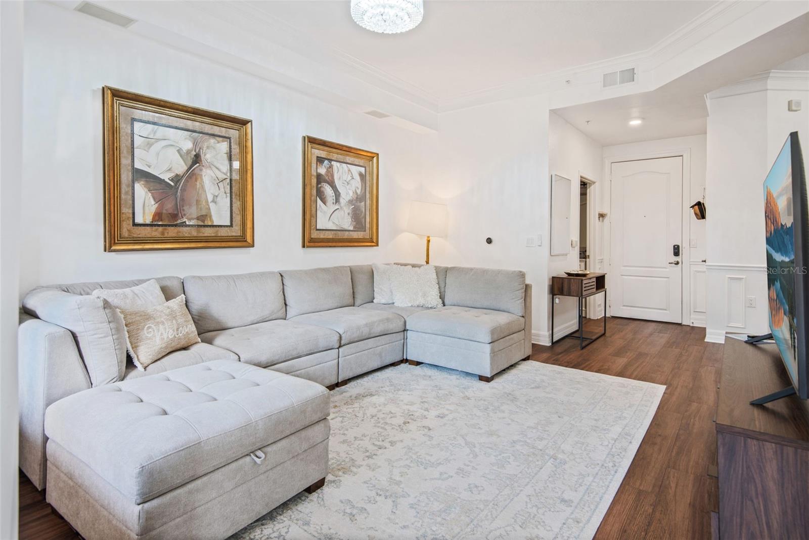 Take a look at this Furnished one bedroom condo in Mirasol at the heart of Celebration. This top floor condo, with only one shared wall, features hard surface floors, updated appliances, automatic blinds with curtains, updated lighting fixtures, mechanicals replaced in 2020, and other updates throughout! Walk out onto the private screened balcony to enjoy your morning coffee or evening wine! The building has an elevator for easy access to the unit. Mirasol has a community pool, coffee/tea bar, fitness center, business center, and a salon on site. From Mirasol it's an easy walk to downtown Celebration for dining, shopping, or just relaxing near the lake. Tennis courts, basketball courts, and a Celebration community pool are also around the corner.