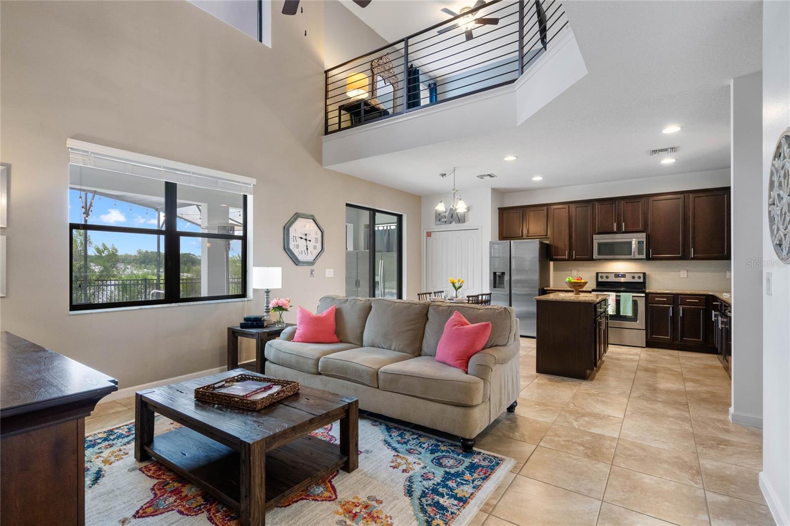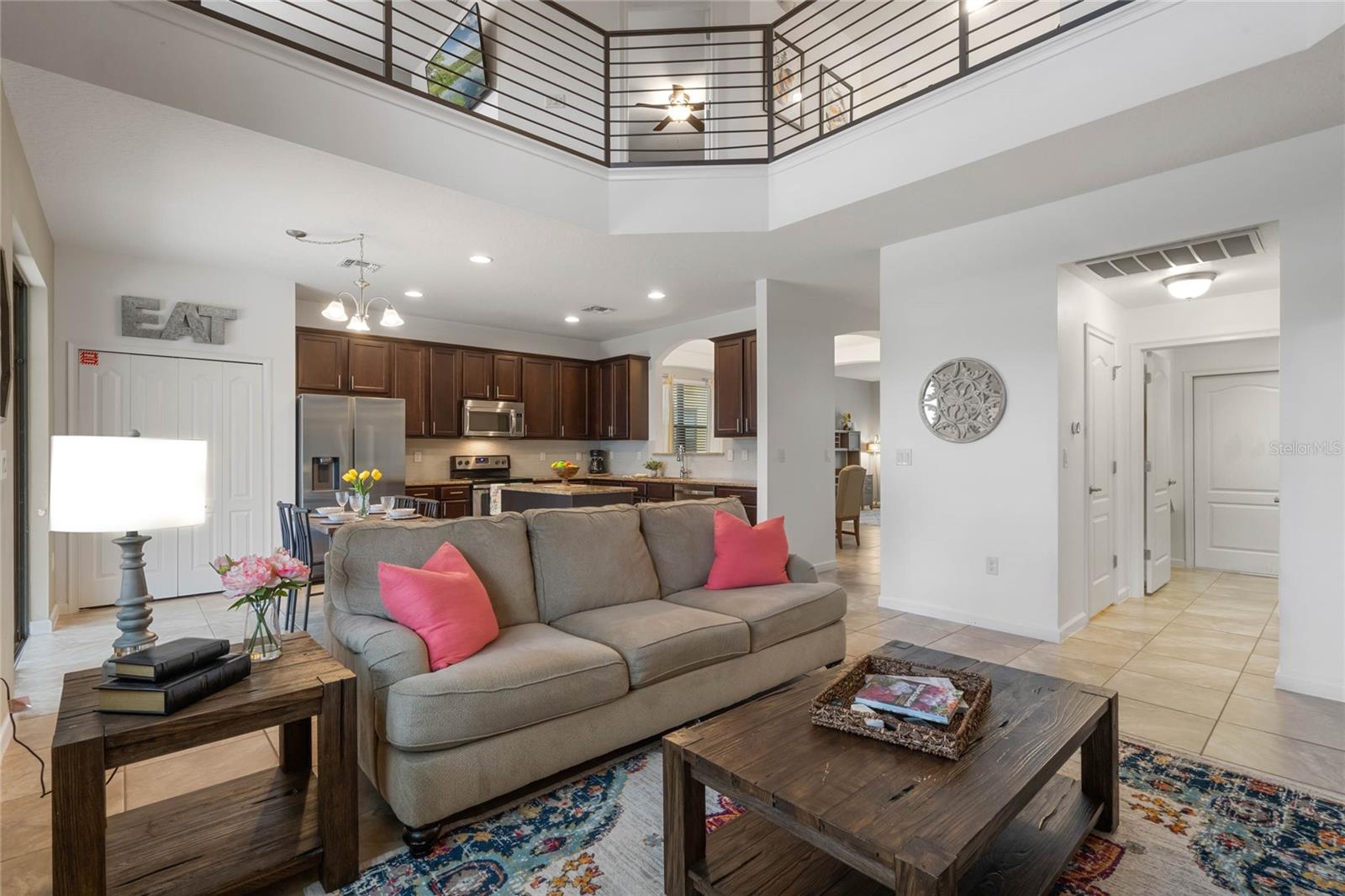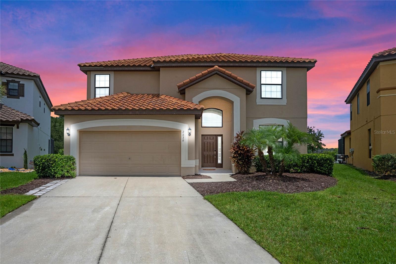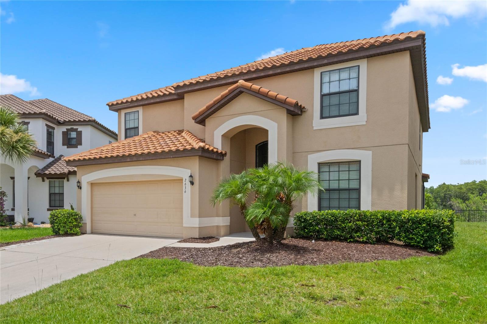Welcome to this stunning 6-bedroom, 4.5-bathroom turnkey vacation home in the exclusive gated resort community of Veranda Palms. As you enter, you'll be greeted by a versatile living and dining combo area, perfect for various uses such as an open office, a private space, or a cozy sitting area to unwind before dinner. The home features a seamless transition to a chef-inspired kitchen, complete with granite countertops, stainless steel appliances, and elegant brown wood cabinets. This kitchen opens up to a spacious family room, where large windows, sliding glass doors, neutral-colored walls, and soaring ceilings create a bright and inviting atmosphere. Step outside to the lanai, where you'll find a sparkling freeform pool and a heated spa. After a swim, relax and have a cocktail while enjoying the tranquil pond view, or watch your favorite shows on the two oversized flatscreen TVs. For those who love outdoor cooking, the included barbecue grill and popular Blackstone griddle make al fresco dining a breeze. When it's time to retreat, head to the luxurious owner's suite, featuring a spa-worthy bathroom with dual vanities, granite countertops, a large soaking tub, and a separate glass-enclosed shower. The first floor also includes a convenient half bath and a laundry room. Upstairs, you'll find a versatile loft area, perfect for a game room or an additional family room, along with five well-appointed bedrooms. Among them is a junior master bedroom with an en suite bathroom, offering added privacy and comfort. This home has been meticulously maintained, featuring recent upgrades such as a brand-new pool heater, a new first-floor AC unit, and a recent soft wash of the tile roof. The community boasts fabulous amenities, including a clubhouse, fitness center, playground, and a huge swimming pool. Located just minutes away from world-class dining, shopping, and attractions—including the crown jewel of Orlando, Disney World—this home is a true gem. Don’t miss your chance to own this exceptional property, perfect as an investment property or a primary residence. Call today to schedule your showing.