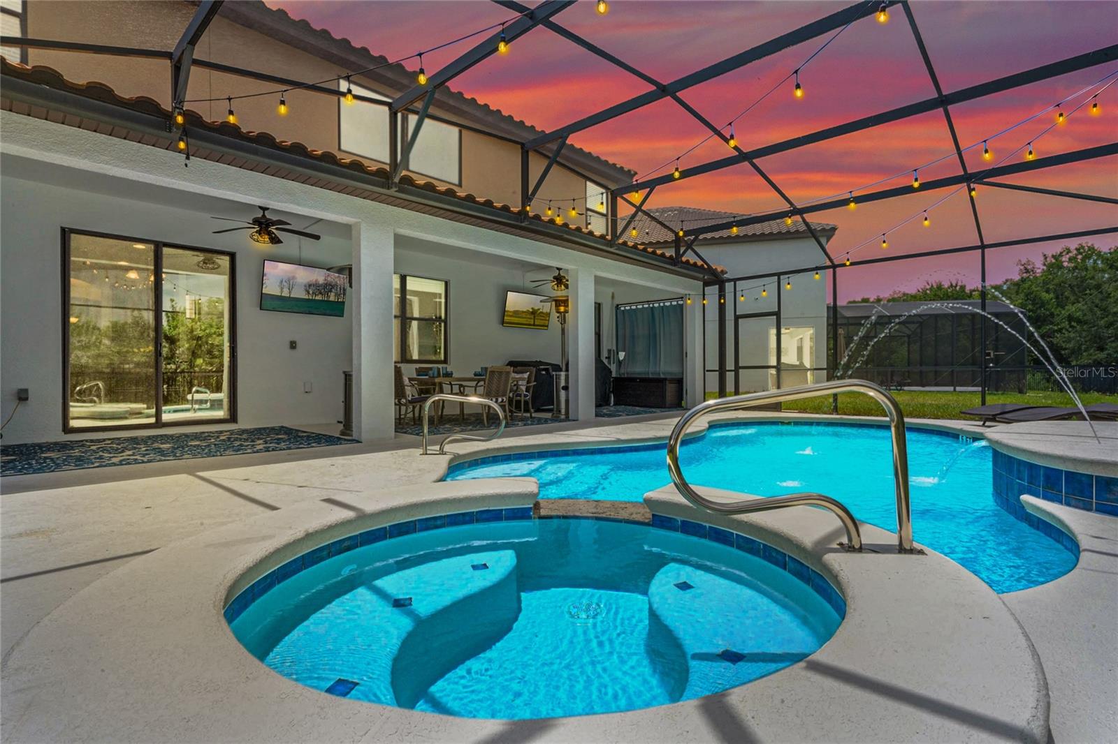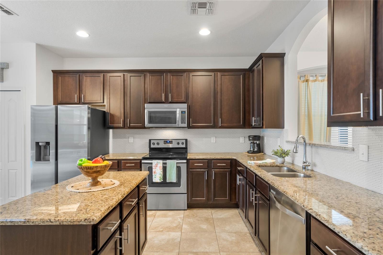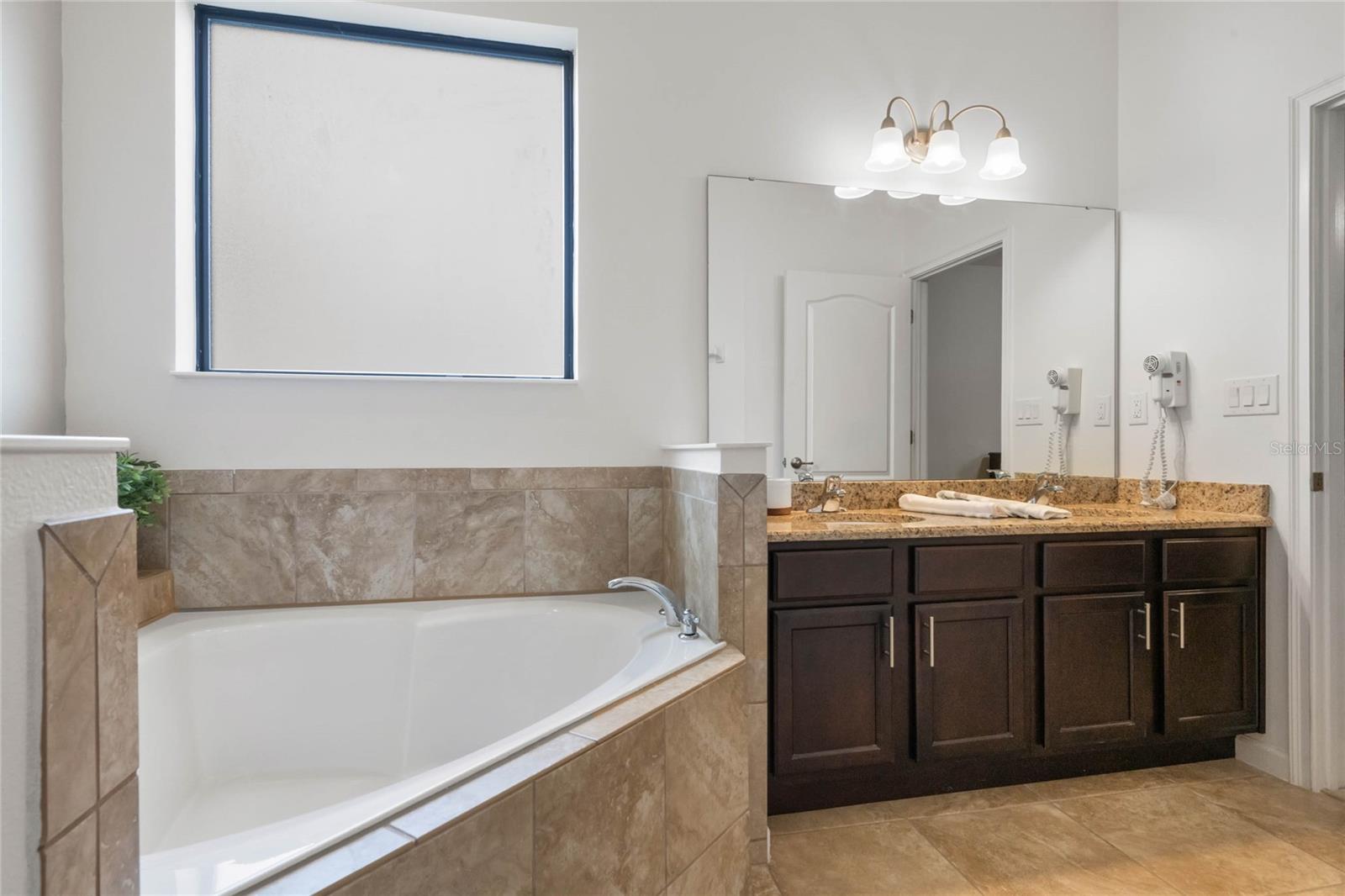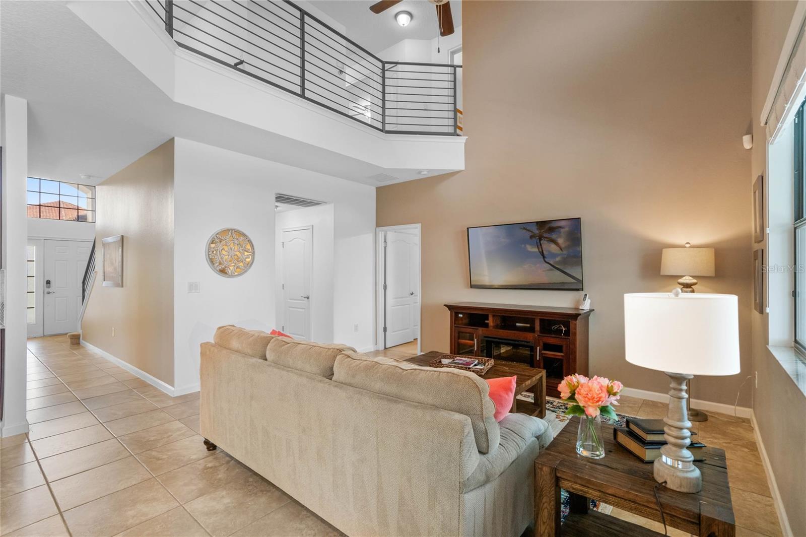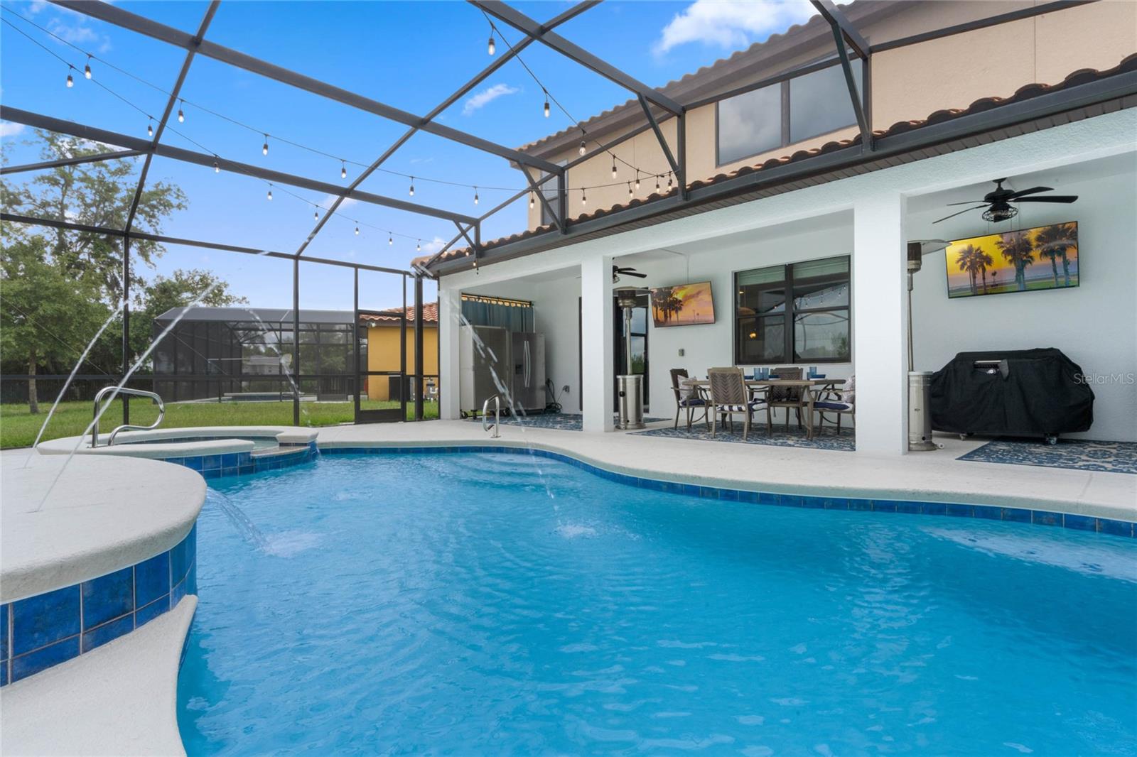 Welcome to this stunning 6-bedroom, 4.5-bathroom turnkey vacation home in the exclusive gated resort community of Veranda Palms. As you enter, you'll be greeted by a versatile living and dining combo area, perfect for various uses such as an open office, a private space, or a cozy sitting area to unwind before dinner. The home features a seamless transition to a chef-inspired kitchen, complete with granite countertops, stainless steel appliances, and elegant brown wood cabinets. This kitchen opens up to a spacious family room, where large windows, sliding glass doors, neutral-colored walls, and soaring ceilings create a bright and inviting atmosphere. Step outside to the lanai, where you'll find a sparkling freeform pool and a heated spa. After a swim, relax and have a cocktail while enjoying the tranquil pond view, or watch your favorite shows on the two oversized flatscreen TVs. For those who love outdoor cooking, the included barbecue grill and popular Blackstone griddle make al fresco dining a breeze. When it's time to retreat, head to the luxurious owner's suite, featuring a spa-worthy bathroom with dual vanities, granite countertops, a large soaking tub, and a separate glass-enclosed shower. The first floor also includes a convenient half bath and a laundry room. Upstairs, you'll find a versatile loft area, perfect for a game room or an additional family room, along with five well-appointed bedrooms. Among them is a junior master bedroom with an en suite bathroom, offering added privacy and comfort. This home has been meticulously maintained, featuring recent upgrades such as a brand-new pool heater, a new first-floor AC unit, and a recent soft wash of the tile roof. The community boasts fabulous amenities, including a clubhouse, fitness center, playground, and a huge swimming pool. Located just minutes away from world-class dining, shopping, and attractions—including the crown jewel of Orlando, Disney World—this home is a true gem. Don’t miss your chance to own this exceptional property, perfect as an investment property or a primary residence. Call today to schedule your showing.
