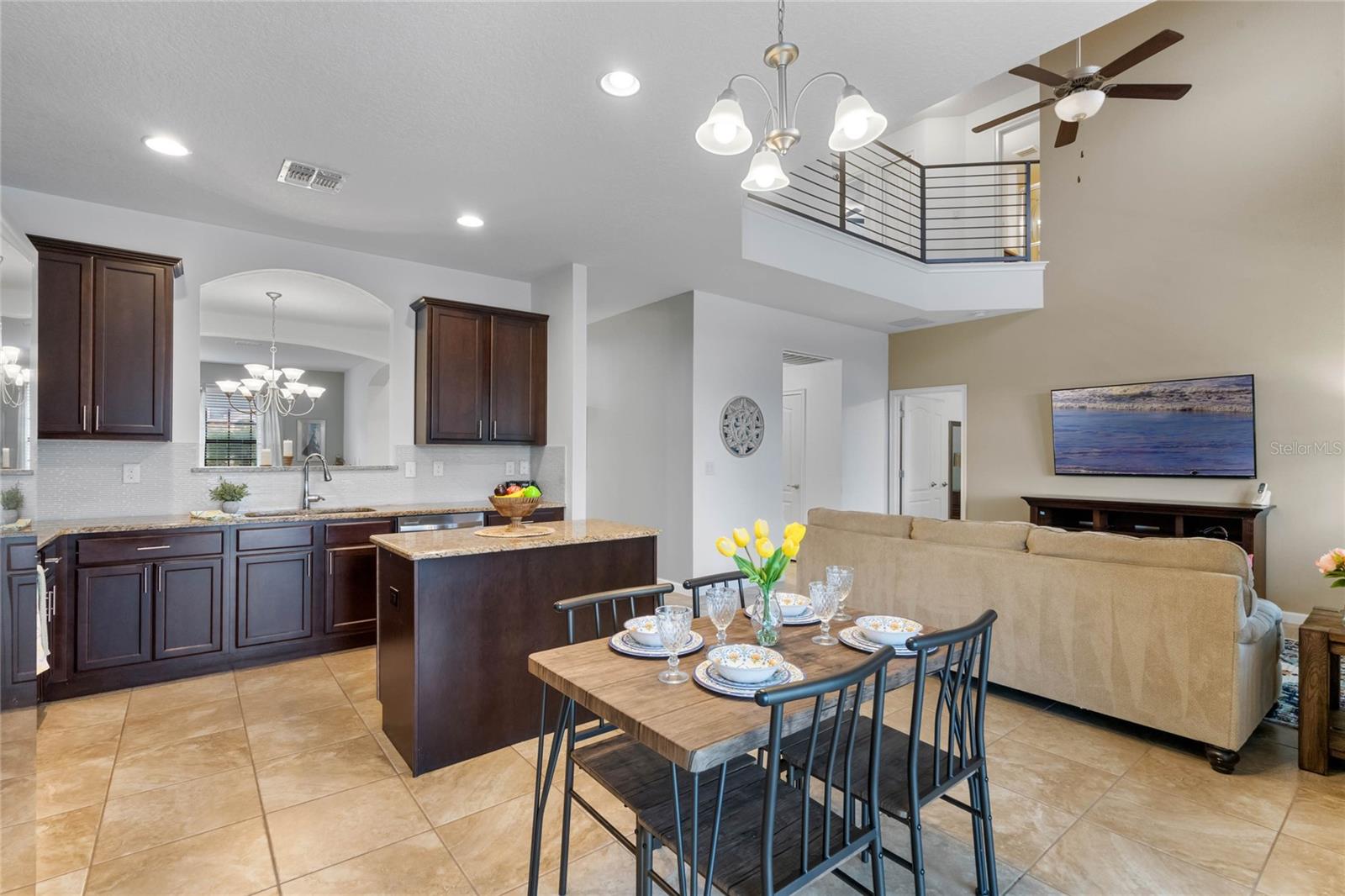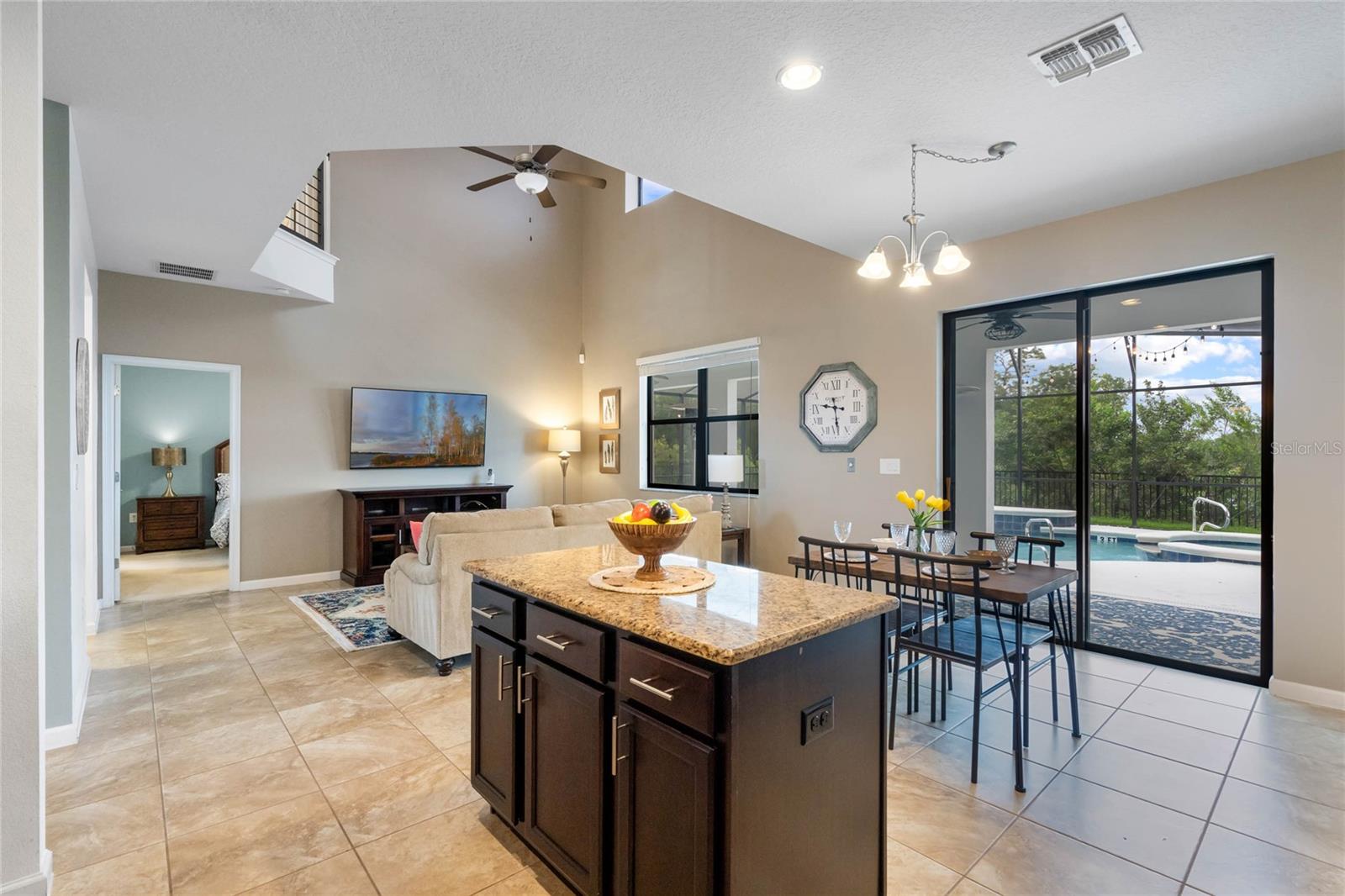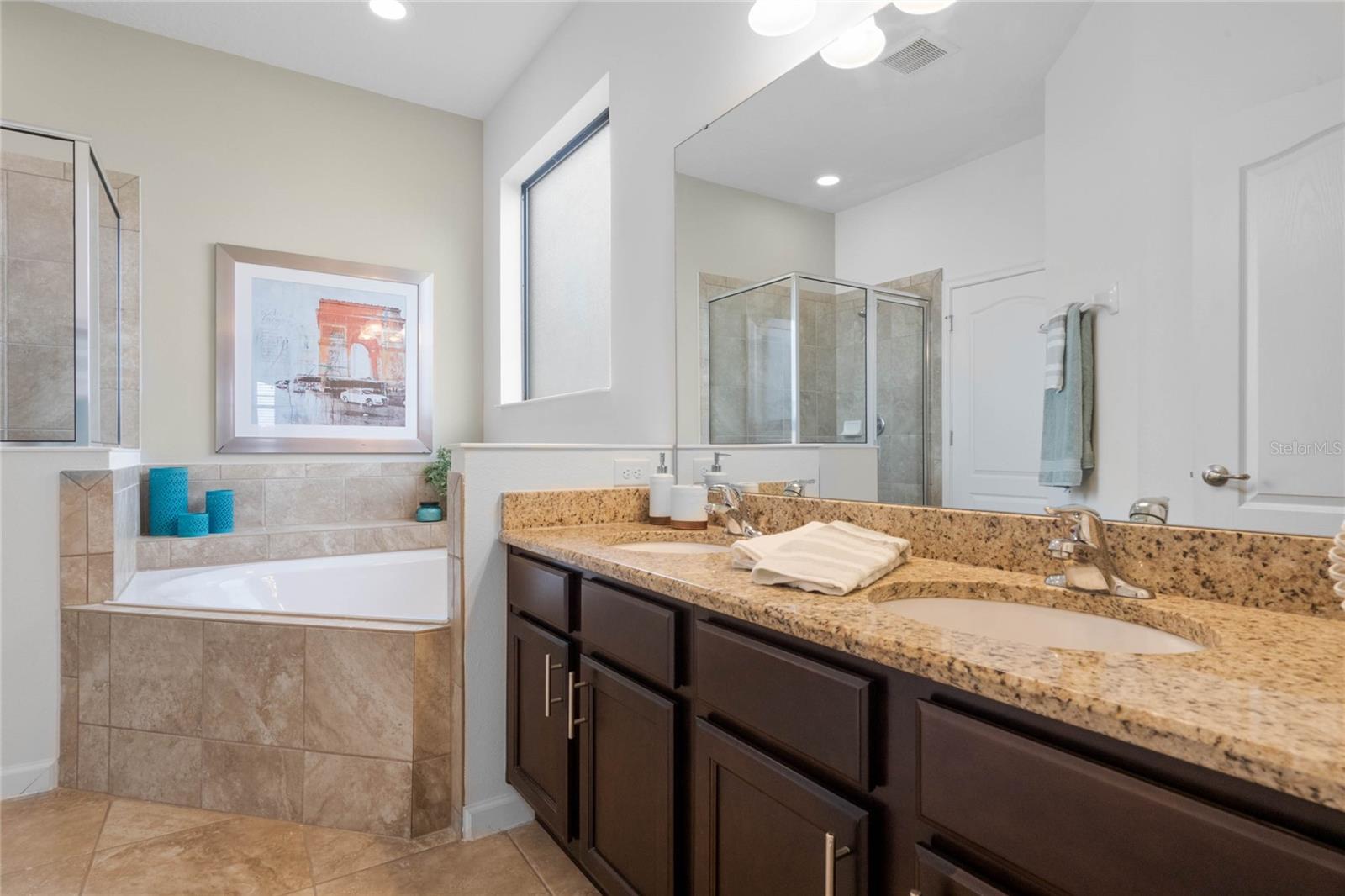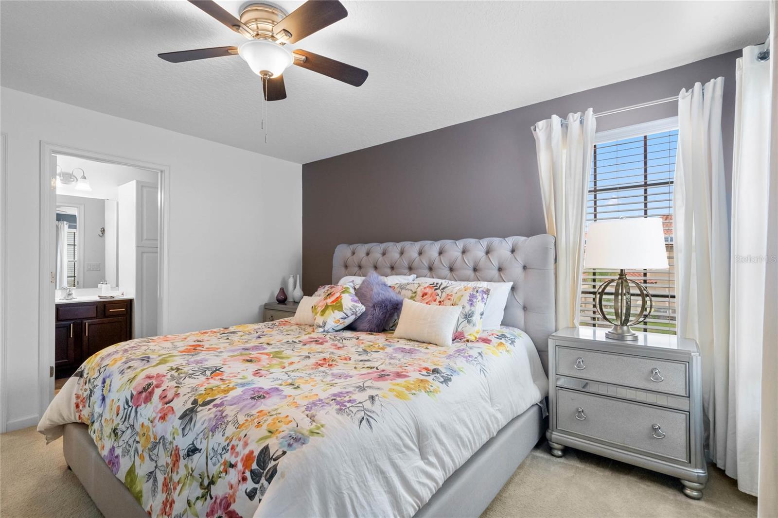 Welcome to this stunning 6-bedroom, 4.5-bathroom turnkey vacation home in the exclusive gated resort community of Veranda Palms. As you enter, you'll be greeted by a versatile living and dining combo area, perfect for various uses such as an open office, a private space, or a cozy sitting area to unwind before dinner. The home features a seamless transition to a chef-inspired kitchen, complete with granite countertops, stainless steel appliances, and elegant brown wood cabinets. This kitchen opens up to a spacious family room, where large windows, sliding glass doors, neutral-colored walls, and soaring ceilings create a bright and inviting atmosphere. Step outside to the lanai, where you'll find a sparkling freeform pool and a heated spa. After a swim, relax and have a cocktail while enjoying the tranquil pond view, or watch your favorite shows on the two oversized flatscreen TVs. For those who love outdoor cooking, the included barbecue grill and popular Blackstone griddle make al fresco dining a breeze. When it's time to retreat, head to the luxurious owner's suite, featuring a spa-worthy bathroom with dual vanities, granite countertops, a large soaking tub, and a separate glass-enclosed shower. The first floor also includes a convenient half bath and a laundry room. Upstairs, you'll find a versatile loft area, perfect for a game room or an additional family room, along with five well-appointed bedrooms. Among them is a junior master bedroom with an en suite bathroom, offering added privacy and comfort. This home has been meticulously maintained, featuring recent upgrades such as a brand-new pool heater, a new first-floor AC unit, and a recent soft wash of the tile roof. The community boasts fabulous amenities, including a clubhouse, fitness center, playground, and a huge swimming pool. Located just minutes away from world-class dining, shopping, and attractions—including the crown jewel of Orlando, Disney World—this home is a true gem. Don’t miss your chance to own this exceptional property, perfect as an investment property or a primary residence. Call today to schedule your showing.