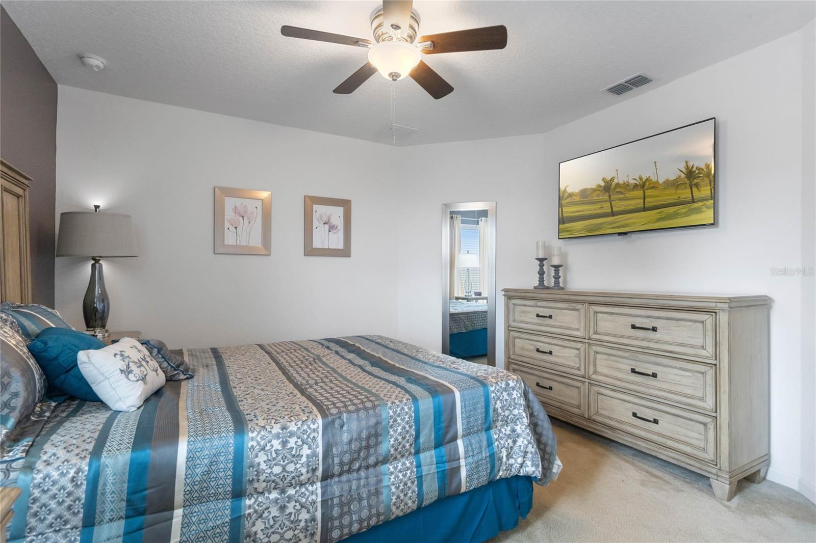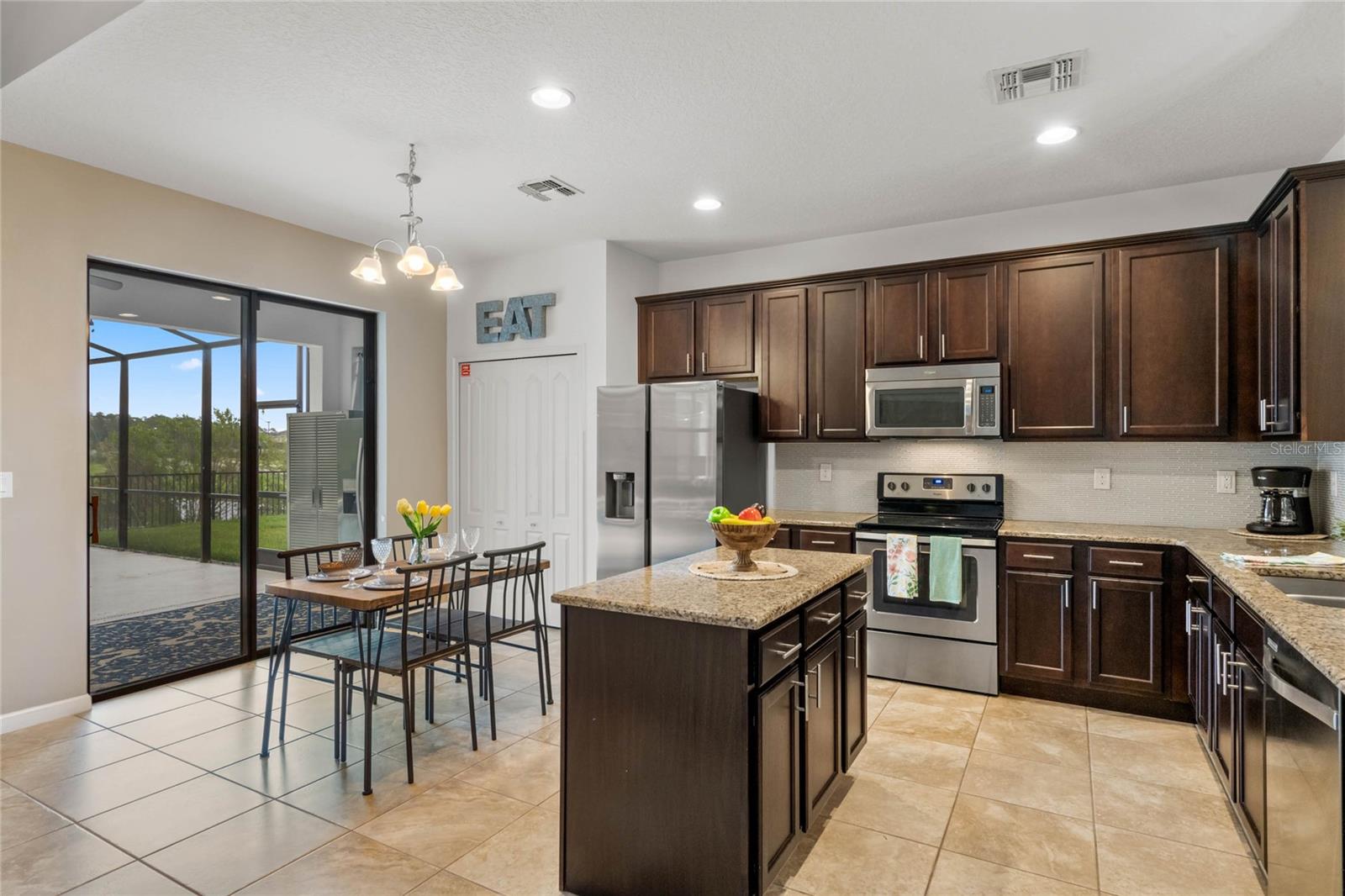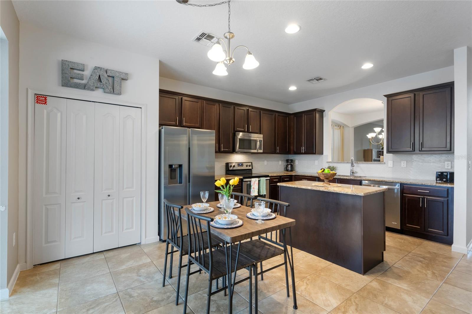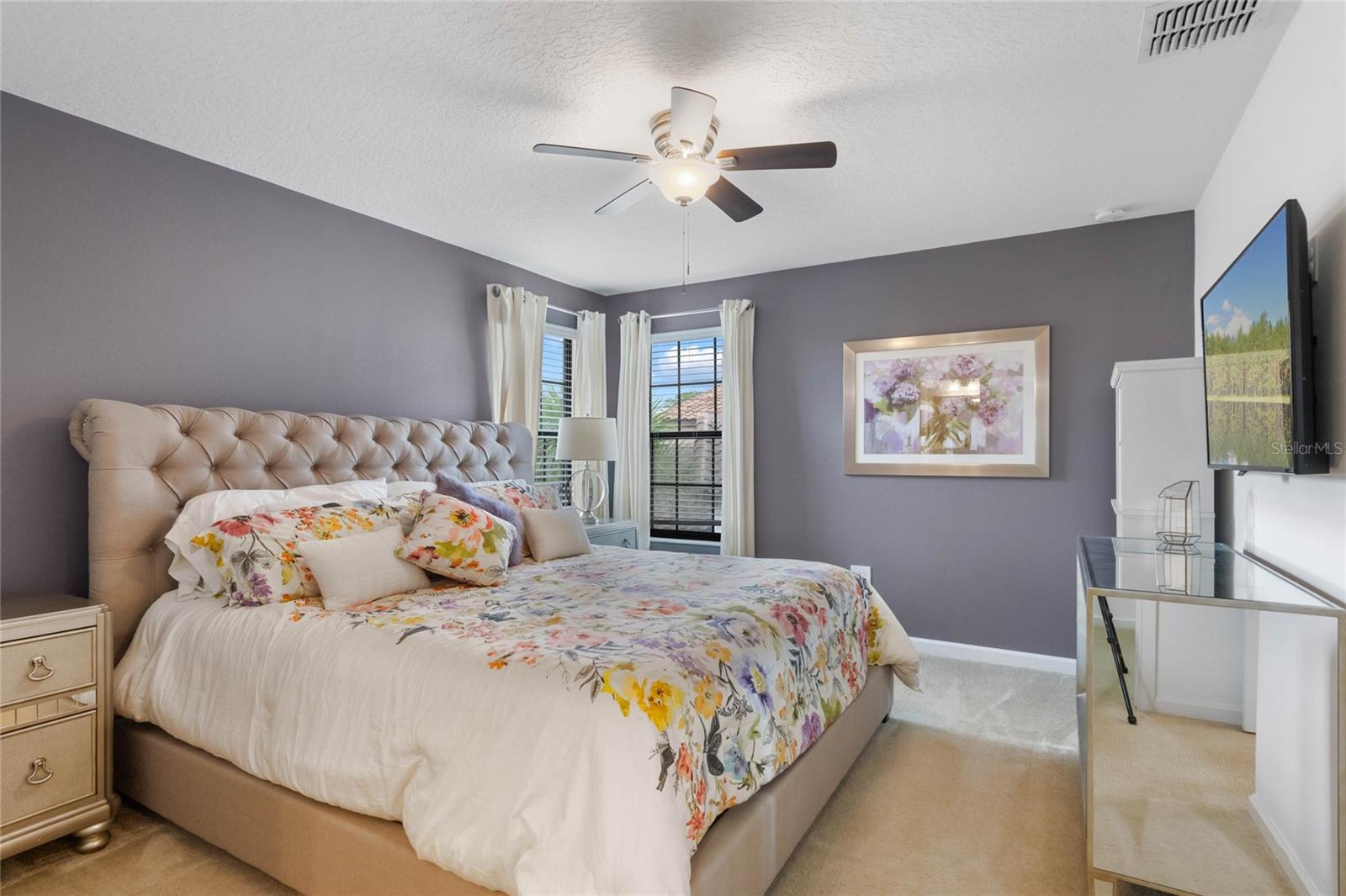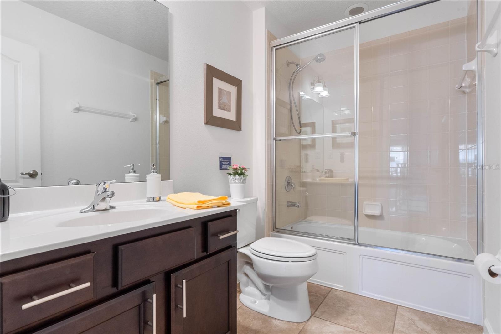Welcome to this stunning 6-bedroom, 4.5-bathroom turnkey vacation home in the exclusive gated resort community of Veranda Palms. As you enter, you'll be greeted by a versatile living and dining combo area, perfect for various uses such as an open office, a private space, or a cozy sitting area to unwind before dinner. The home features a seamless transition to a chef-inspired kitchen, complete with granite countertops, stainless steel appliances, and elegant brown wood cabinets. This kitchen opens up to a spacious family room, where large windows, sliding glass doors, neutral-colored walls, and soaring ceilings create a bright and inviting atmosphere. Step outside to the lanai, where you'll find a sparkling freeform pool and a heated spa. After a swim, relax and have a cocktail while enjoying the tranquil pond view, or watch your favorite shows on the two oversized flatscreen TVs. For those who love outdoor cooking, the included barbecue grill and popular Blackstone griddle make al fresco dining a breeze. When it's time to retreat, head to the luxurious owner's suite, featuring a spa-worthy bathroom with dual vanities, granite countertops, a large soaking tub, and a separate glass-enclosed shower. The first floor also includes a convenient half bath and a laundry room. Upstairs, you'll find a versatile loft area, perfect for a game room or an additional family room, along with five well-appointed bedrooms. Among them is a junior master bedroom with an en suite bathroom, offering added privacy and comfort. This home has been meticulously maintained, featuring recent upgrades such as a brand-new pool heater, a new first-floor AC unit, and a recent soft wash of the tile roof. The community boasts fabulous amenities, including a clubhouse, fitness center, playground, and a huge swimming pool. Located just minutes away from world-class dining, shopping, and attractions—including the crown jewel of Orlando, Disney World—this home is a true gem. Don’t miss your chance to own this exceptional property, perfect as an investment property or a primary residence. Call today to schedule your showing.