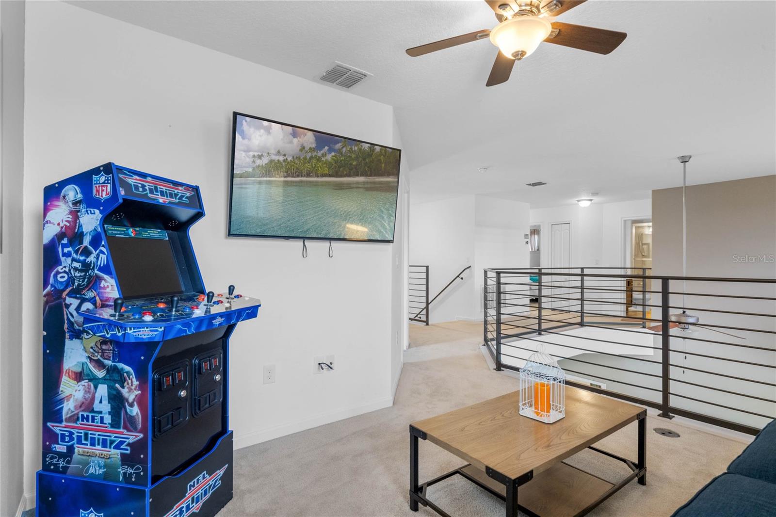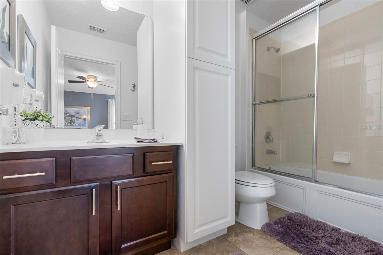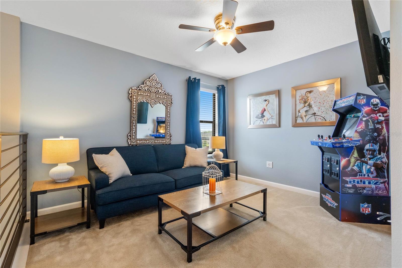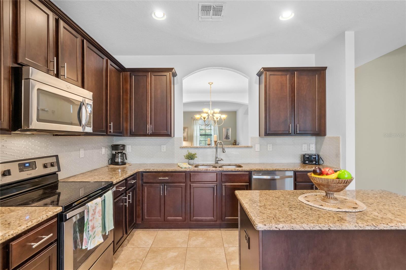 Welcome to this stunning 6-bedroom, 4.5-bathroom turnkey vacation home in the exclusive gated resort community of Veranda Palms. As you enter, you'll be greeted by a versatile living and dining combo area, perfect for various uses such as an open office, a private space, or a cozy sitting area to unwind before dinner. The home features a seamless transition to a chef-inspired kitchen, complete with granite countertops, stainless steel appliances, and elegant brown wood cabinets. This kitchen opens up to a spacious family room, where large windows, sliding glass doors, neutral-colored walls, and soaring ceilings create a bright and inviting atmosphere. Step outside to the lanai, where you'll find a sparkling freeform pool and a heated spa. After a swim, relax and have a cocktail while enjoying the tranquil pond view, or watch your favorite shows on the two oversized flatscreen TVs. For those who love outdoor cooking, the included barbecue grill and popular Blackstone griddle make al fresco dining a breeze. When it's time to retreat, head to the luxurious owner's suite, featuring a spa-worthy bathroom with dual vanities, granite countertops, a large soaking tub, and a separate glass-enclosed shower. The first floor also includes a convenient half bath and a laundry room. Upstairs, you'll find a versatile loft area, perfect for a game room or an additional family room, along with five well-appointed bedrooms. Among them is a junior master bedroom with an en suite bathroom, offering added privacy and comfort. This home has been meticulously maintained, featuring recent upgrades such as a brand-new pool heater, a new first-floor AC unit, and a recent soft wash of the tile roof. The community boasts fabulous amenities, including a clubhouse, fitness center, playground, and a huge swimming pool. Located just minutes away from world-class dining, shopping, and attractions—including the crown jewel of Orlando, Disney World—this home is a true gem. Don’t miss your chance to own this exceptional property, perfect as an investment property or a primary residence. Call today to schedule your showing.