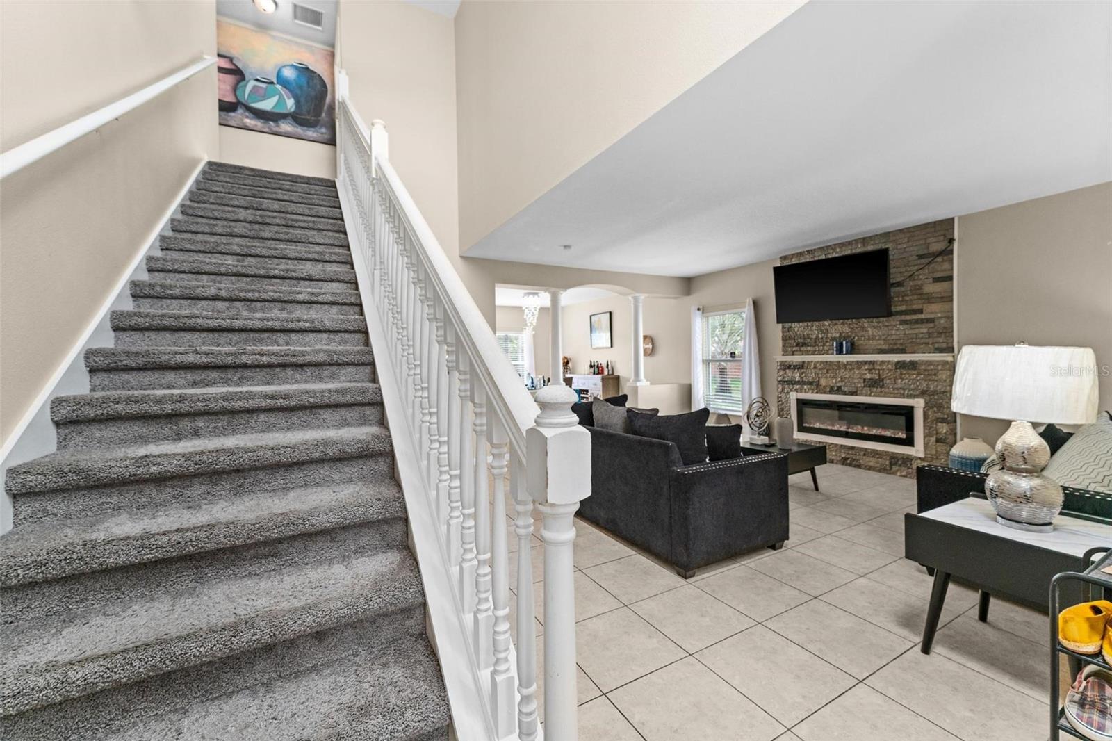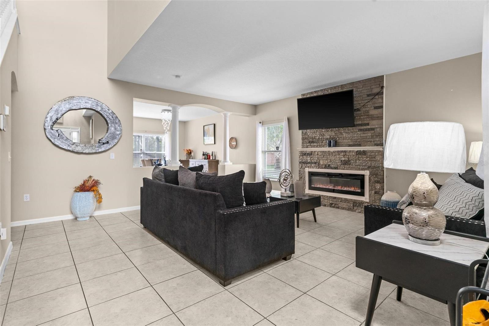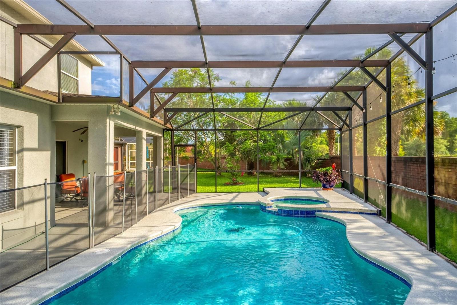 Welcome to your dream home nestled on a peaceful cul-de-sac with no HOA fees, in close proximity to all the attractions and excitement in Orlando. This stunning 4-bedroom, 2.5-bath residence boasts luxury and comfort at every turn. Step inside to discover a spacious open floor plan illuminated by natural light, highlighted by a cozy fireplace that sets the ambiance for relaxing evenings. The gourmet kitchen features sleek granite countertops, and ample cabinet and counter space, perfect for the culinary enthusiast. Entertain effortlessly in your private backyard oasis, complete with a sparkling pool and rejuvenating spa, ideal for year-round enjoyment and gatherings with loved ones. Imagine lounging under the Florida sun or hosting summer barbecues in this serene outdoor haven. Retreat upstairs to find generously sized bedrooms including a master suite with a walk-in closet and a luxurious ensuite bath featuring dual vanities, two closets, a soaking tub, and a separate shower. Conveniently located near major highways, shopping, and dining. This home offers the perfect blend of tranquility and accessibility. Whether you're seeking a peaceful retreat or a vibrant lifestyle close to the heart of Orlando, this property promises to exceed your expectations. Don't miss your chance to own this exceptional residence. Schedule your private tour today and make this captivating pool home yours! Washer and Dryer and potted plants do not convey. Home is sold with all furnishings except the formal living, formal dining, and patio furniture.