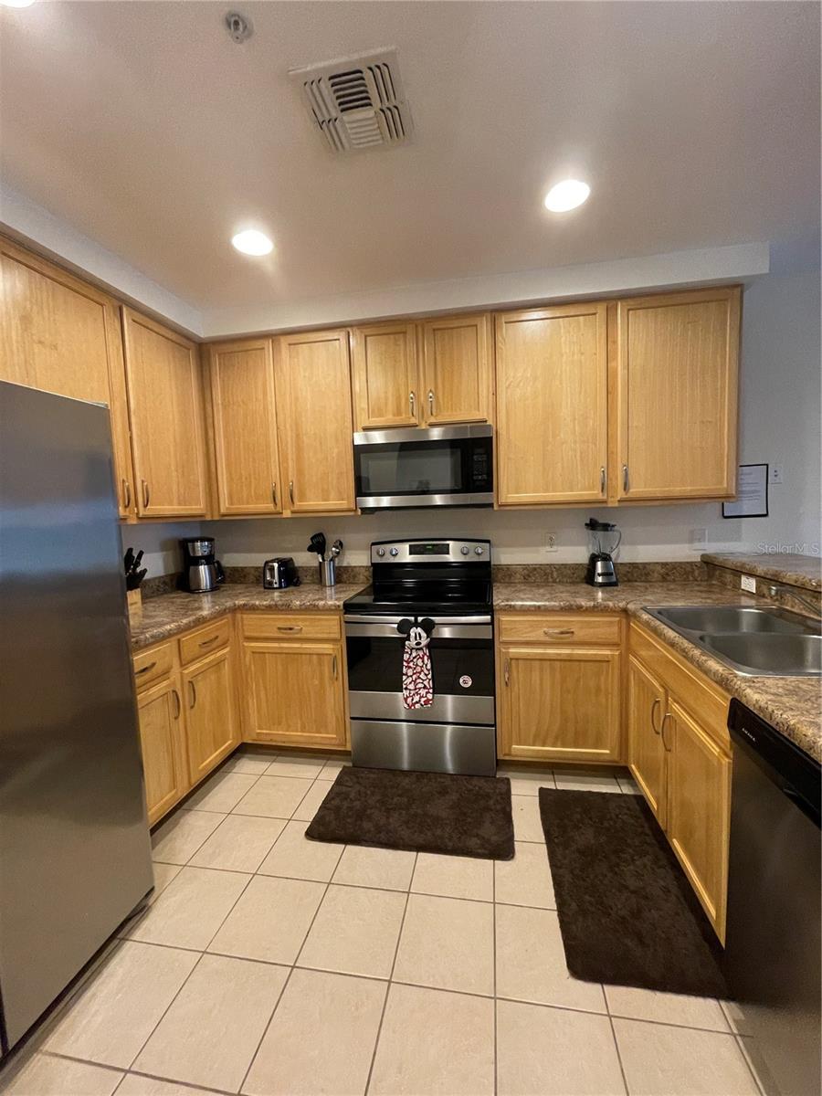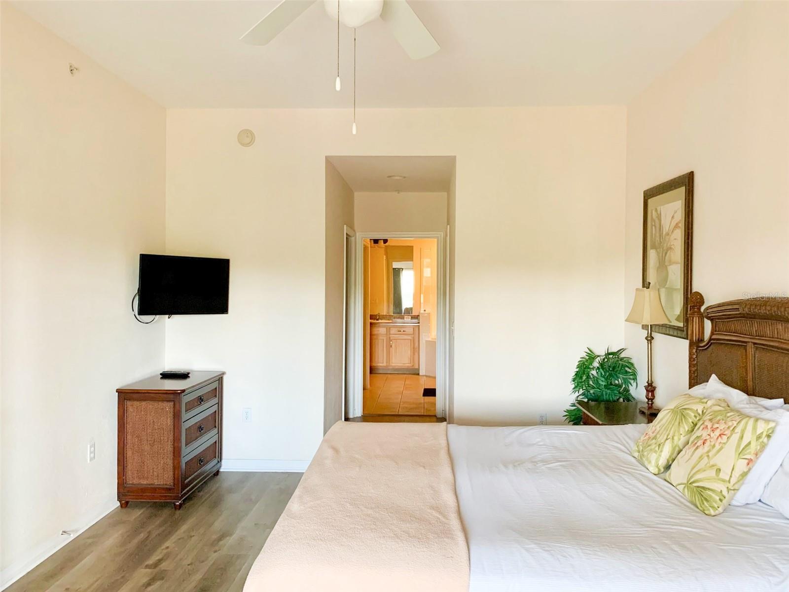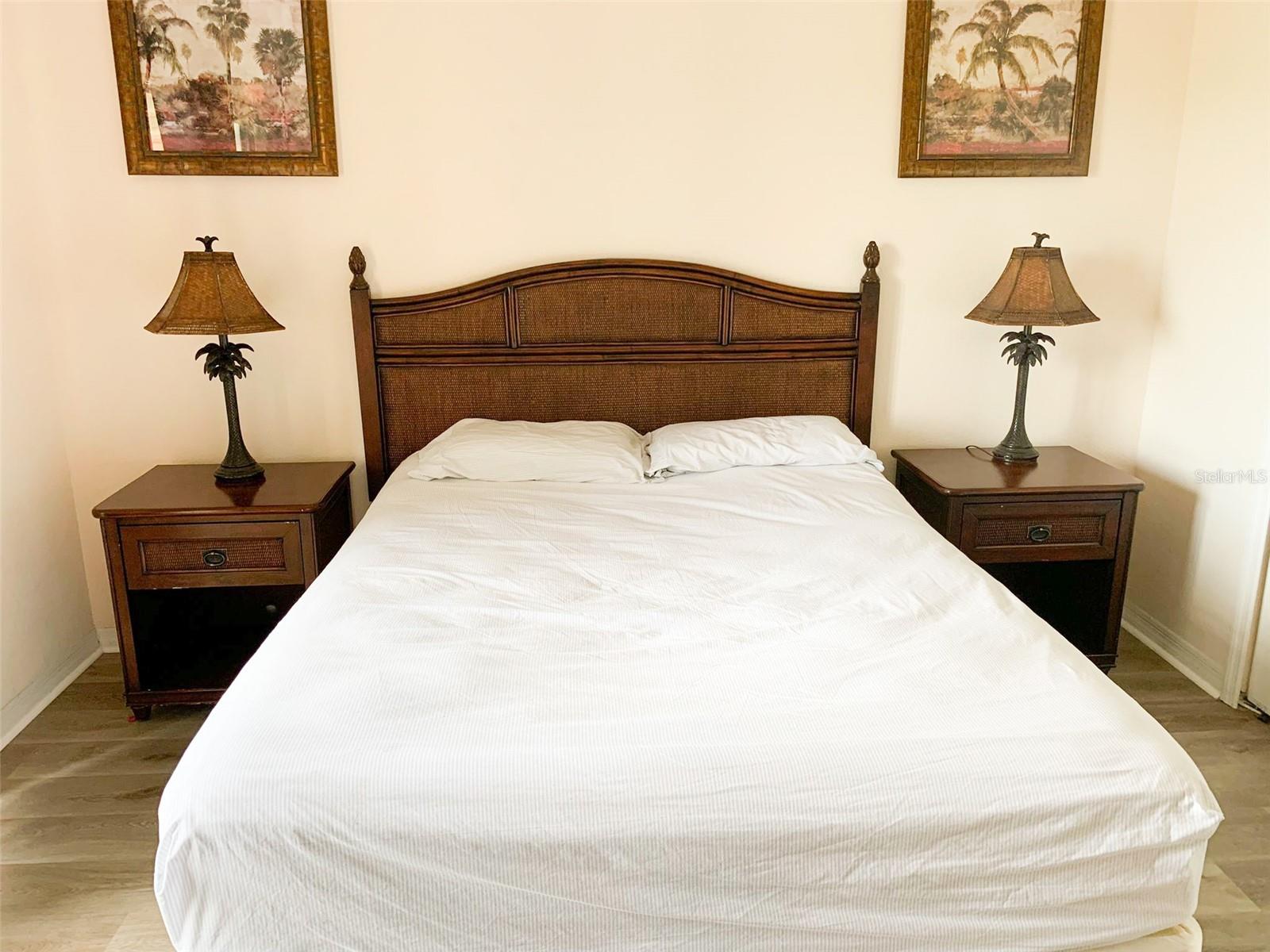 Private and peaceful view from the screened patio on this beautiful condo. The floor plan boasts a larger than expected living and dining room combo with vinyl floors throughout the whole condo. The kitchen is well laid out and has stainless steel appliances with the range, DW and microwave. Primary bedroom has an ensuite bath and a shower that have been completely remodeled. Bedrooms 2 and 3 are spacious and share a second bathroom which is also accessible from the hallway. This condo is sold furnished with appealing Caribbean design. The Caribe Cove resort offers many amenities including a community pool, hot tub, fitness center, arcade room, clubhouse and more. Area attractions, shopping, dining, golf and supermarkets are nearby. Great opportunity for an investor. **Information is deemed correct. It is the buyers responsibility to confirm information including room measurements, pet restrictions and lease restrictions