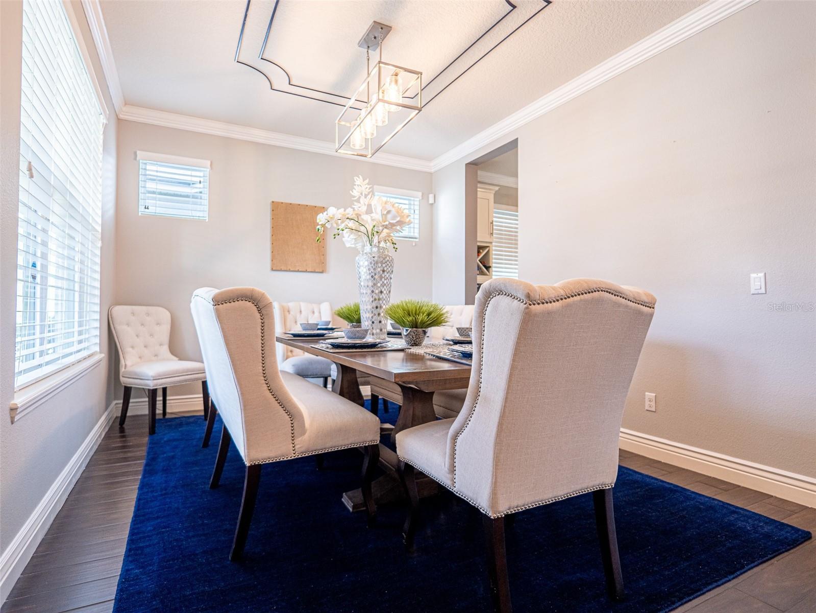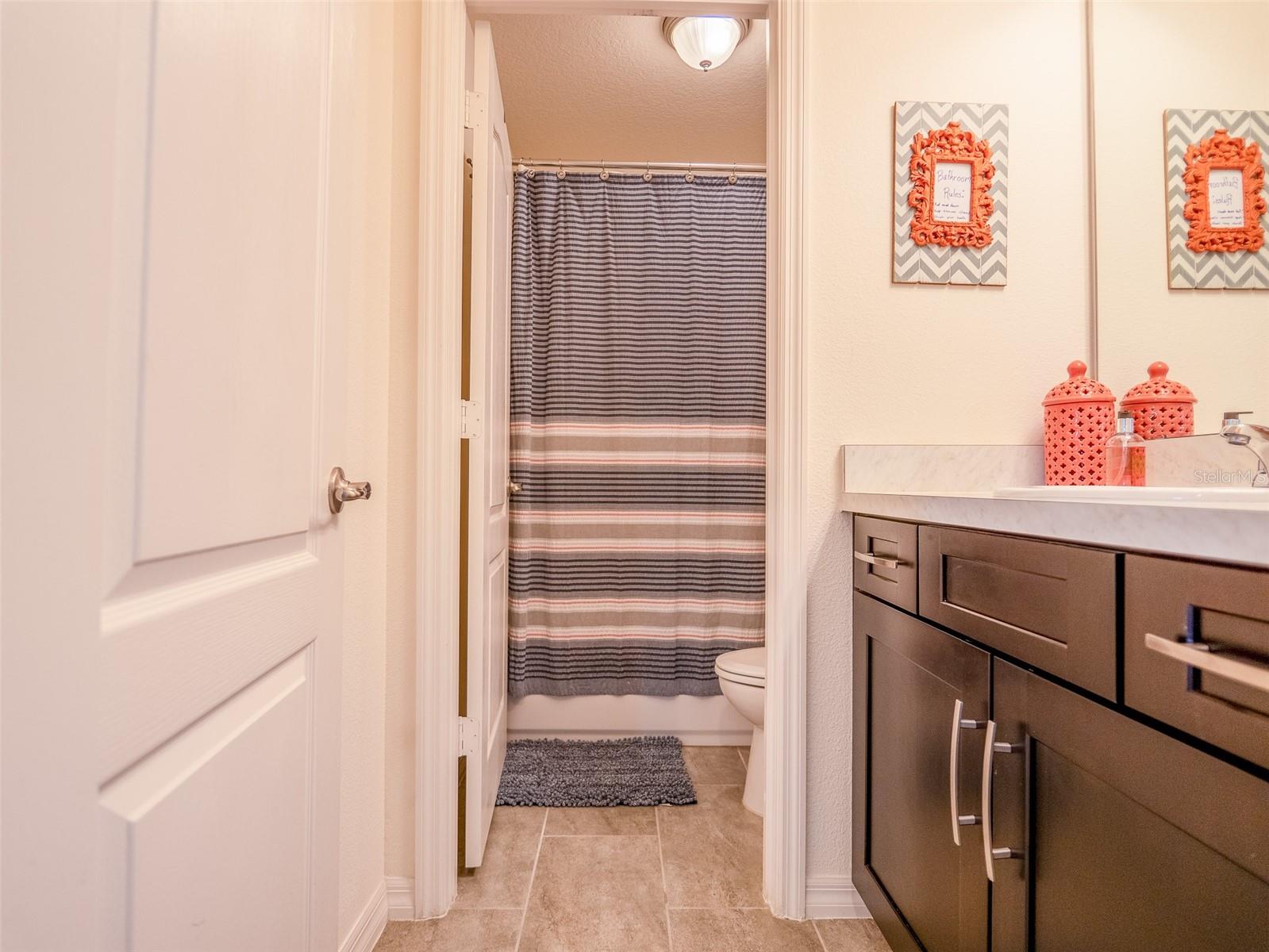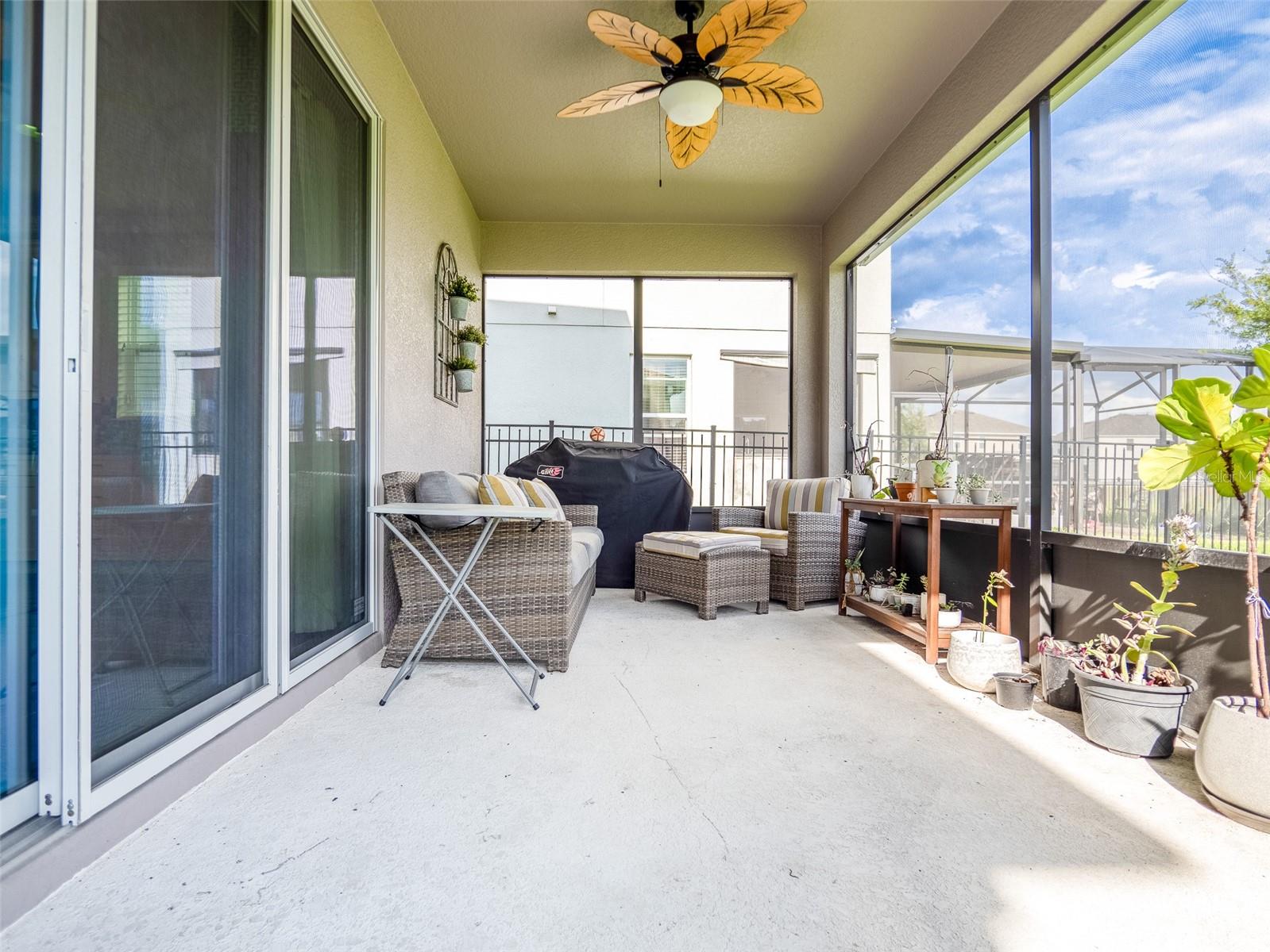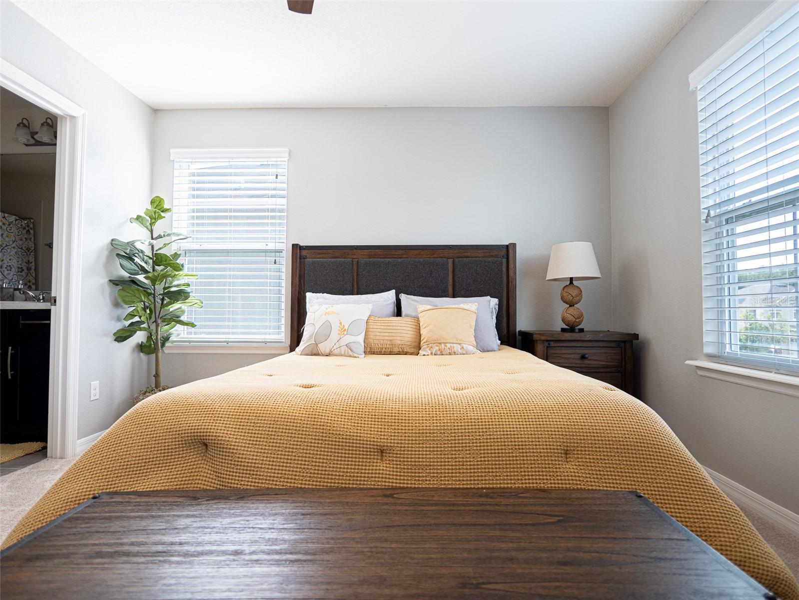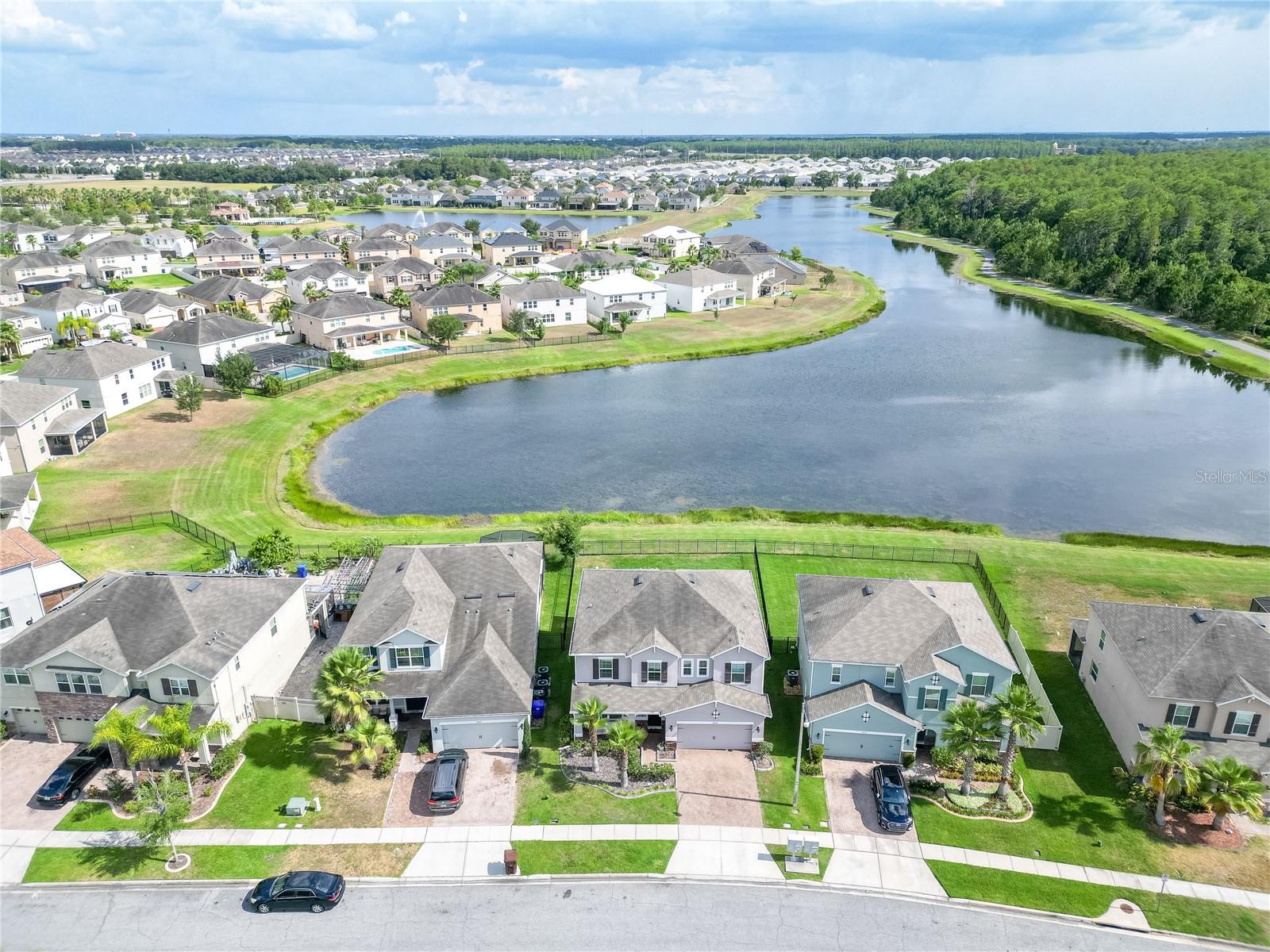 Stunning 4-Bedroom, 3.5-Bathroom Home in the Preserve at the Tapestry This exquisite two-story home, located in the desirable Preserve at the Tapestry community, looks like it came straight from a home magazine! The property boasts an open floor plan with an upgraded kitchen featuring a large quartz island, stainless steel appliances, stylish light fixtures, and pristine shaker-style cabinetry. The first floor is adorned with ceramic tiles that mimic the look of wood, complementing the tasteful color scheme and offering stunning lake views. High-end upgrades are evident in the dining and living room walls. The spacious master bedroom includes a custom vaulted ceiling, a large walk-in closet, and an ensuite bathroom with dual vanities and a soaking tub. The home also features a large screened enclosure, perfect for a summer kitchen installation. All window curtains are included. The community offers residents amenities such as walking trails and a large swimming pool. Enjoy the serene lake and lush landscaping within the neighborhood. Conveniently located near major highways, shopping, dining, and just 15 minutes from the world-renowned Disney World Resort.