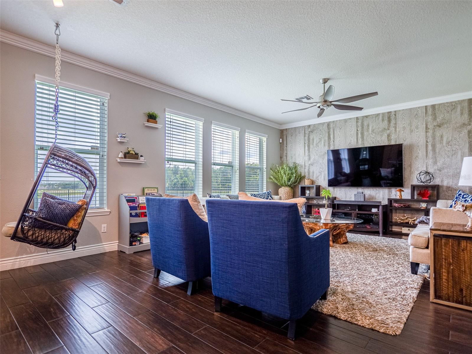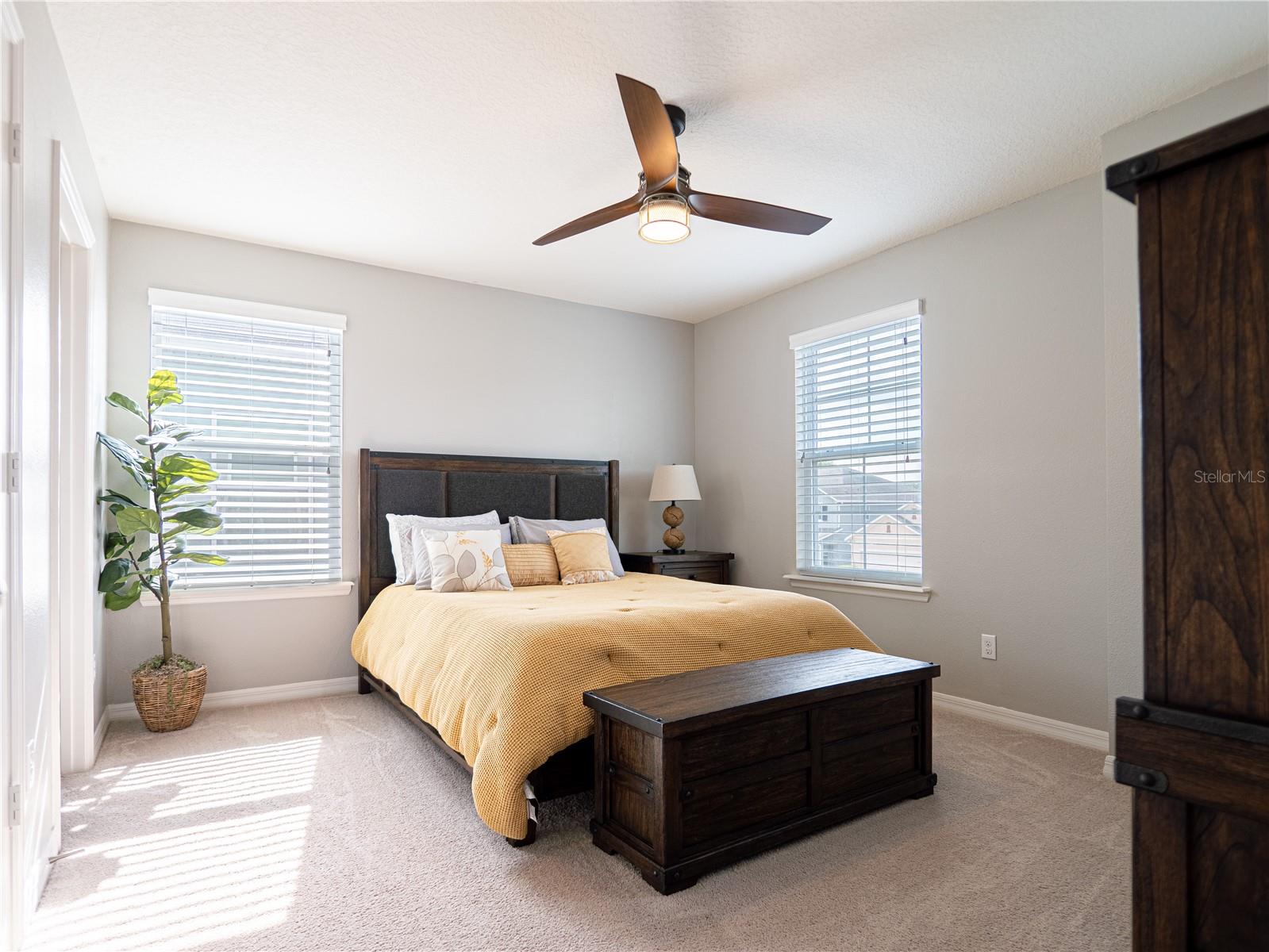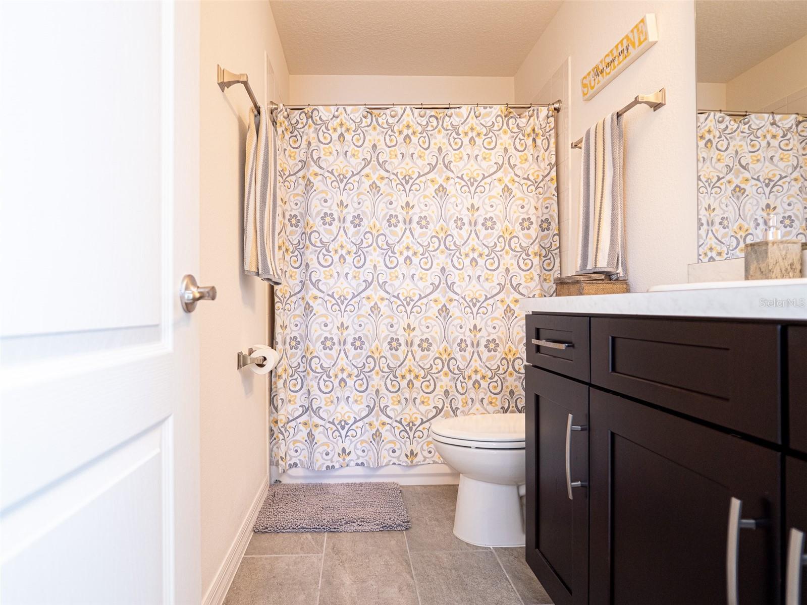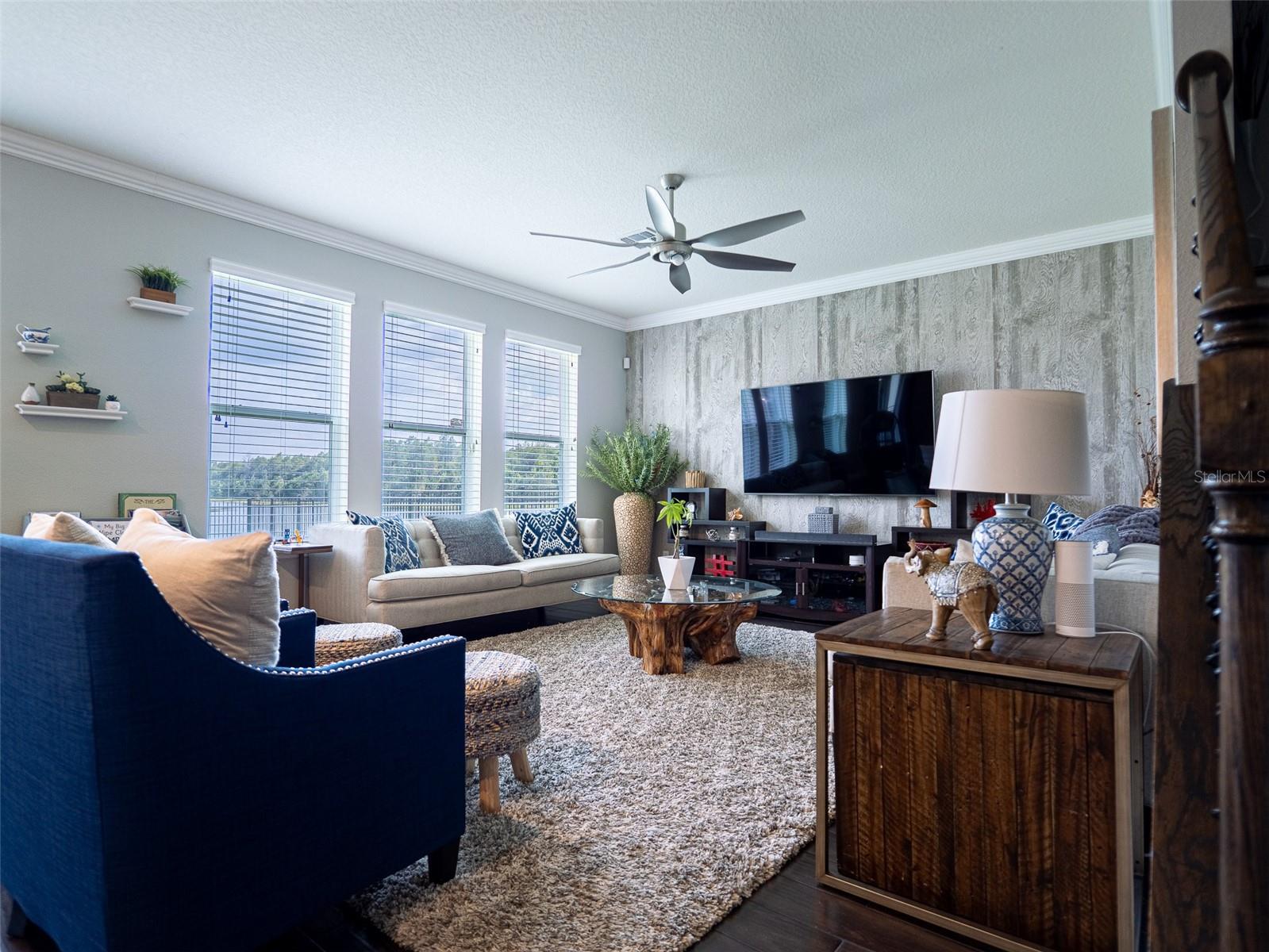 Stunning 4-Bedroom, 3.5-Bathroom Home in the Preserve at the Tapestry This exquisite two-story home, located in the desirable Preserve at the Tapestry community, looks like it came straight from a home magazine! The property boasts an open floor plan with an upgraded kitchen featuring a large quartz island, stainless steel appliances, stylish light fixtures, and pristine shaker-style cabinetry. The first floor is adorned with ceramic tiles that mimic the look of wood, complementing the tasteful color scheme and offering stunning lake views. High-end upgrades are evident in the dining and living room walls. The spacious master bedroom includes a custom vaulted ceiling, a large walk-in closet, and an ensuite bathroom with dual vanities and a soaking tub. The home also features a large screened enclosure, perfect for a summer kitchen installation. All window curtains are included. The community offers residents amenities such as walking trails and a large swimming pool. Enjoy the serene lake and lush landscaping within the neighborhood. Conveniently located near major highways, shopping, dining, and just 15 minutes from the world-renowned Disney World Resort.